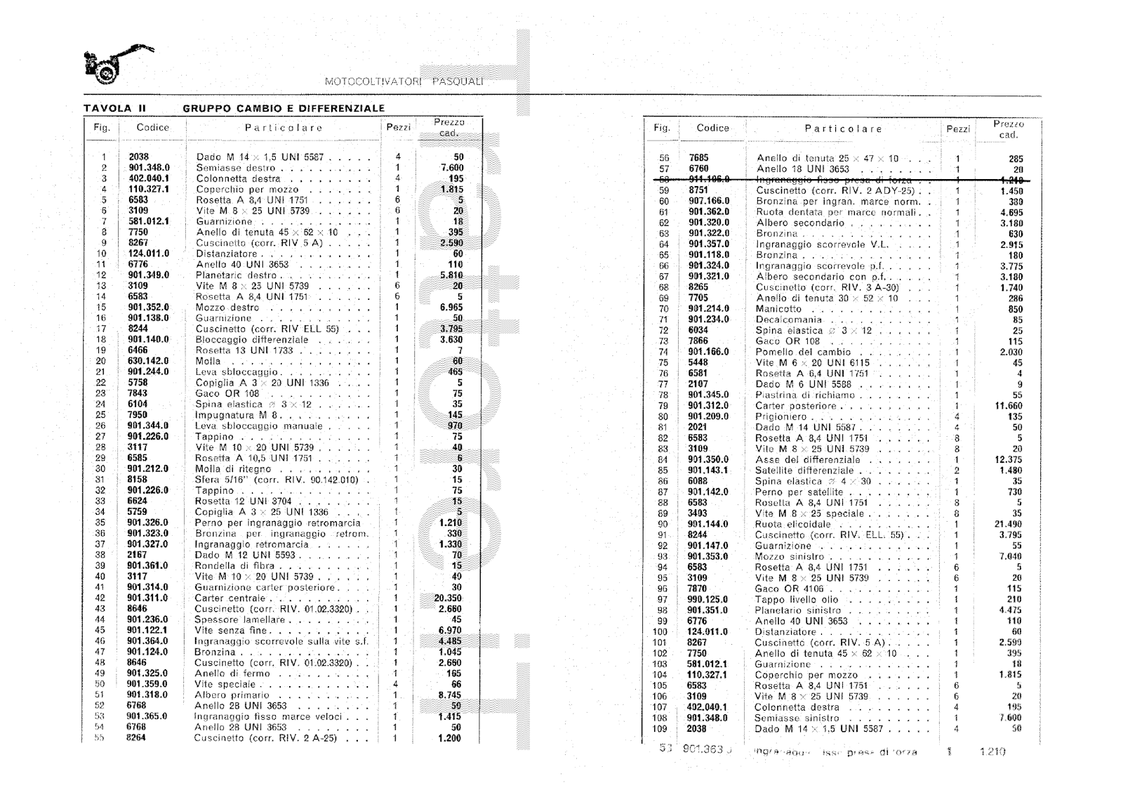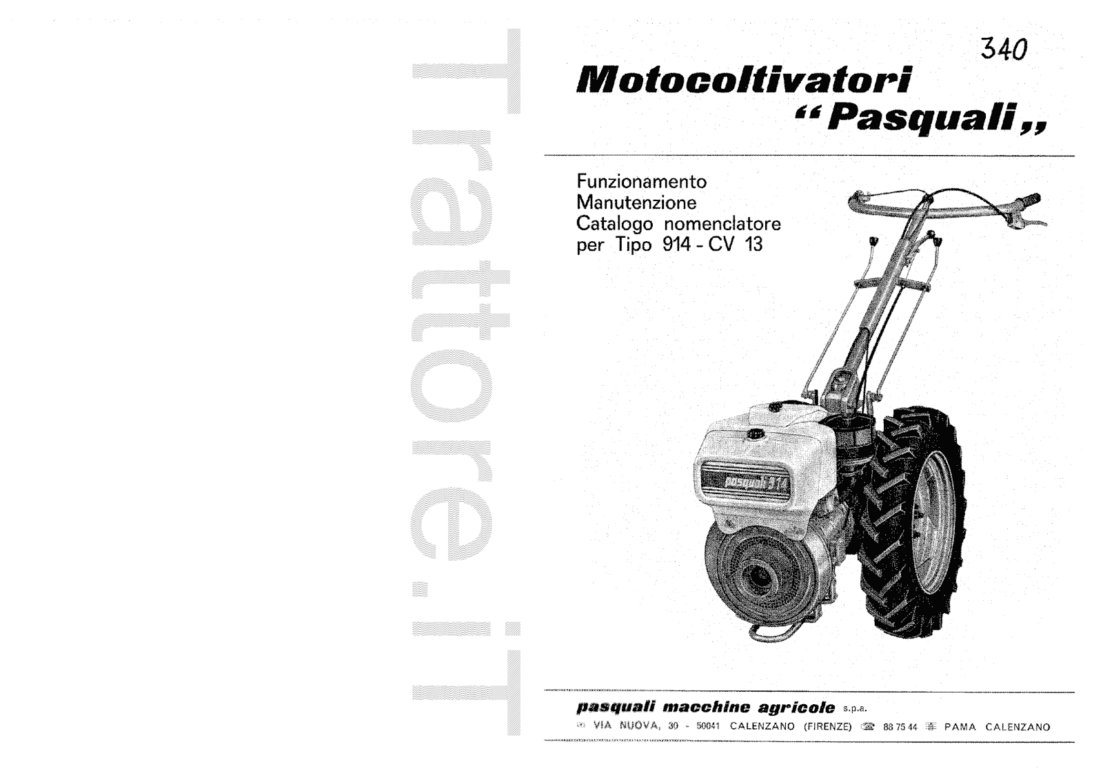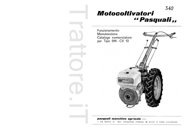 Motocoltivatore Pasquali 914 CV 13 Manuale Manutenzione e Ricambi (1973)