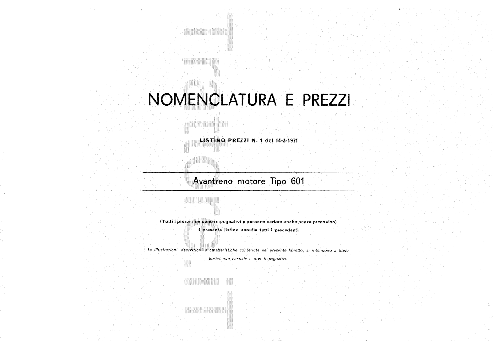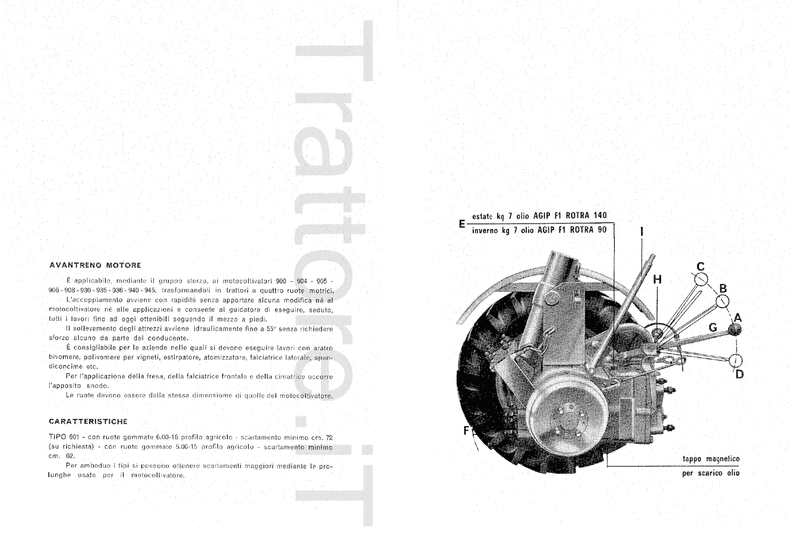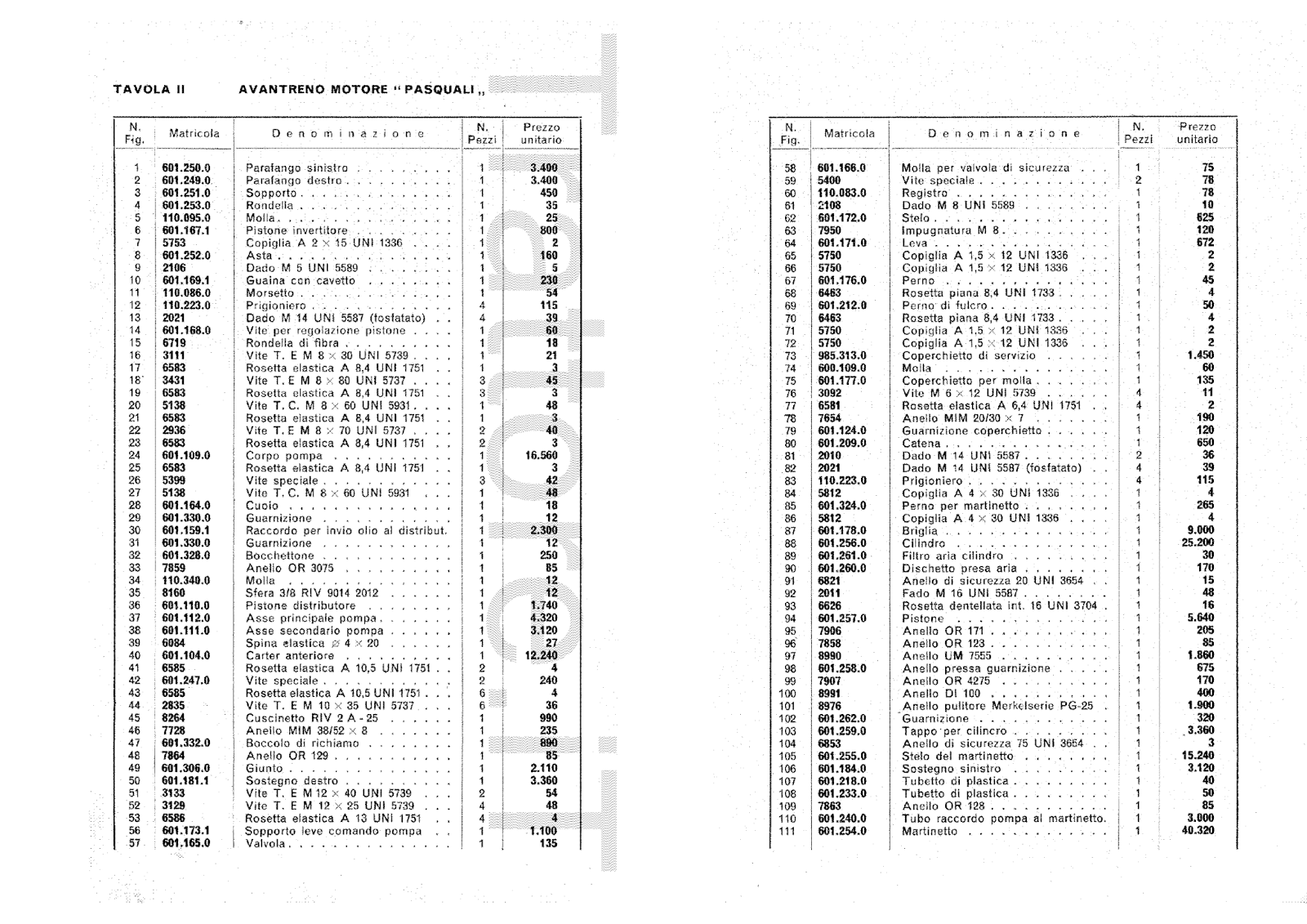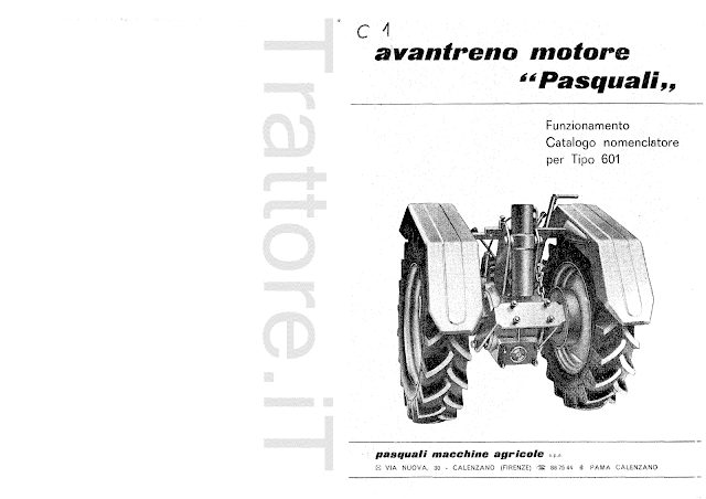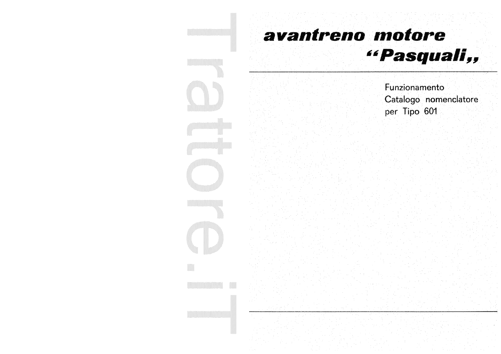 Avantreno Motore Pasquali 601 manuale funzionamento e ricambi 1971
