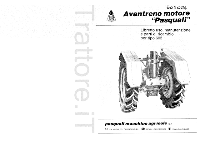 Avantreno Motore Pasquali 603 manuale funzionamento e ricambi 1982