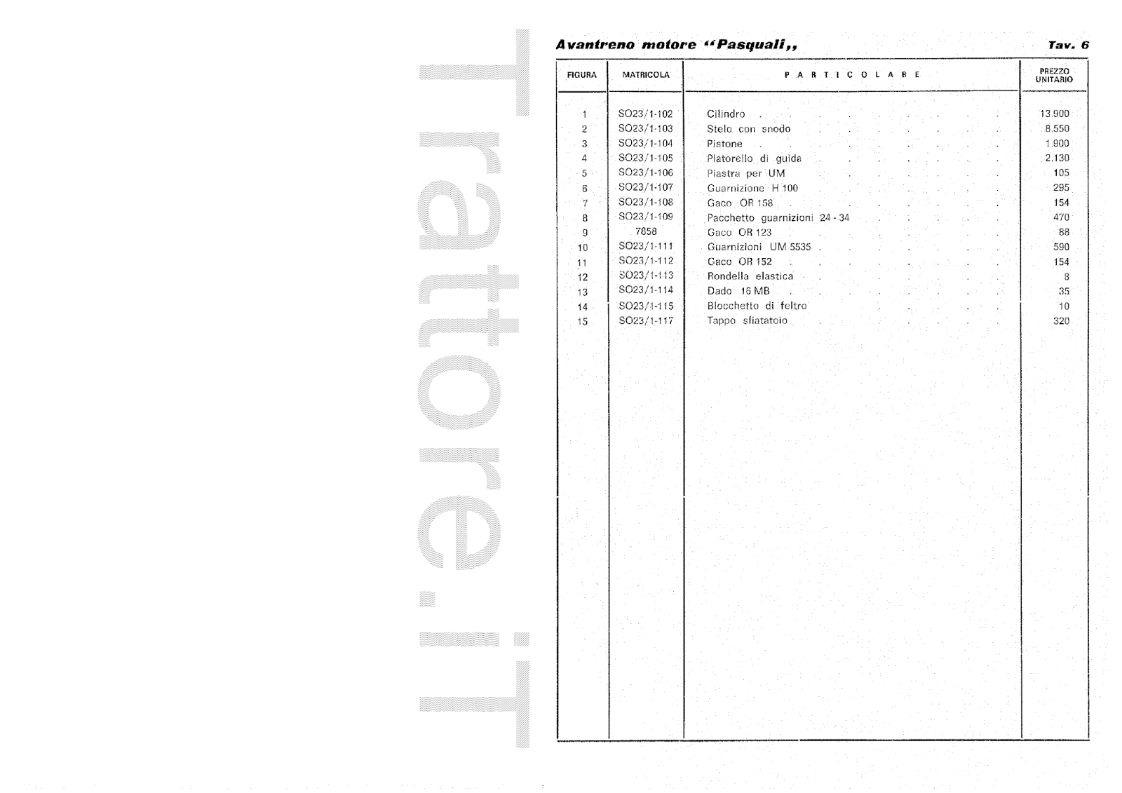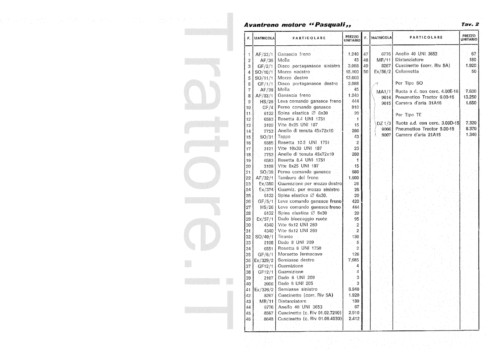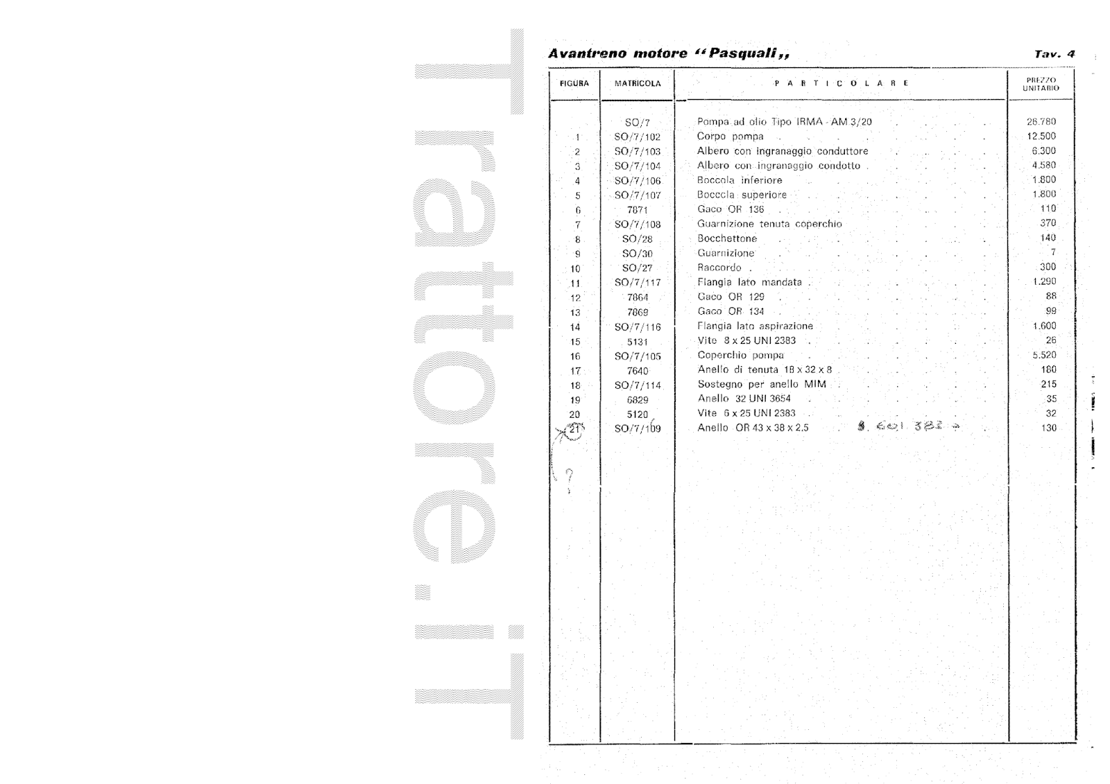 Avantreno Motore Pasquali SO-TE manuale ricambi 1966