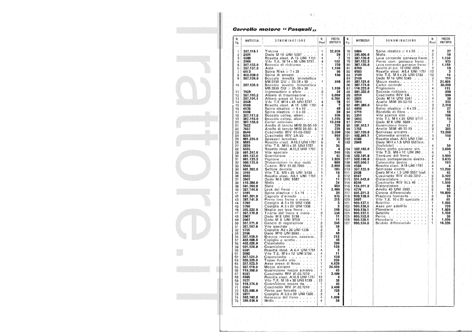 Carrello motore Pasquali 387 manuale ricambi 1971