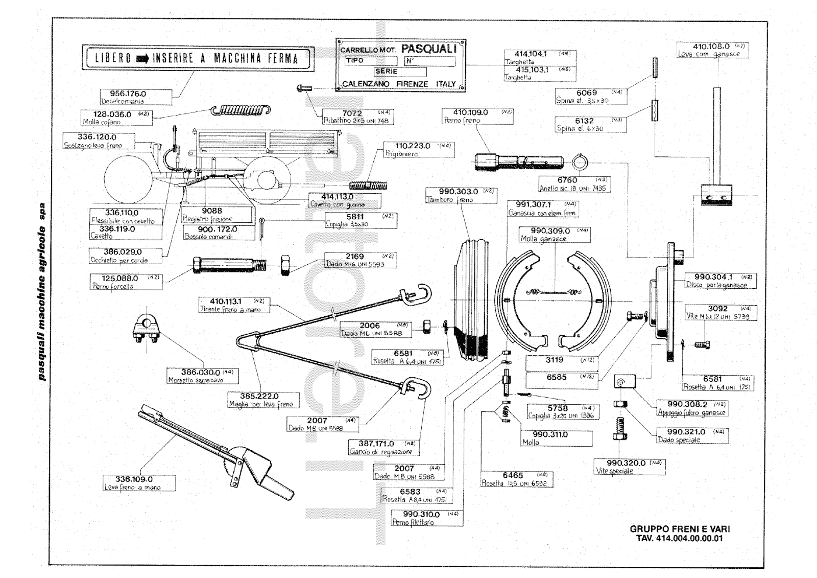 Carrello Pasquali 414.15 manuale manutenzione e ricambi