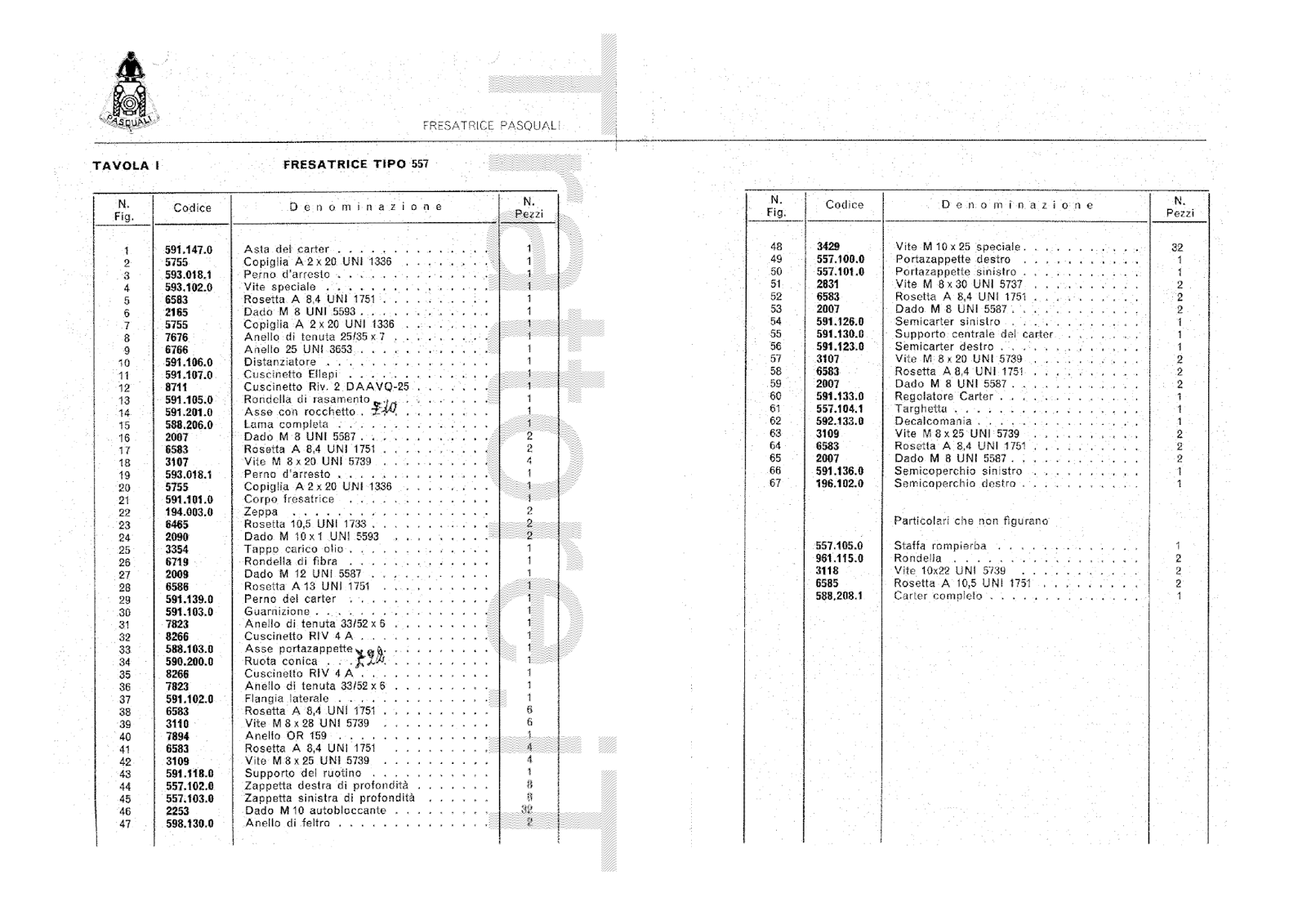 Fresatrice Pasquali 557.20 Manuale Manutenzione e ricambi