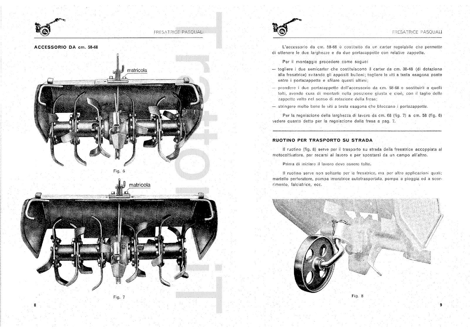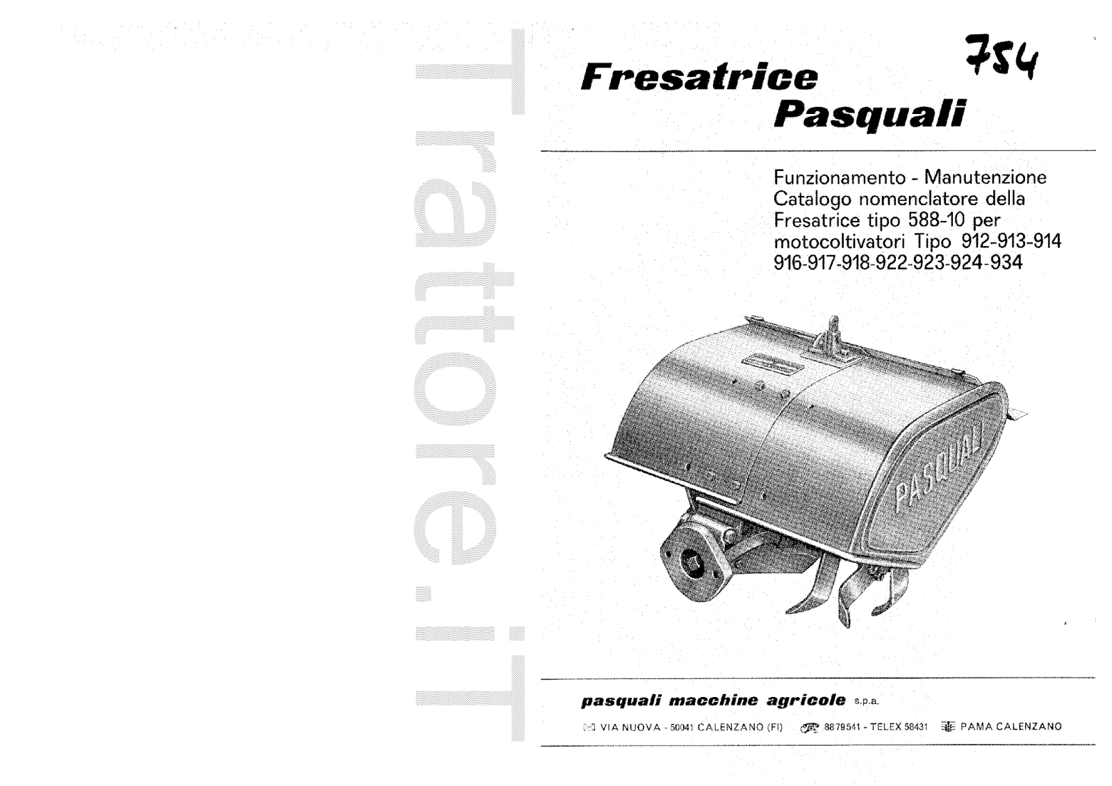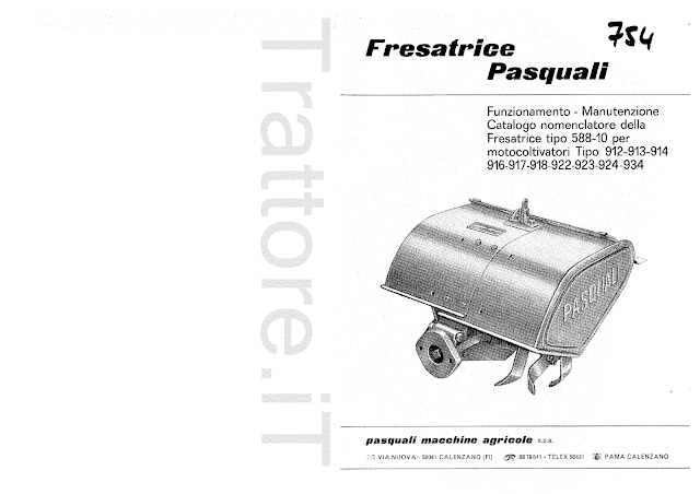 Fresatrice Pasquali 588.10 per motocoltivatore 918 Manuale Manutenzione e ricambi 1977
