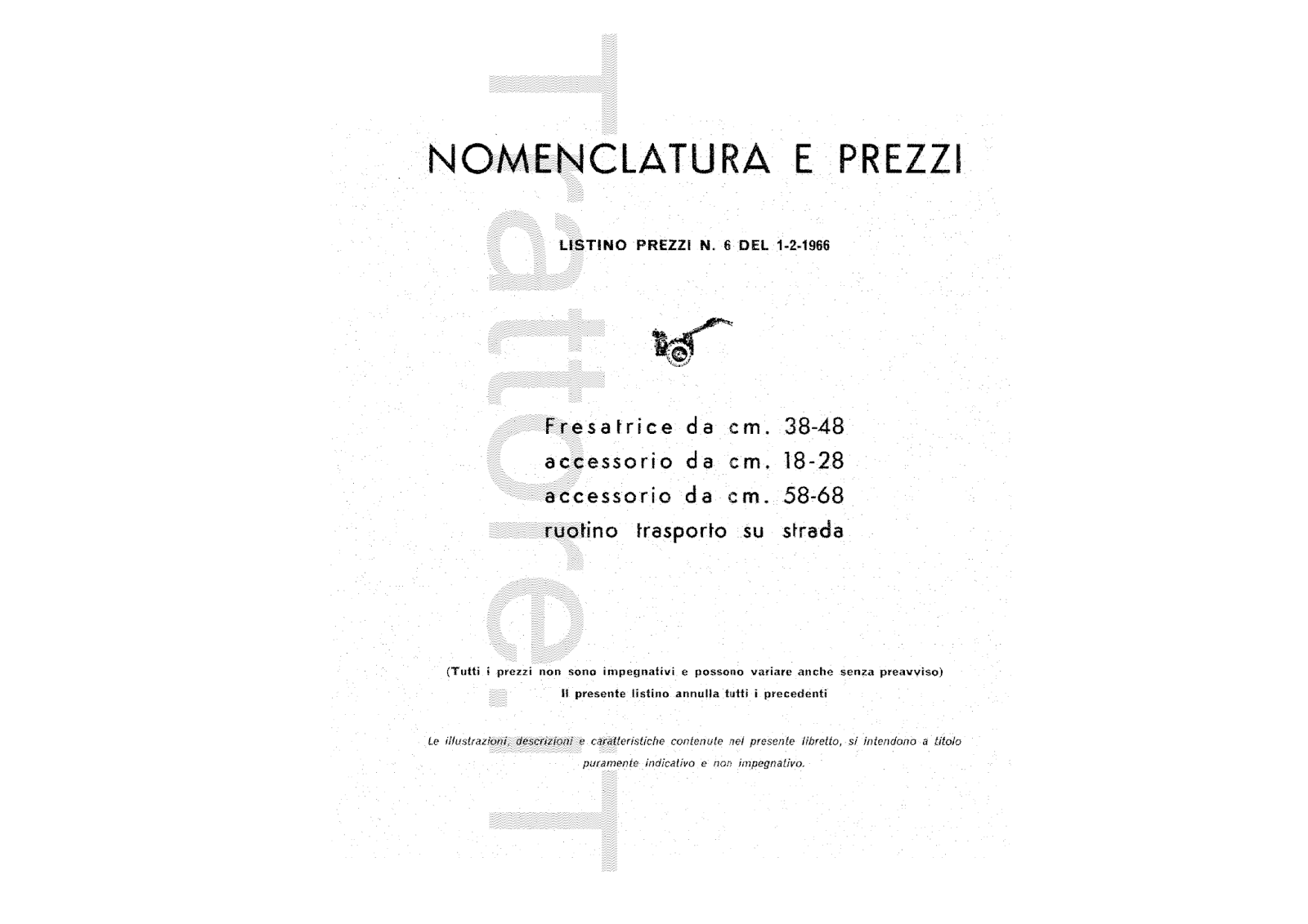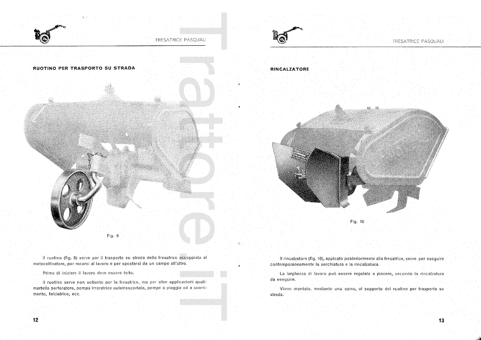 Fresatrice Pasquali 591 per motocoltivatore 901 Manuale Manutenzione e ricambi 1966