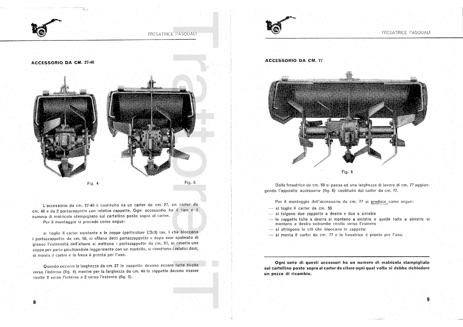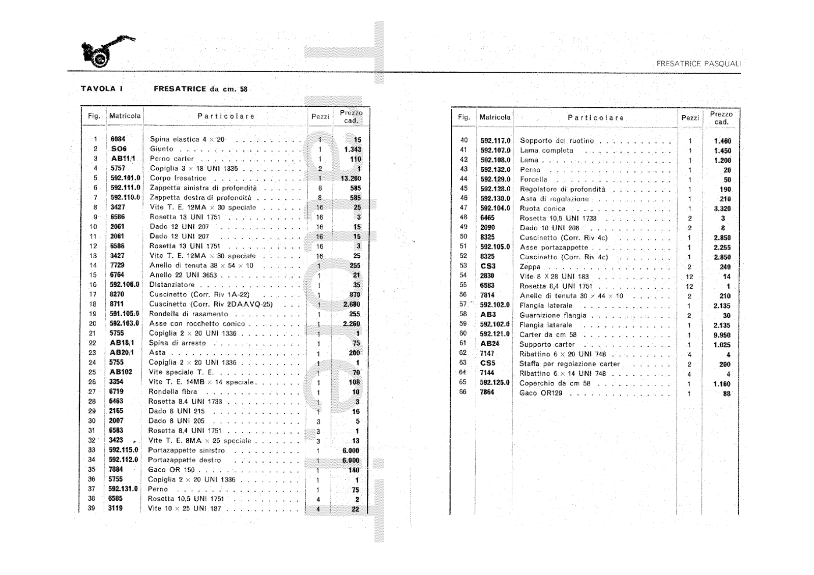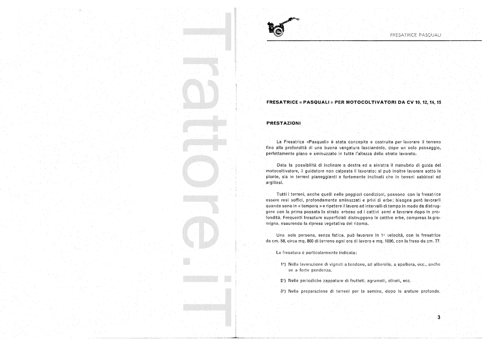 Fresatrice per motocoltivatore Pasquali da 10 - 12 - 14 - 15 CV Manuale Manutenzione e ricambi 1965