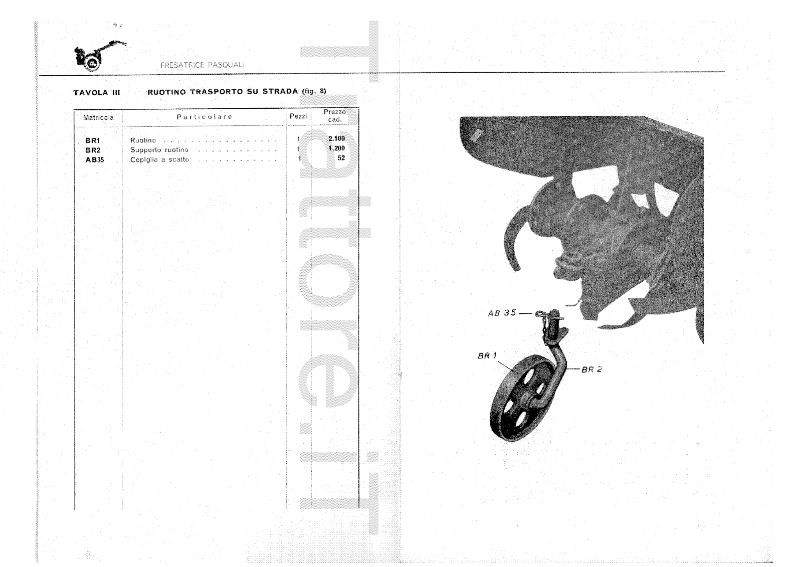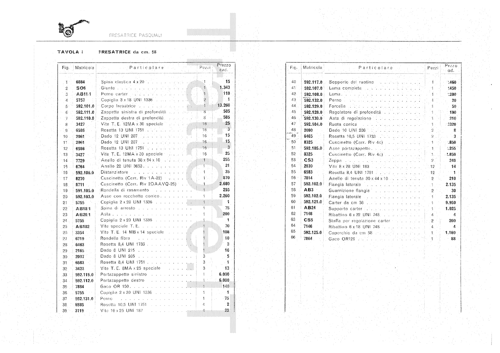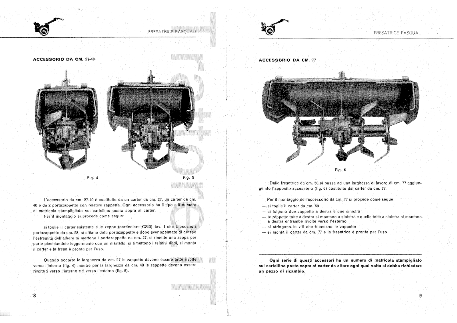 Fresatrice per motocoltivatore Pasquali 10-12-14-15 CV Manuale Manutenzione e ricambi 1966