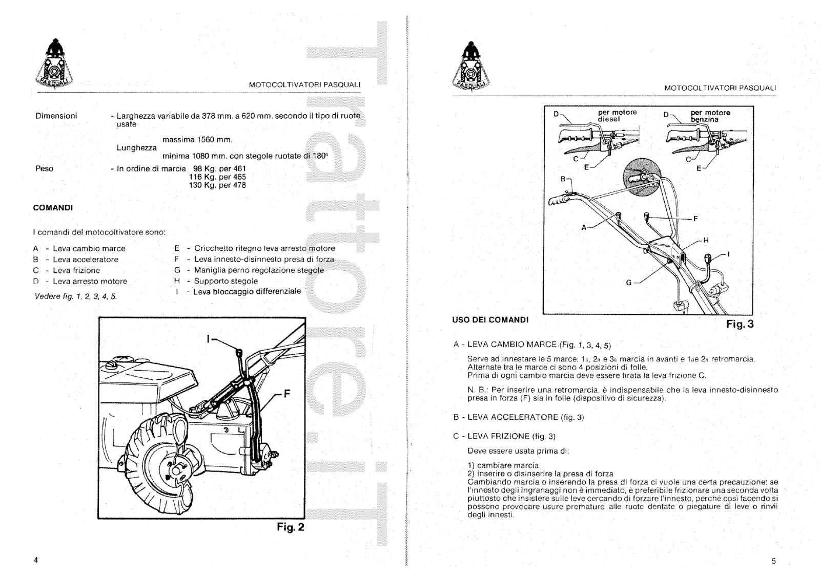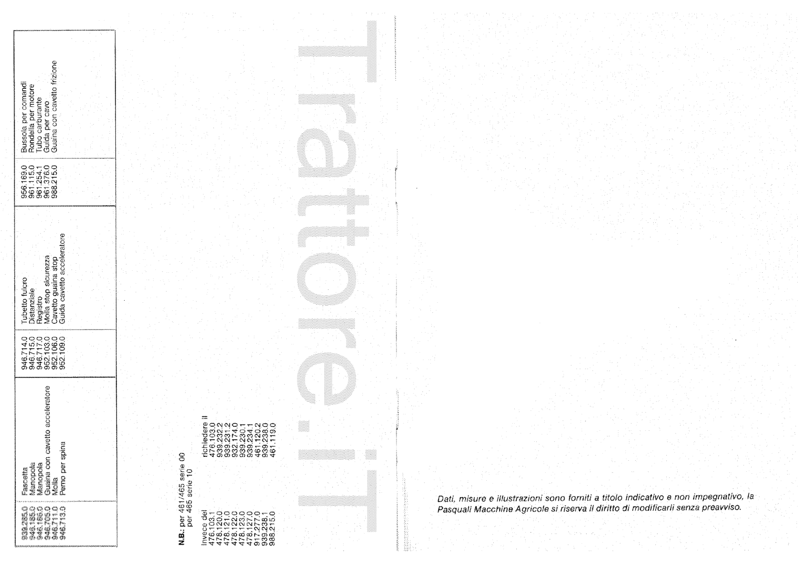 Motocoltivatore Pasquali 465 manuale manutenzione e ricambi
