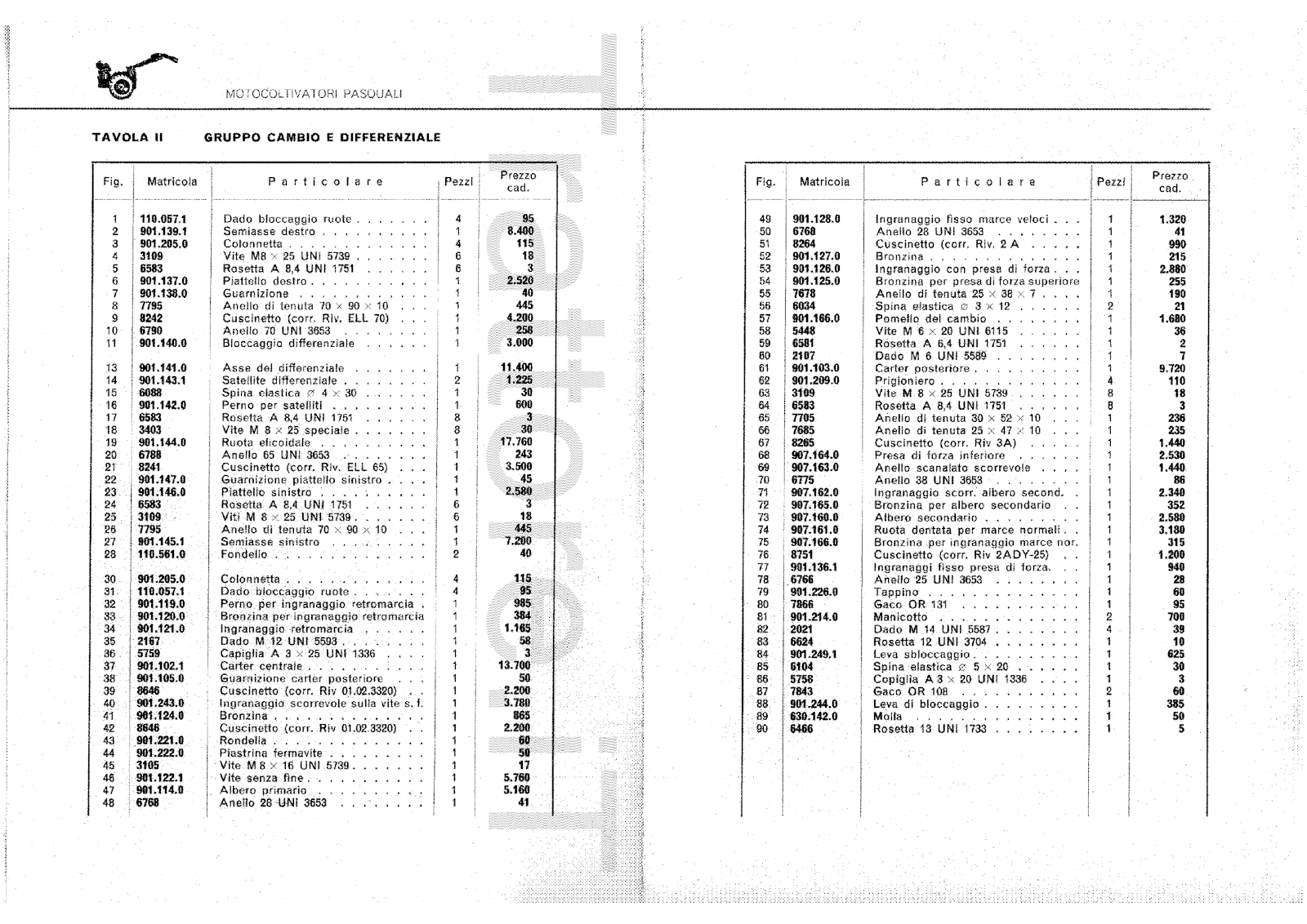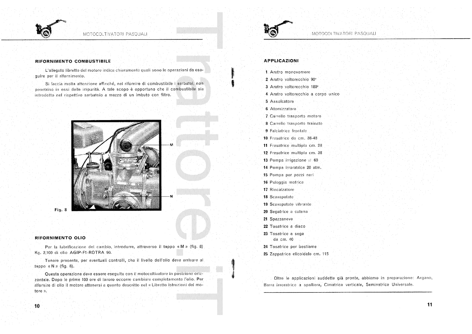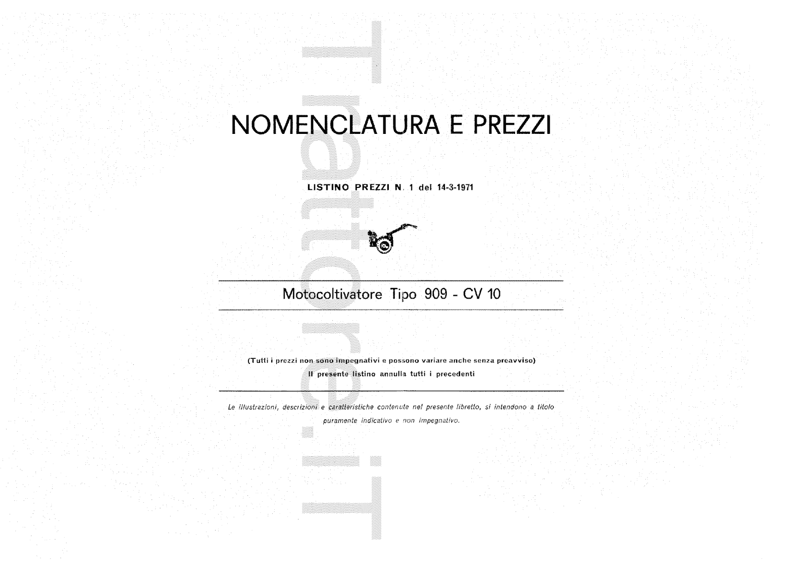 Motocoltivatore Pasquali 909 CV 10 manuale Manutenzione e Ricambi 1971