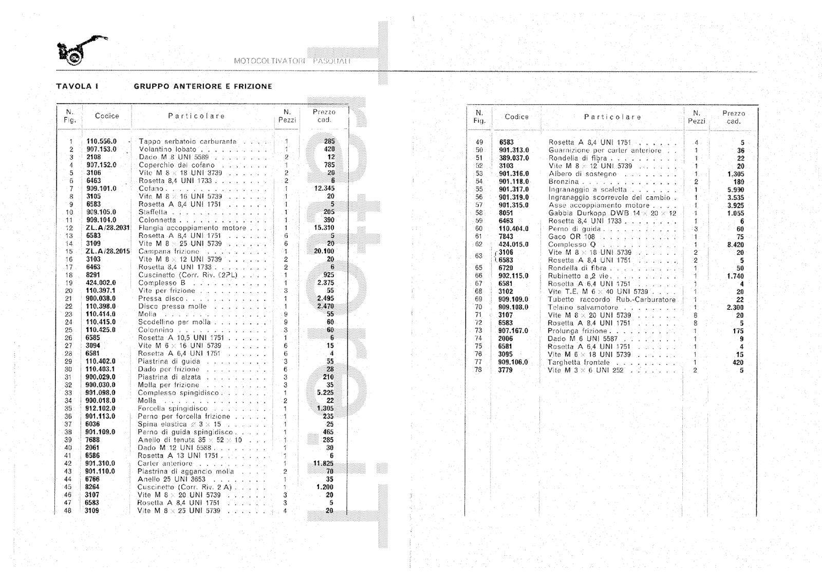 Motocoltivatore Pasquali 912 CV 10 Manuale manutenzione e ricambi 1973