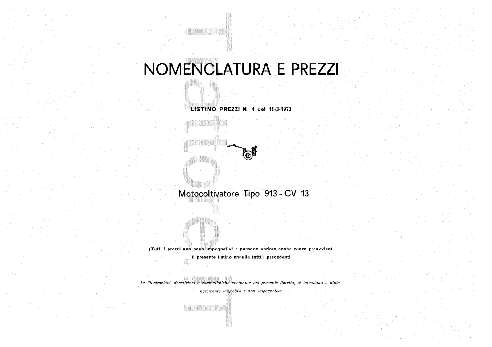 Motocoltivatore Pasquali 913 CV 13 Manuale manutenzione e ricambi 1973