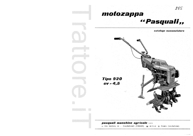Motozappa Pasquali 920 CV 4.5 manuale caratteristiche e ricambi