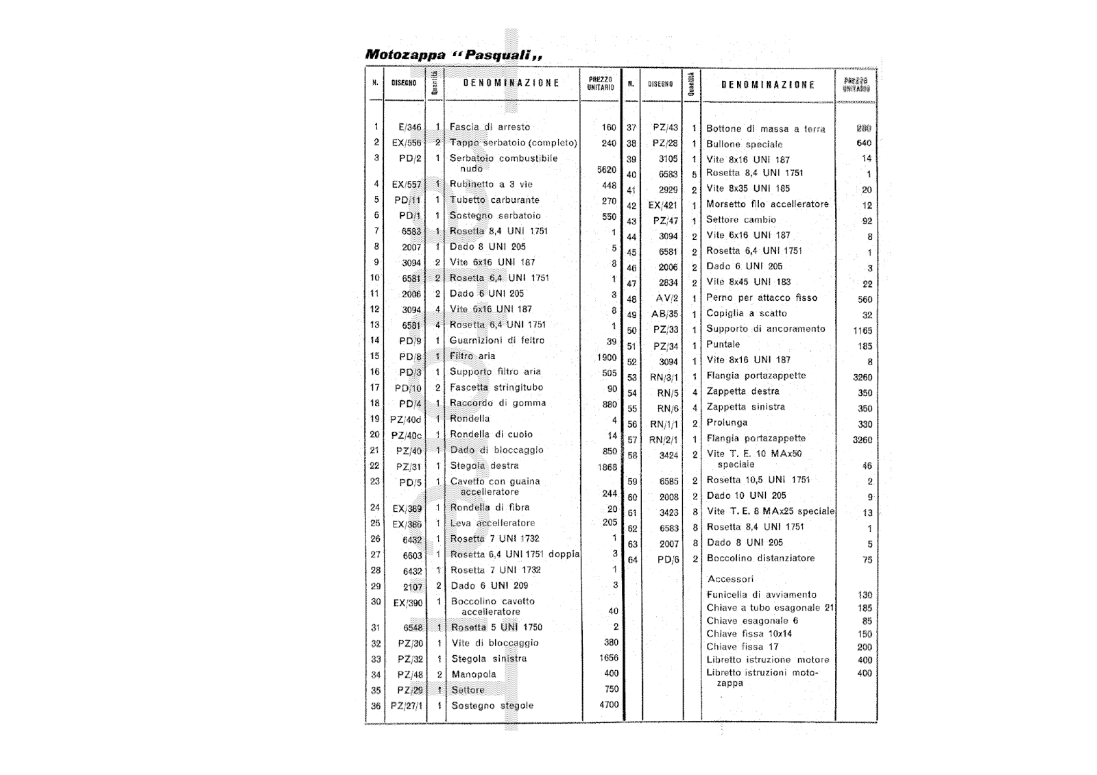 Motozappa Pasquali PD CV 4 manuale caratteristiche e ricambi