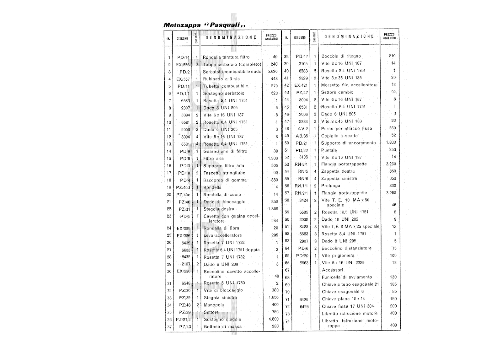 Motozappa Pasquali PD CV 4.5 manuale caratteristiche e ricambi
