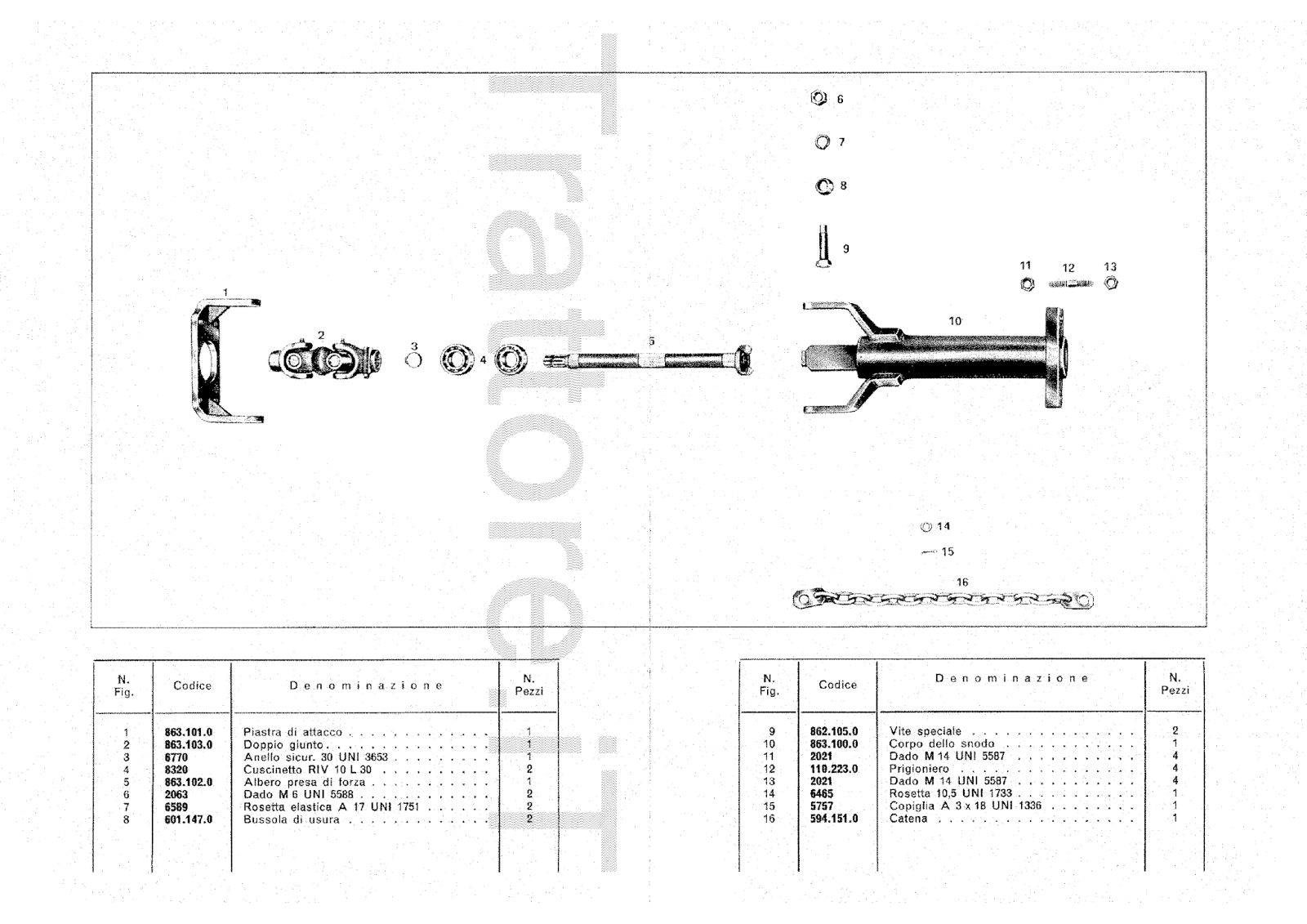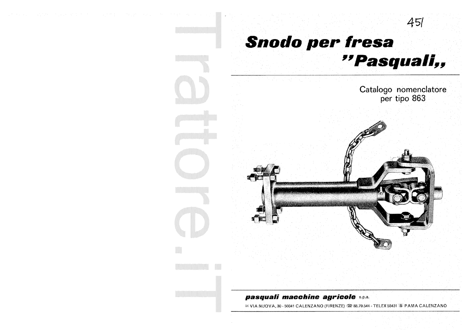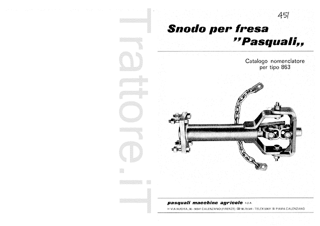 Snodo per Fresa Pasquali 863 manuale ricambi 1976