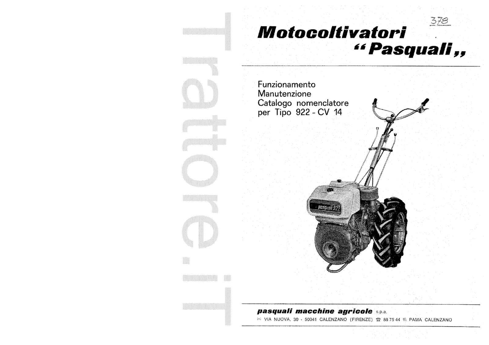 Motocoltivatore Pasquali 922 CV 14 manuale manutenzione e ricambi
