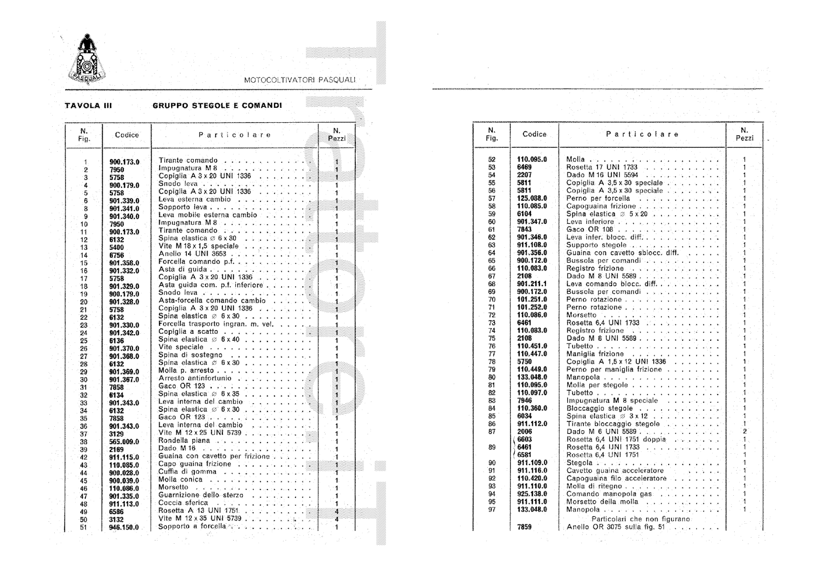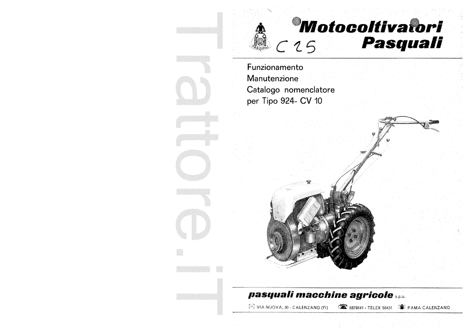 Motocoltivatore Pasquali 924 CV 10 manuale manutenzione e ricambi 1978
