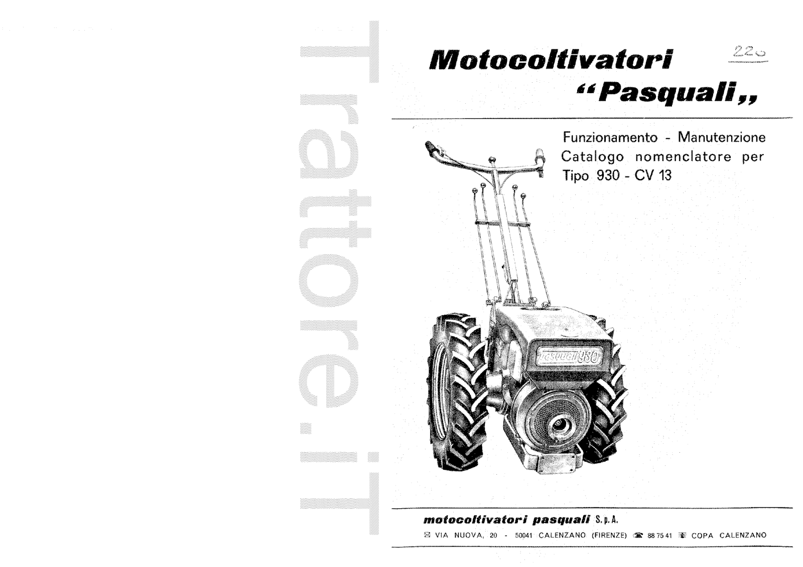 Motocoltivatore Pasquali 930 CV 13 manuale manutenzione e ricambi 1970