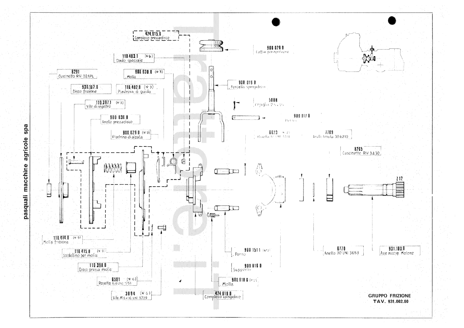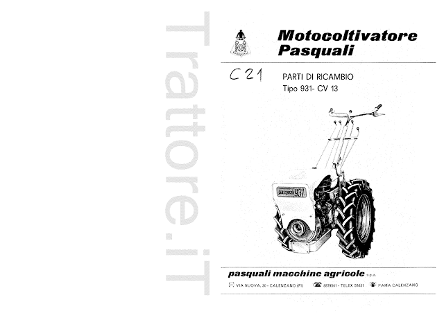 Motocoltivatore Pasquali 931 CV 13 manuale ricambi 1978