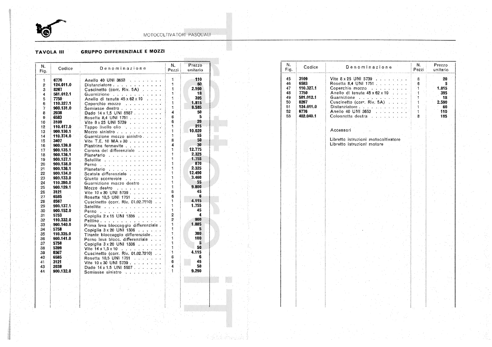 Motocoltivatore Pasquali 936 CV 14 manuale manutenzione e ricambi