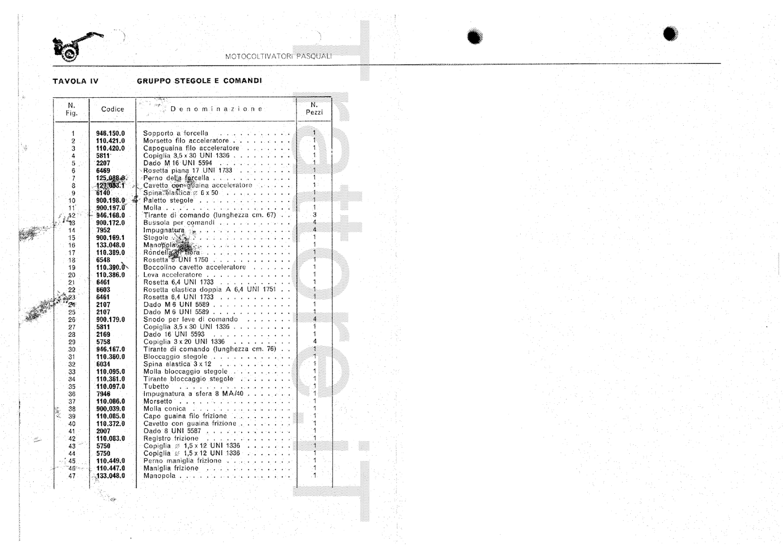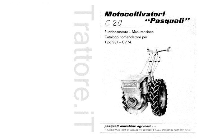 Motocoltivatore Pasquali 937 CV 14 manuale manutenzione e ricambi 1976