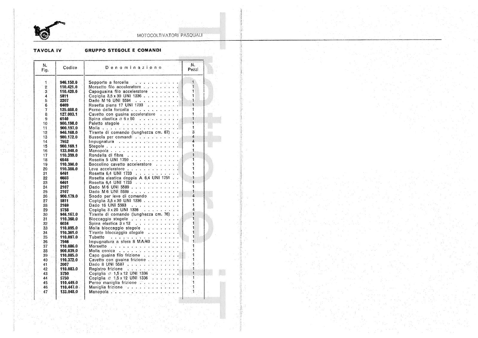 Motocoltivatore Pasquali 937 CV 14 manuale manutenzione e ricambi 1977