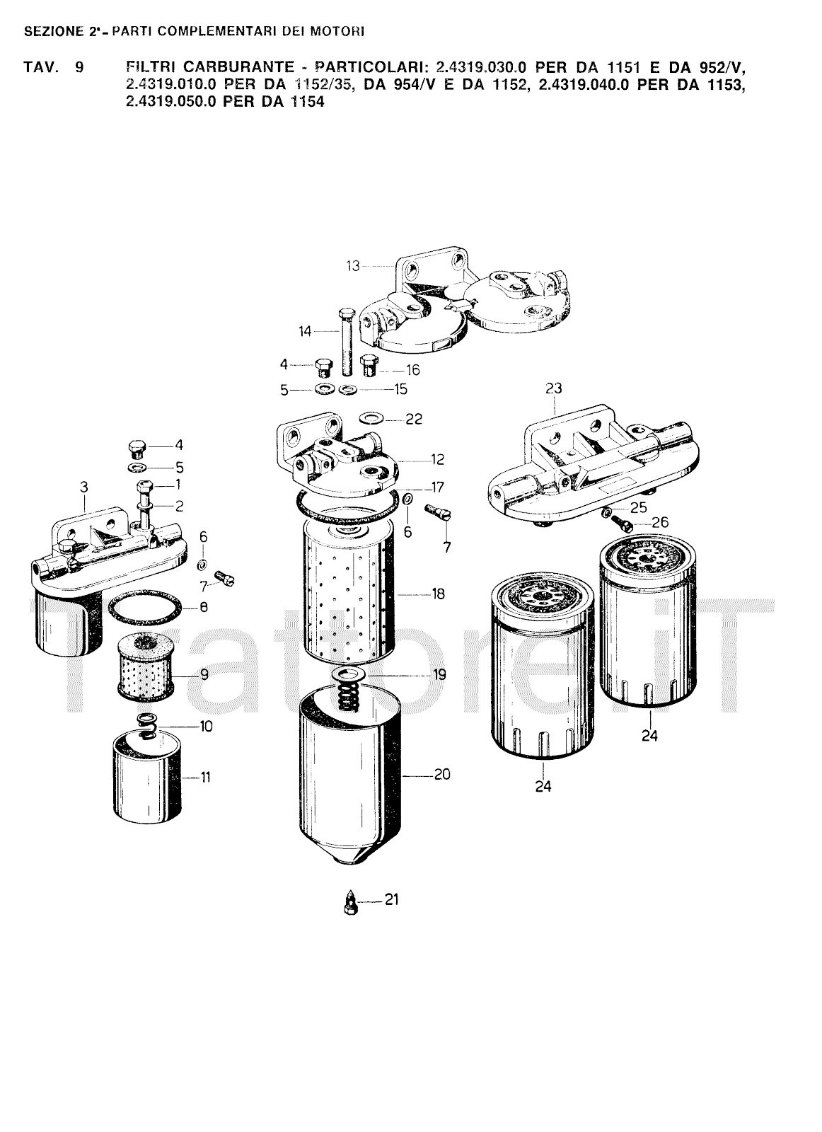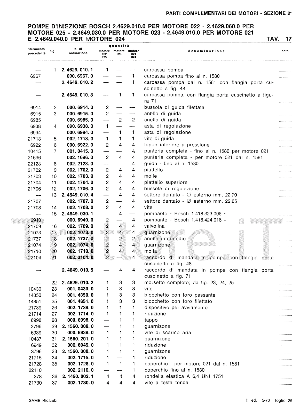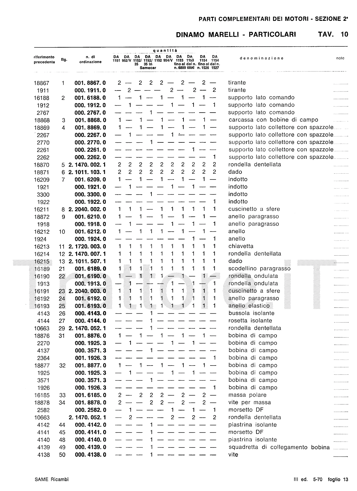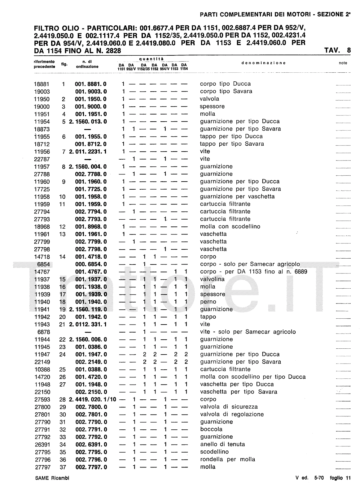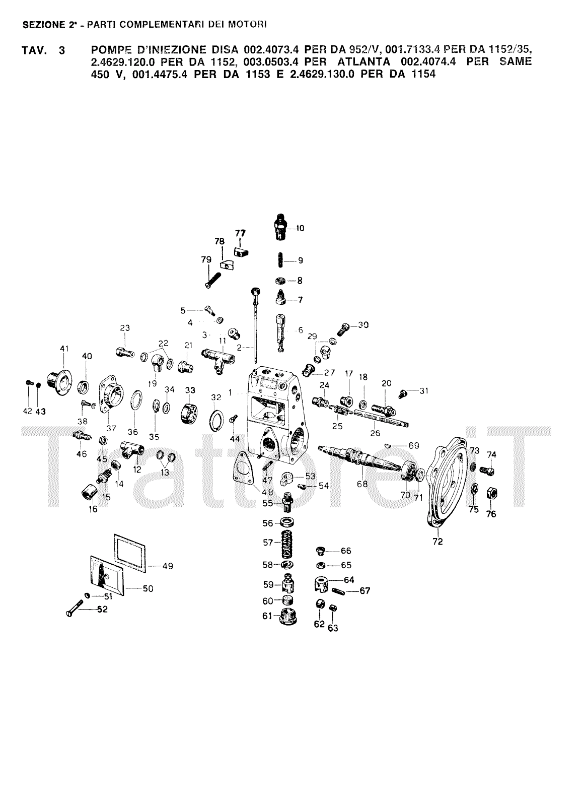 Manuale (esploso meccanico) Parti Complementari Motore Same (Filtro Olio, Pompa Alimentazione, Porta polverizzatore, Filtro Carburante, Dinamo, Motorino d'avviamento, Pompa D'iniezione)