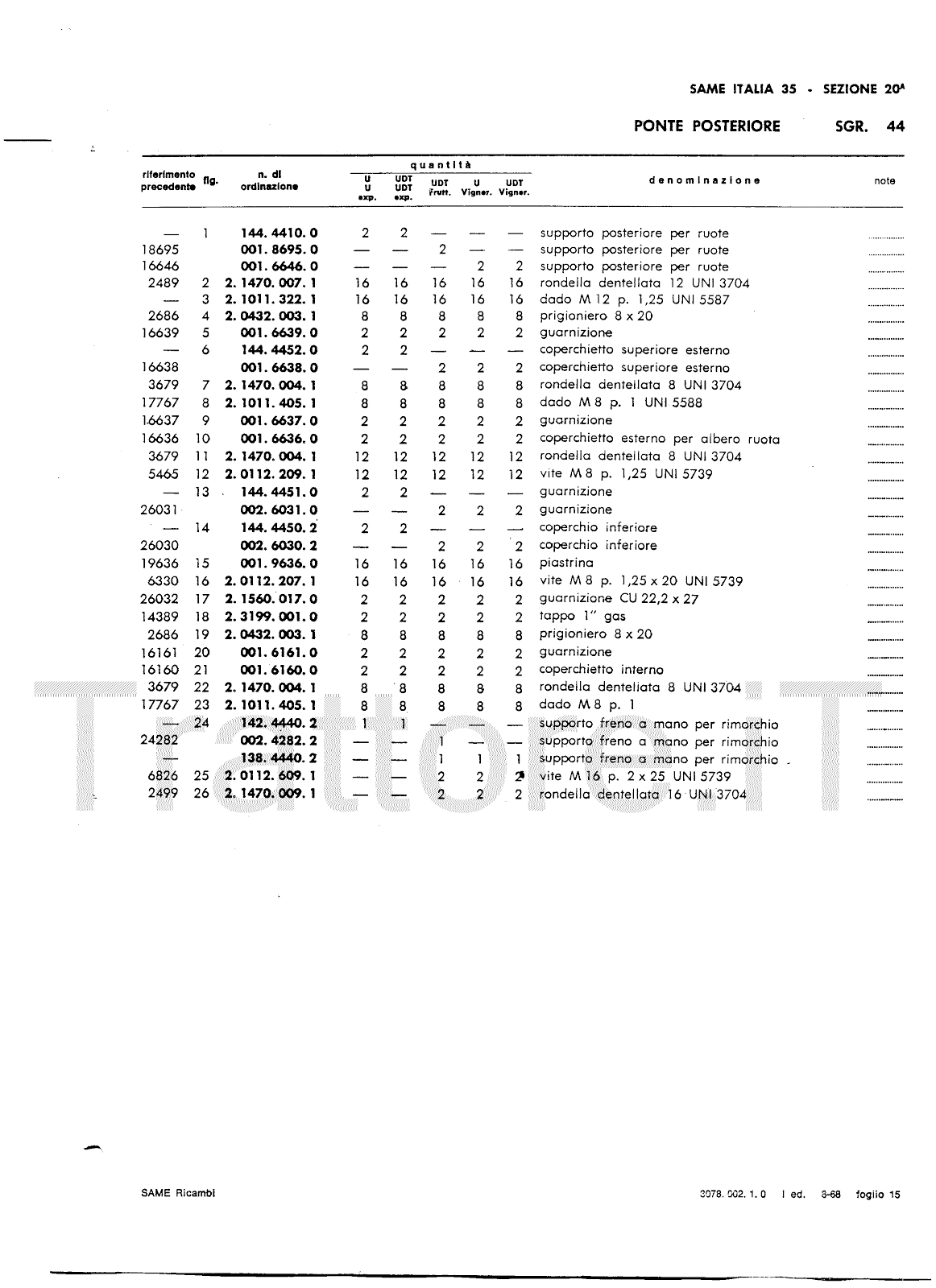 Manuale (esploso meccanico) per Trattore/Trattrice Same Italia 35 HP 33/Frutteto/Vignerino