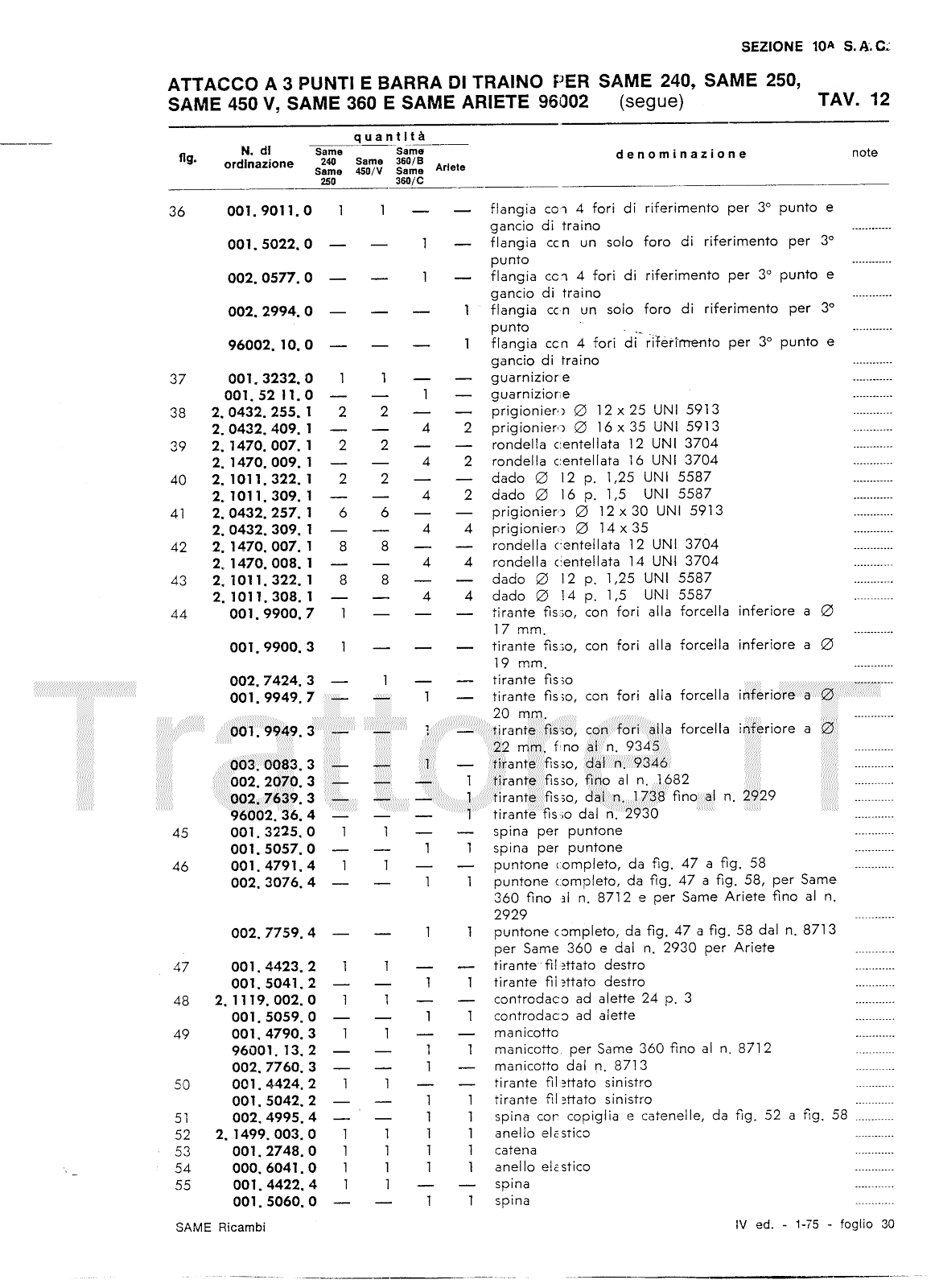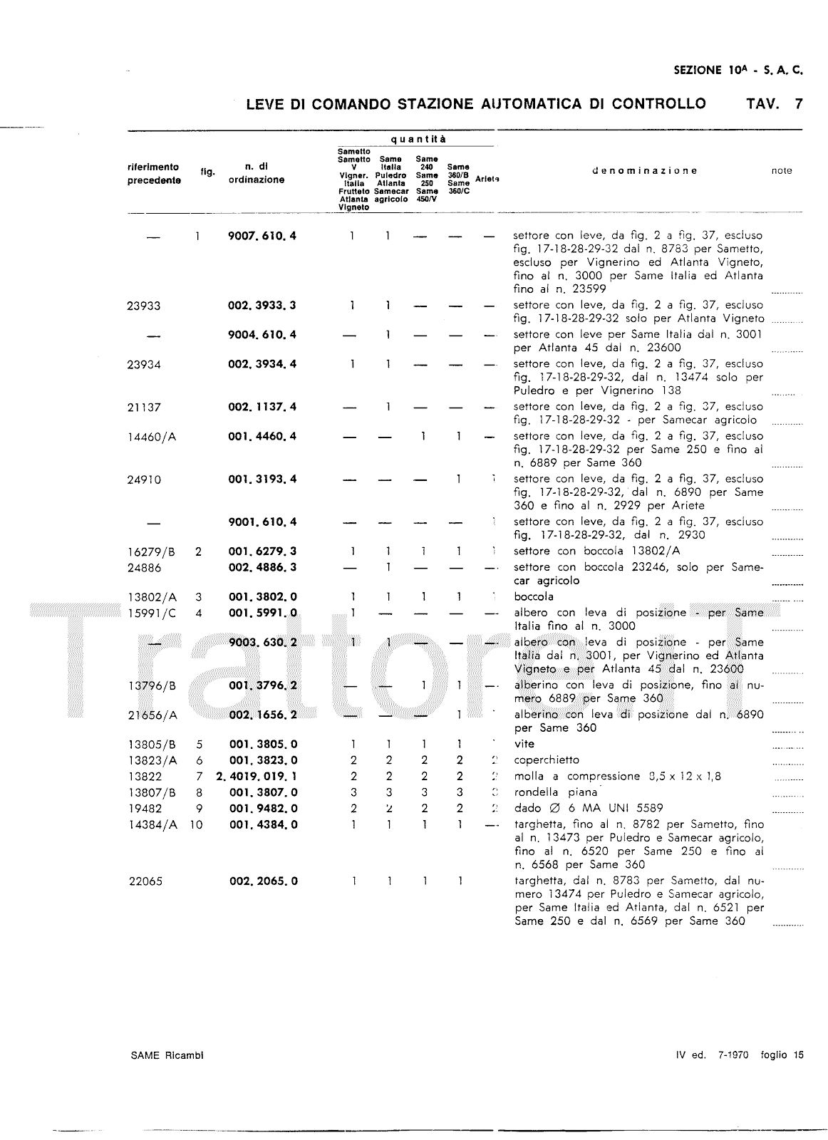 Manuale (esploso meccanico) Stazione Automatica di controllo per Trattore/Trattrice Same 450 / V