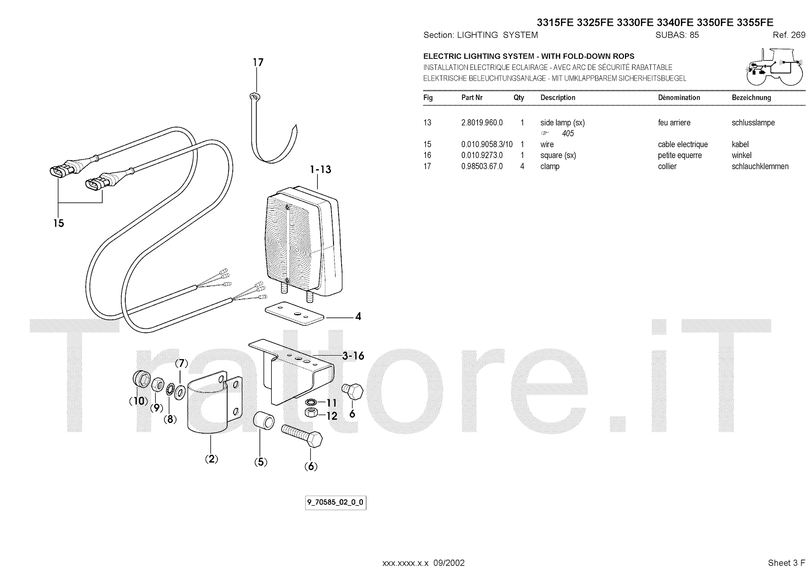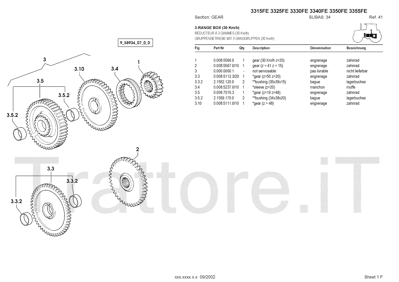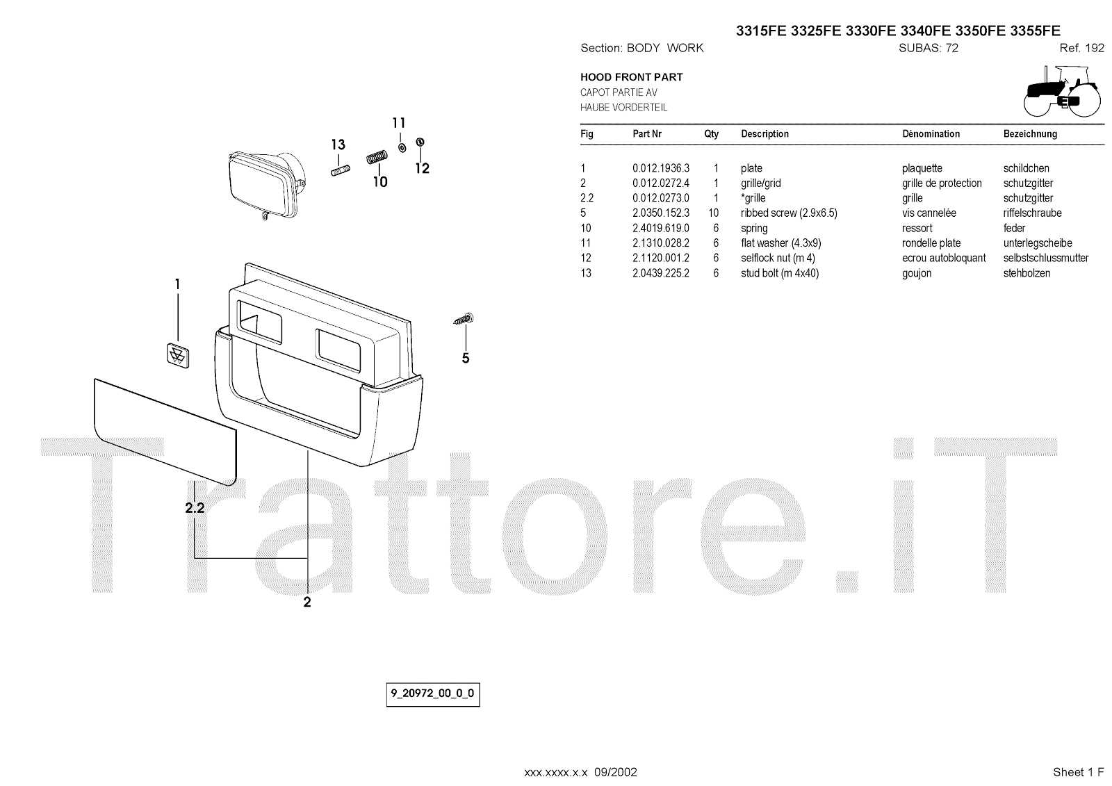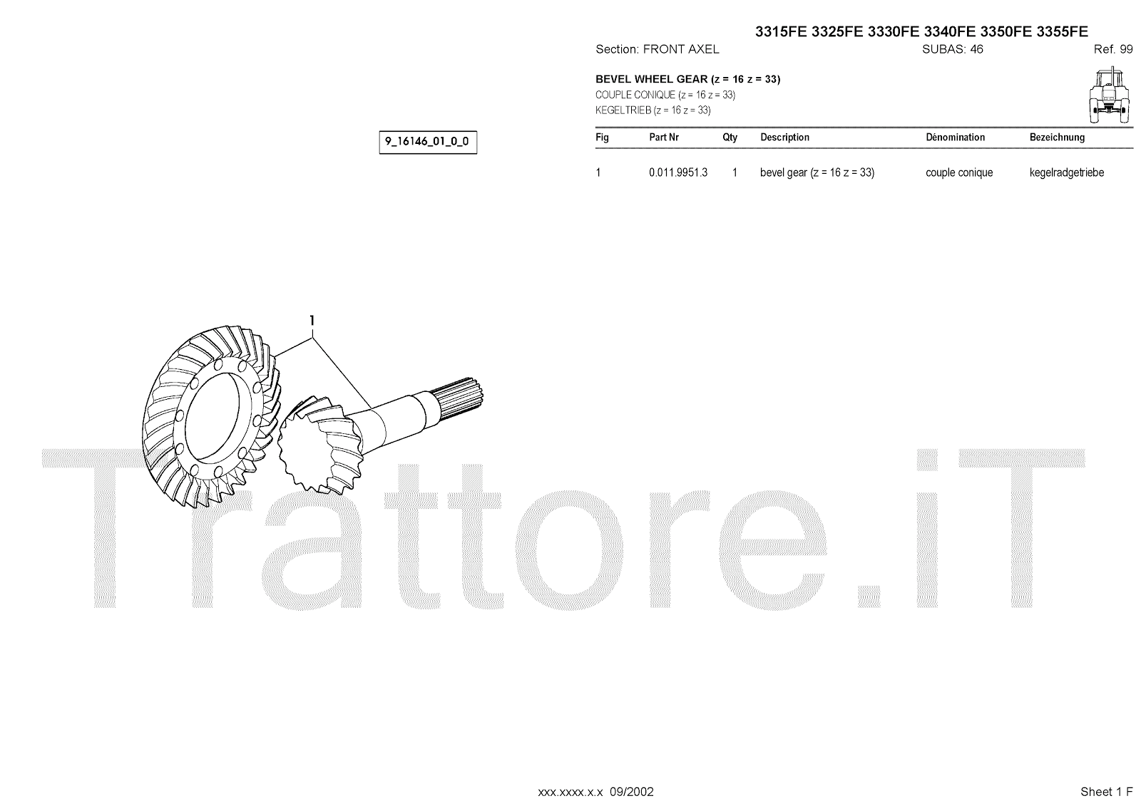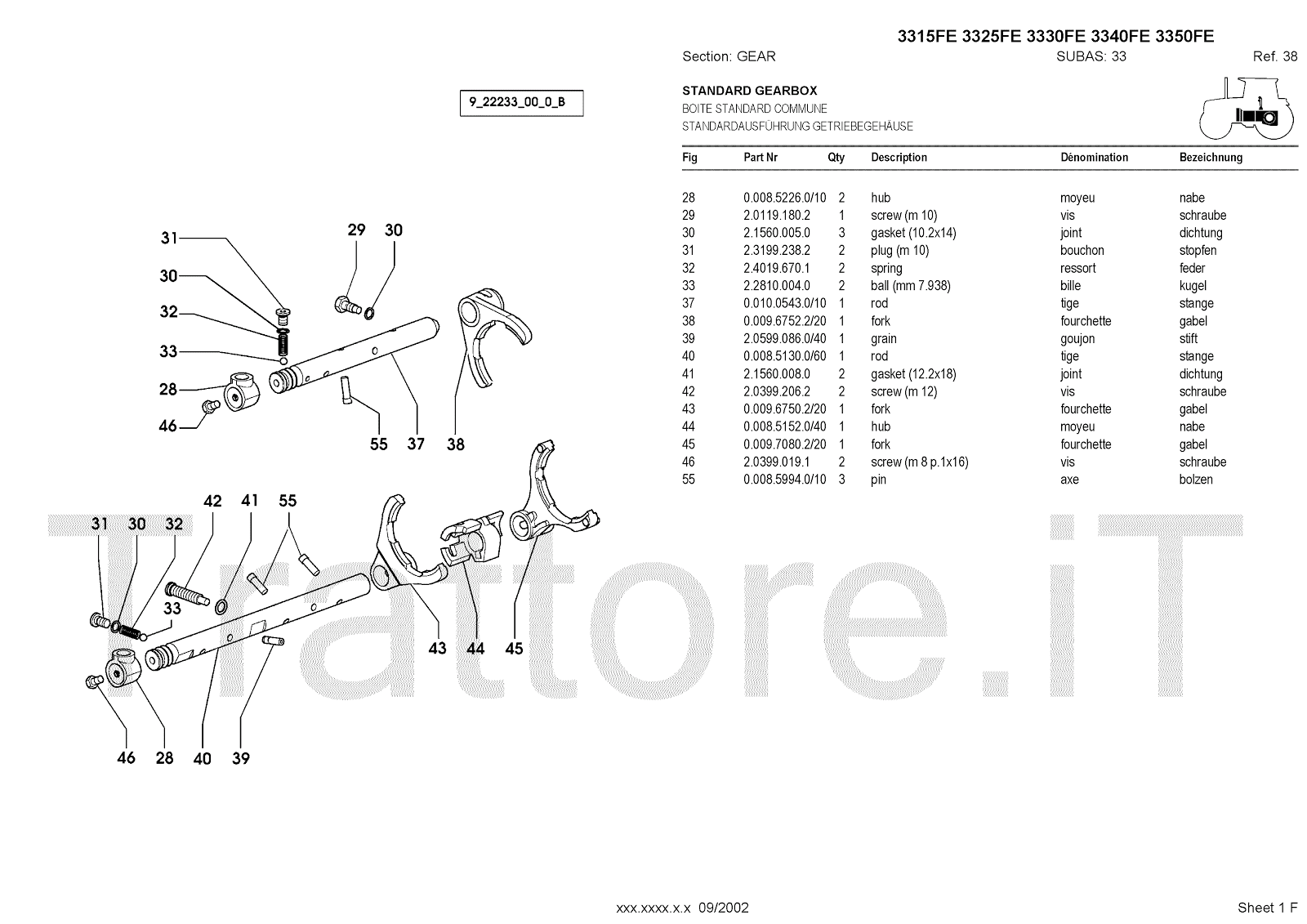 Manuale (esploso meccanico) per trattore / trattrice Massey Ferguson 3330FE
