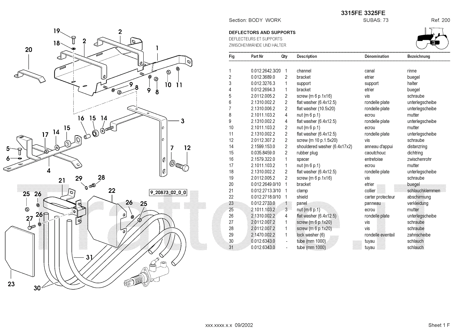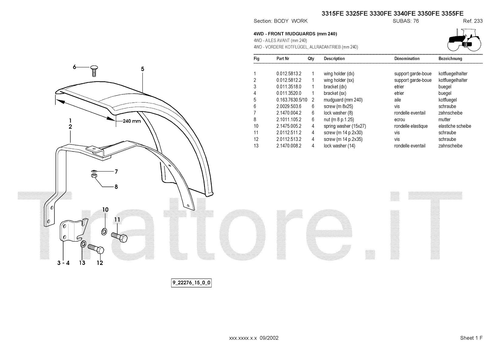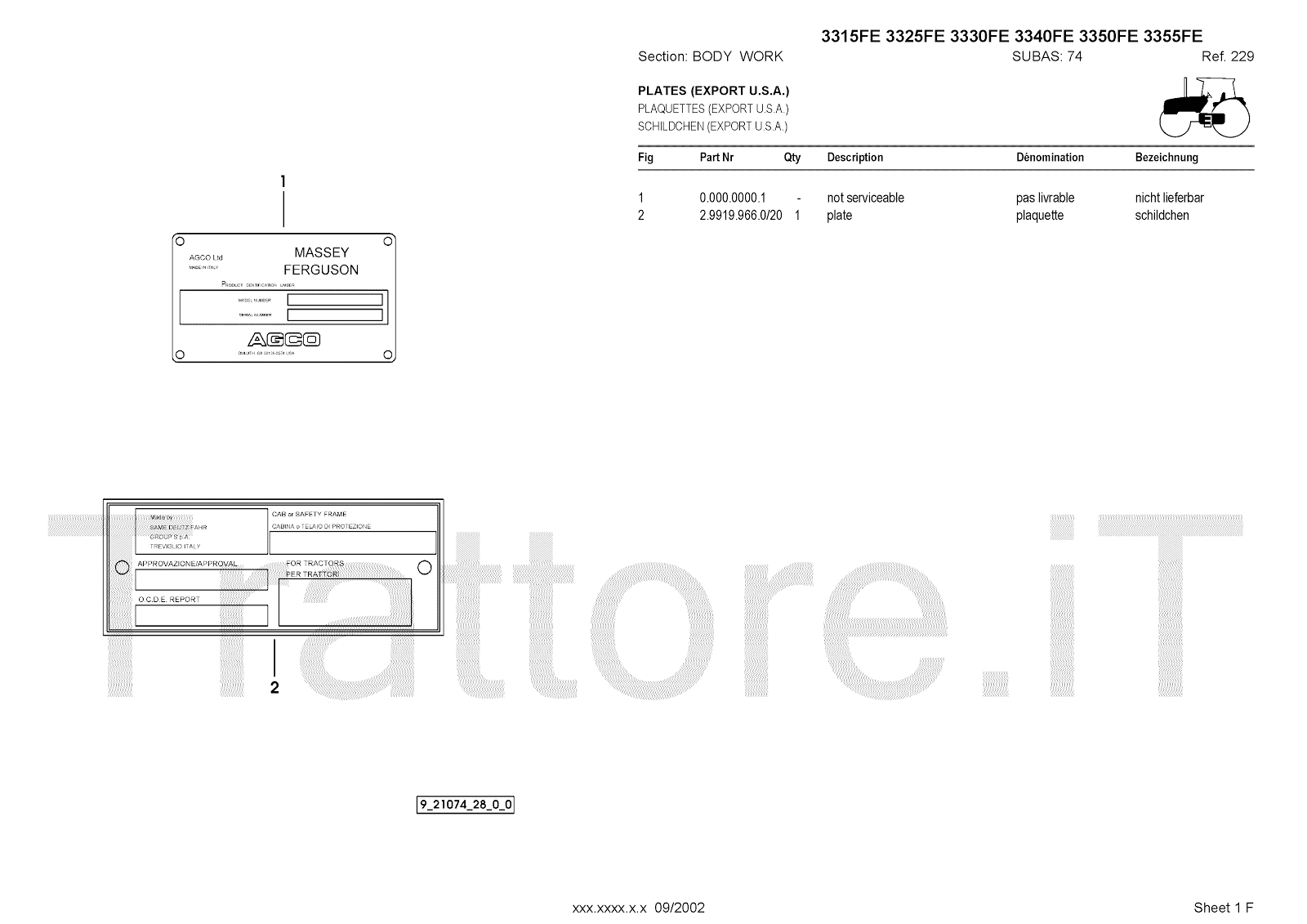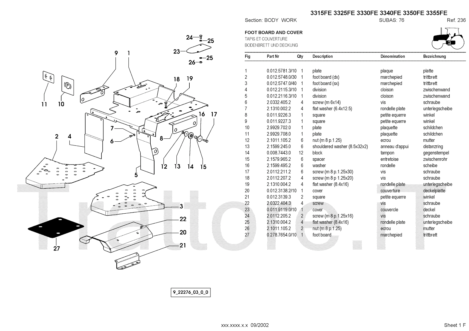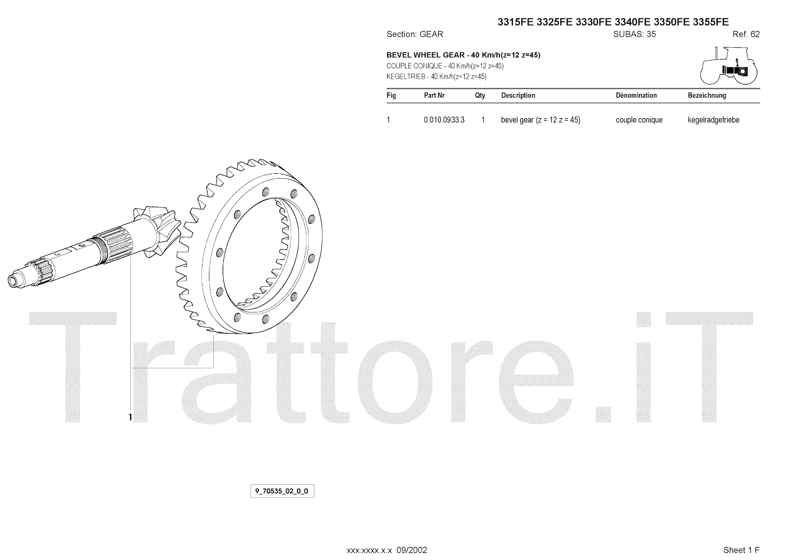 Manuale (esploso meccanico) per trattore / trattrice Massey Ferguson 3330FE