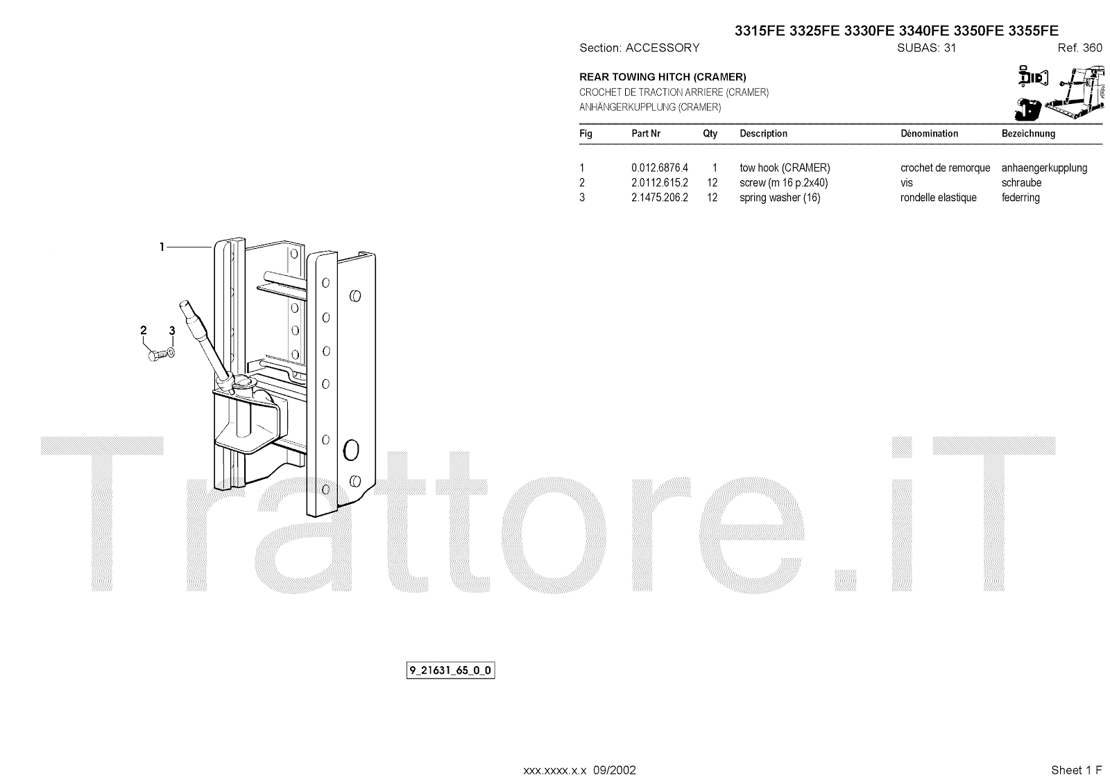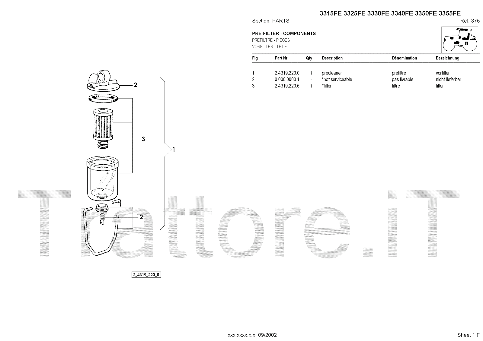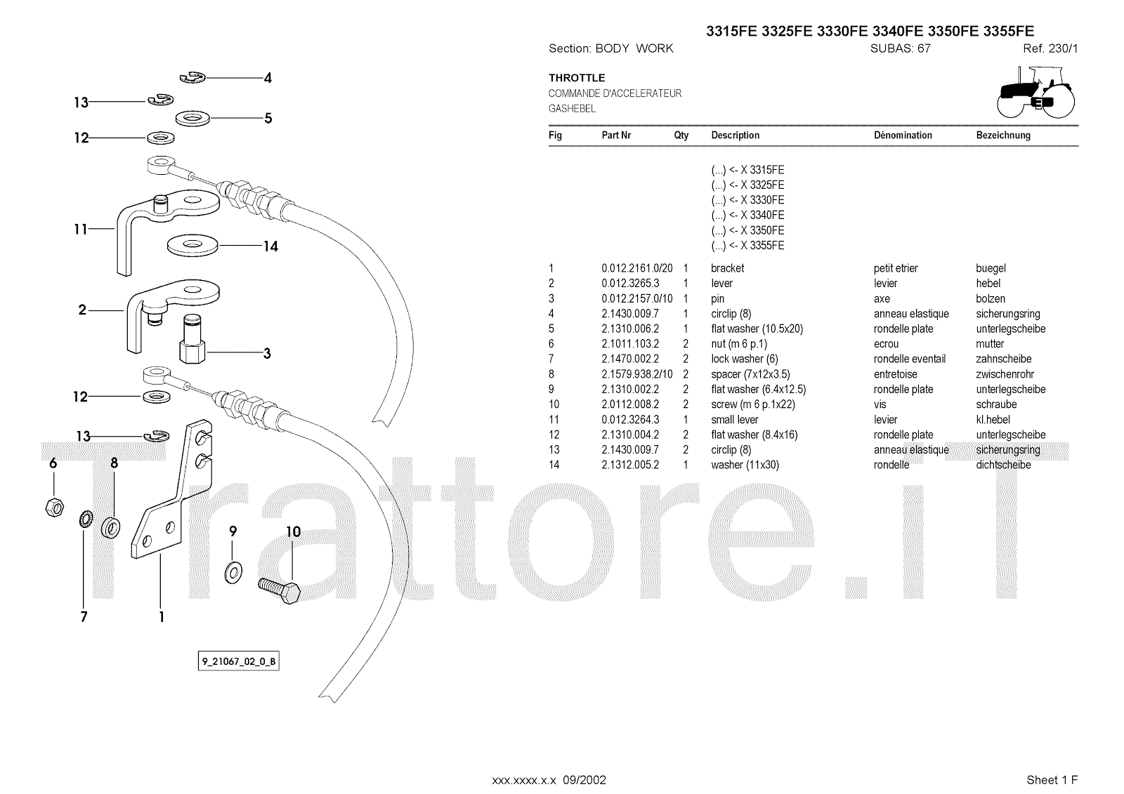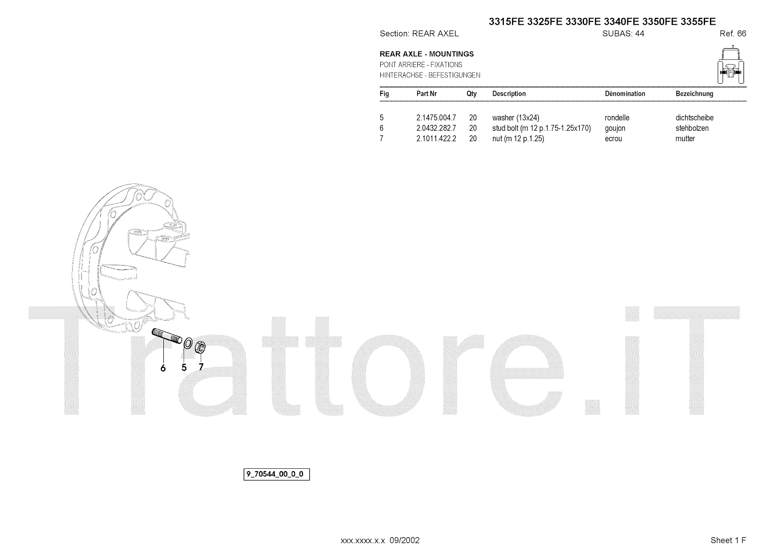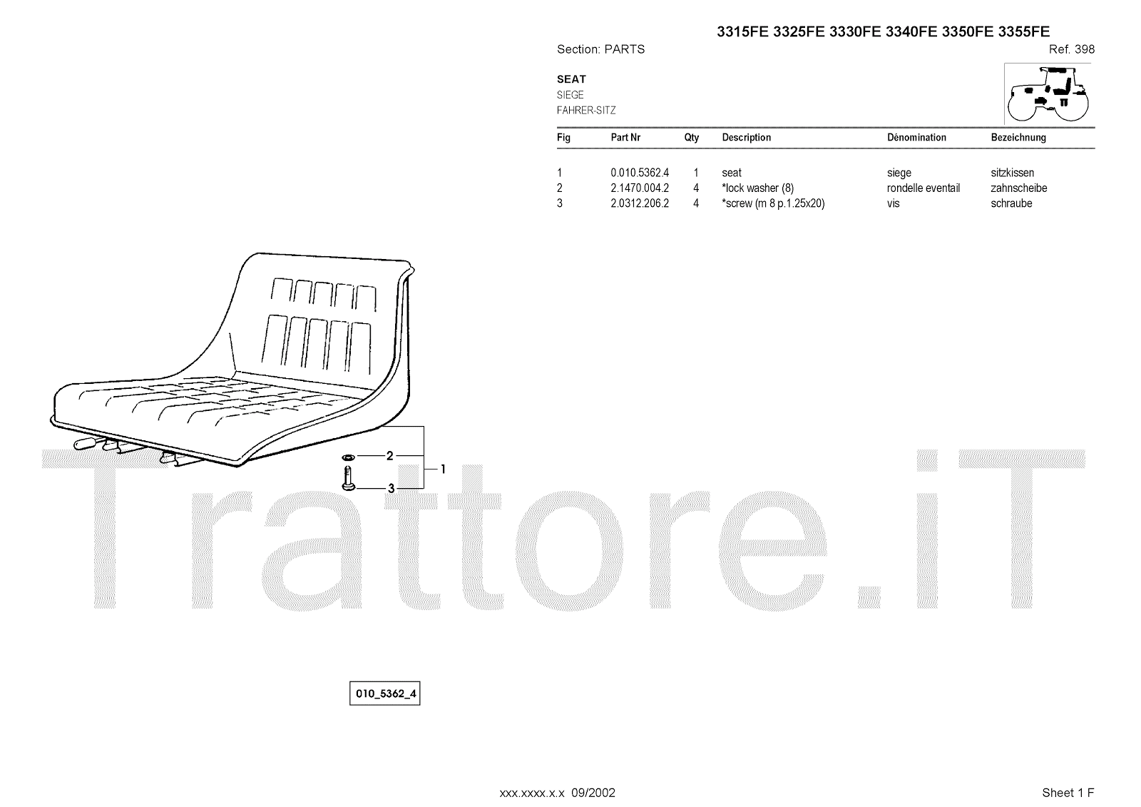 Manuale (esploso meccanico) per trattore / trattrice Massey Ferguson 3330FE