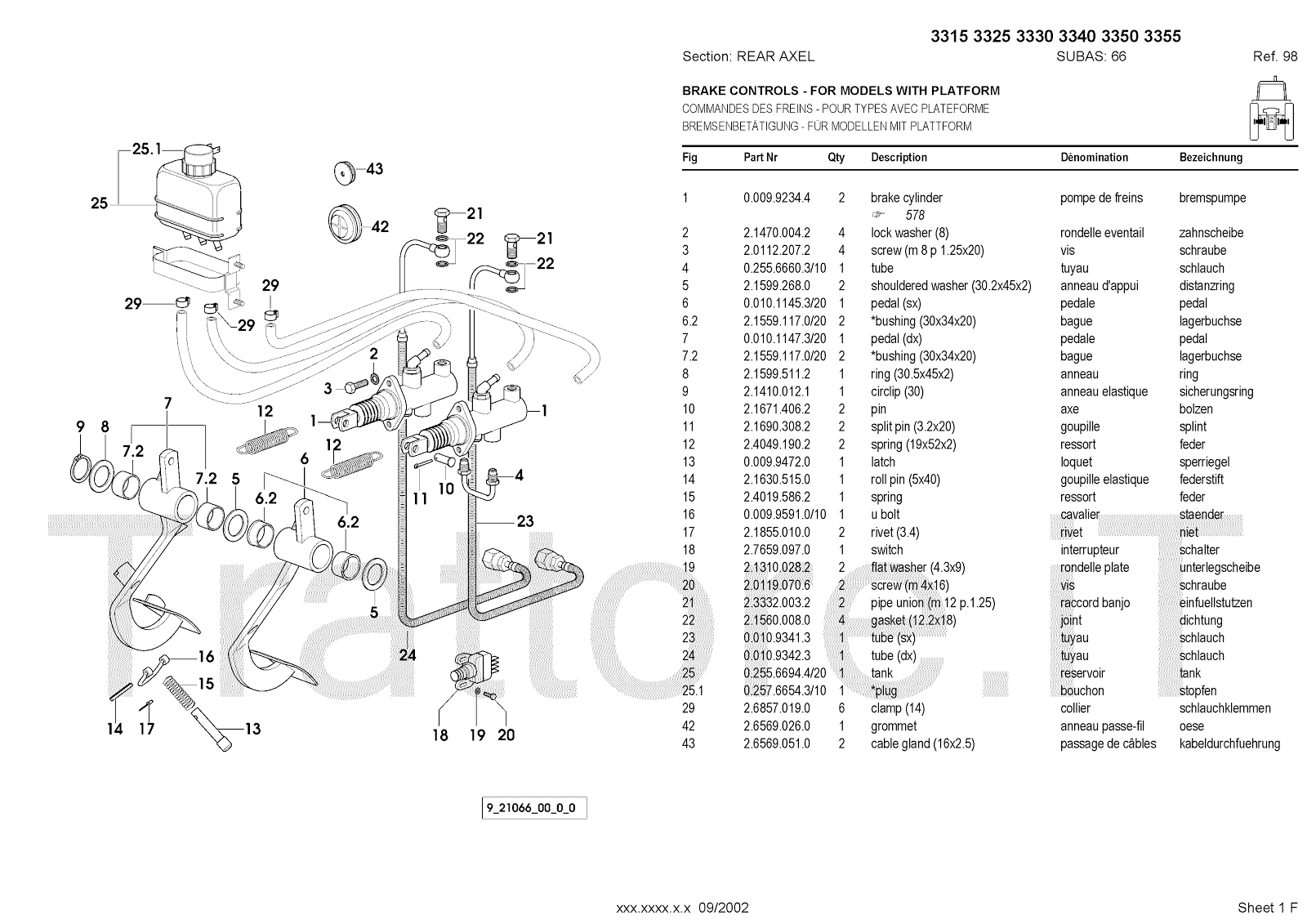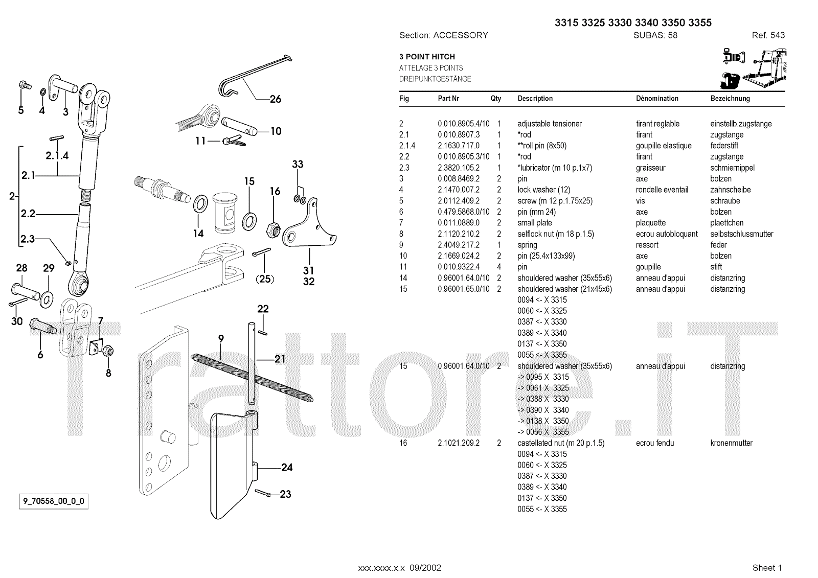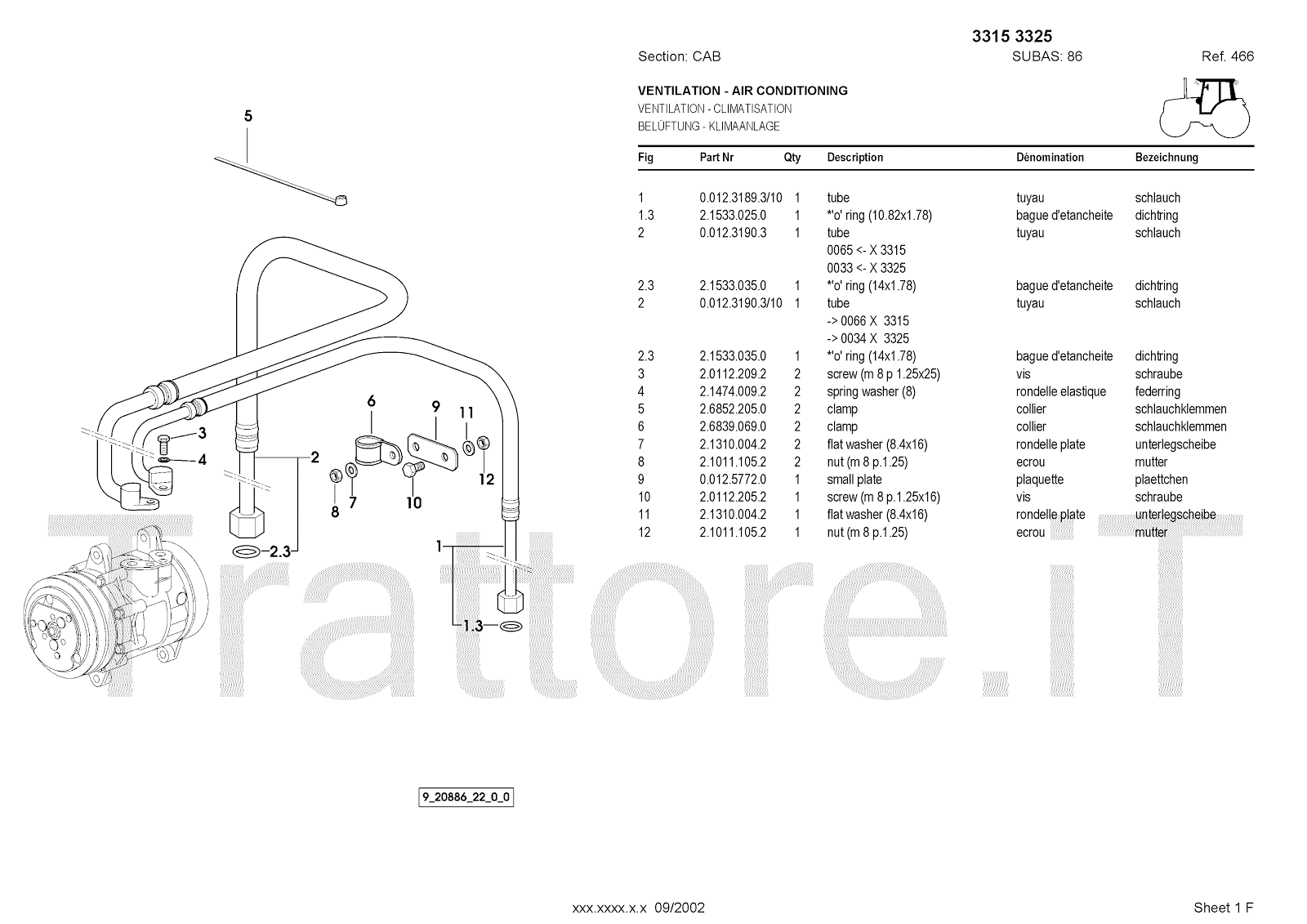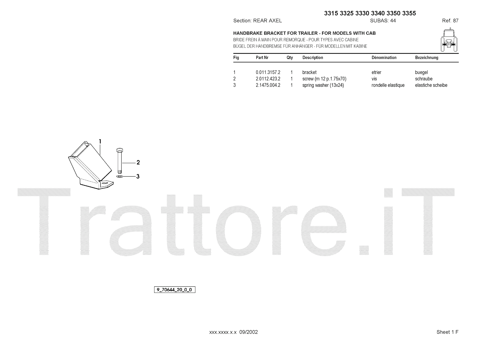 Manuale (esploso meccanico) per trattore / trattrice Massey Ferguson 3325