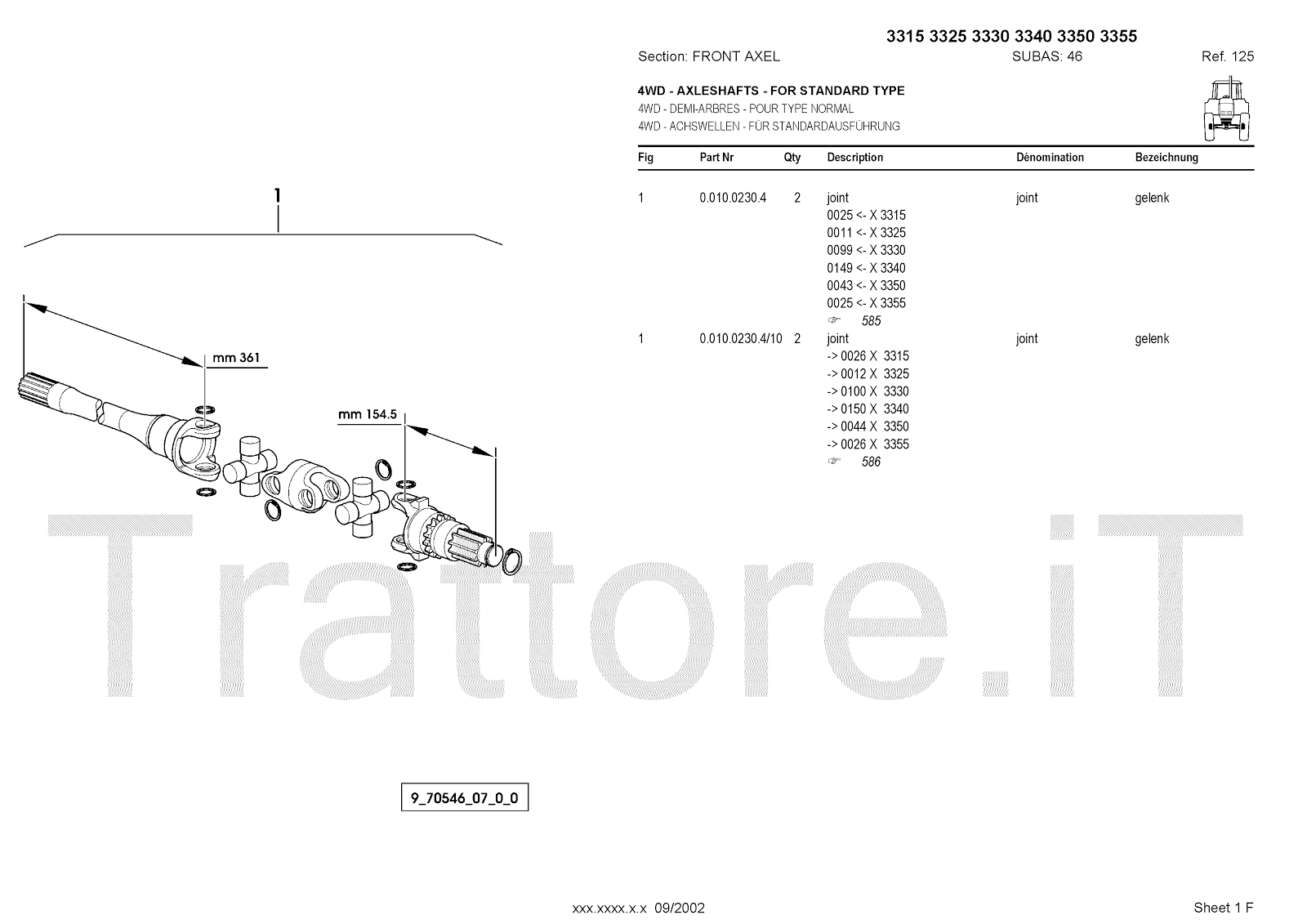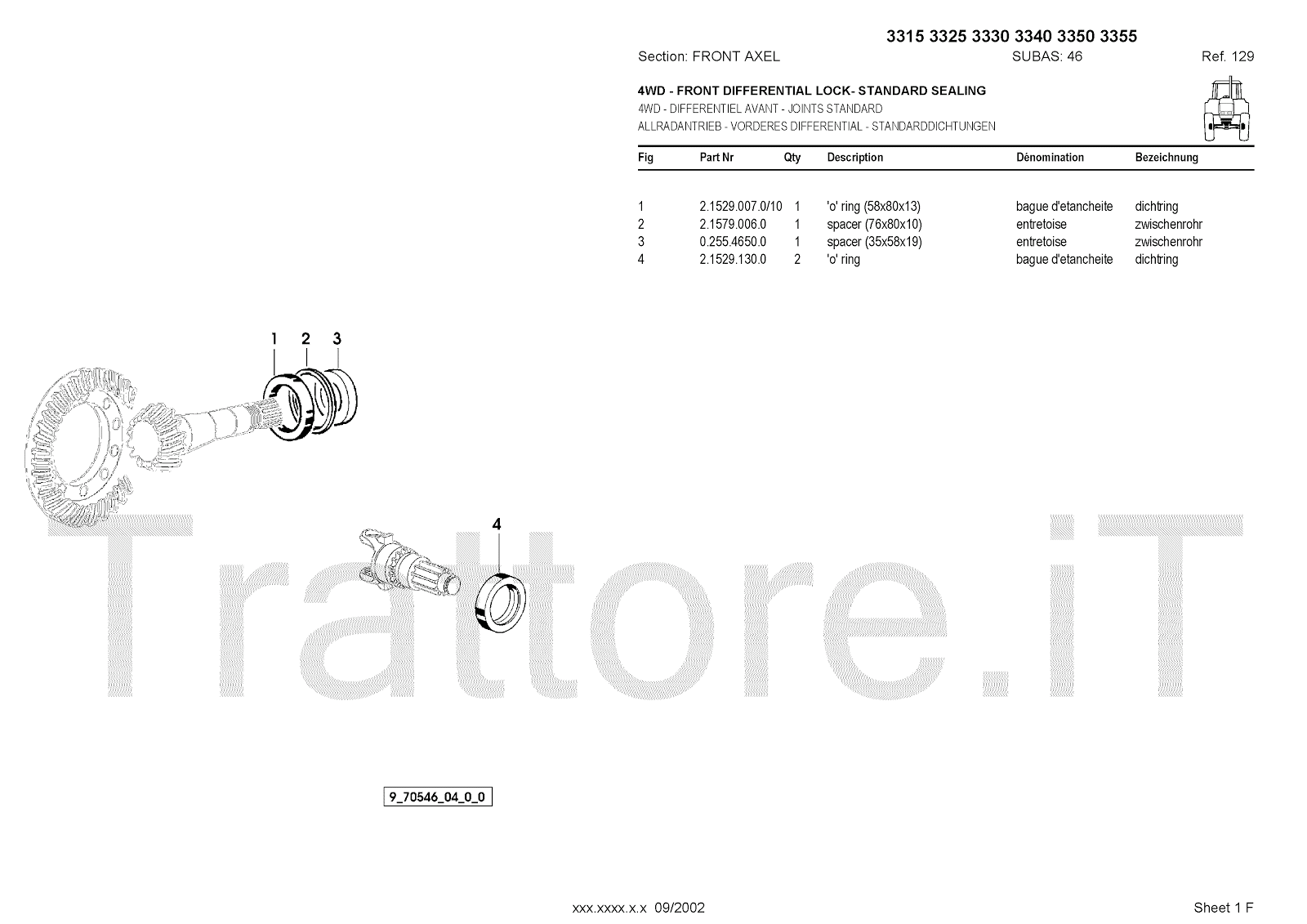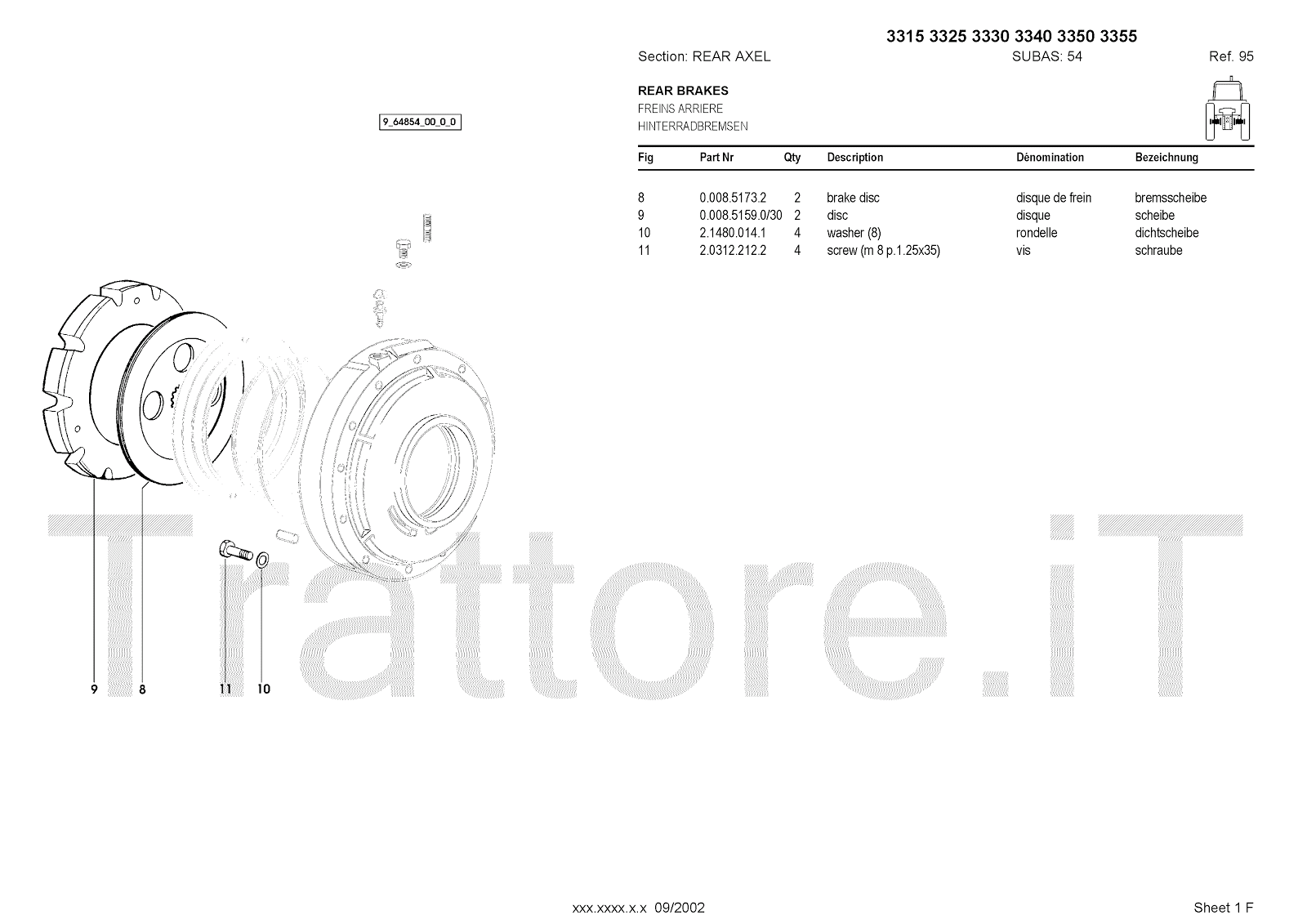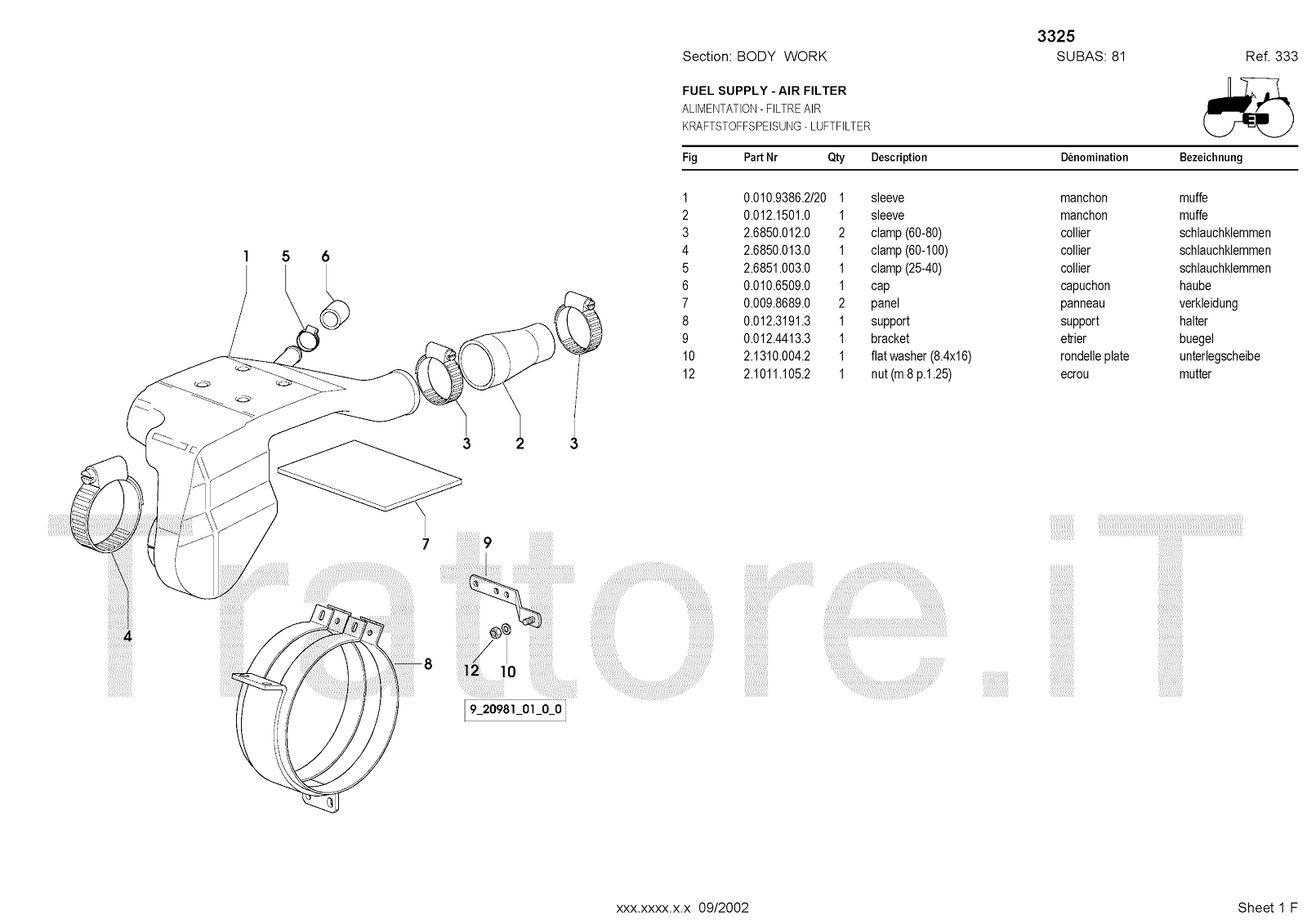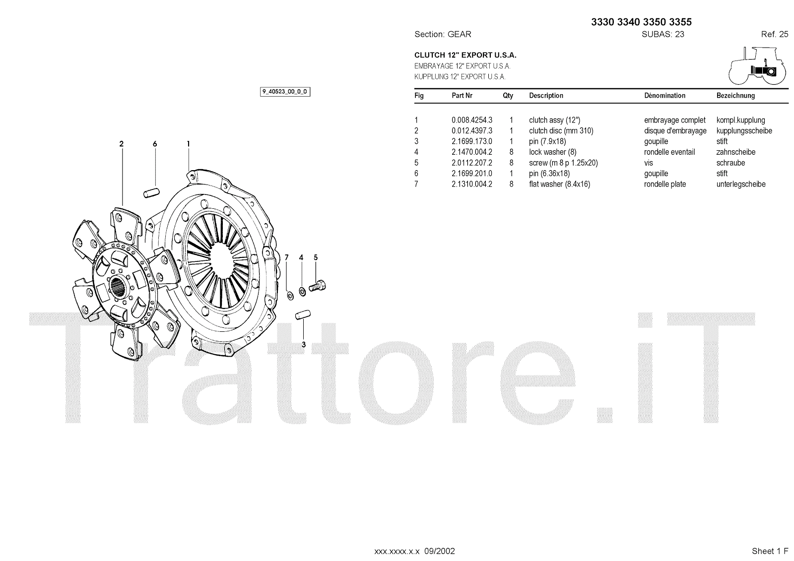 Manuale (esploso meccanico) per trattore / trattrice Massey Ferguson 3325