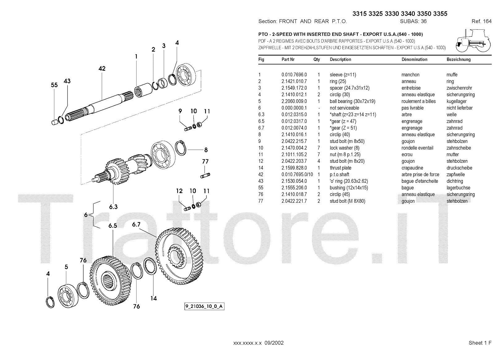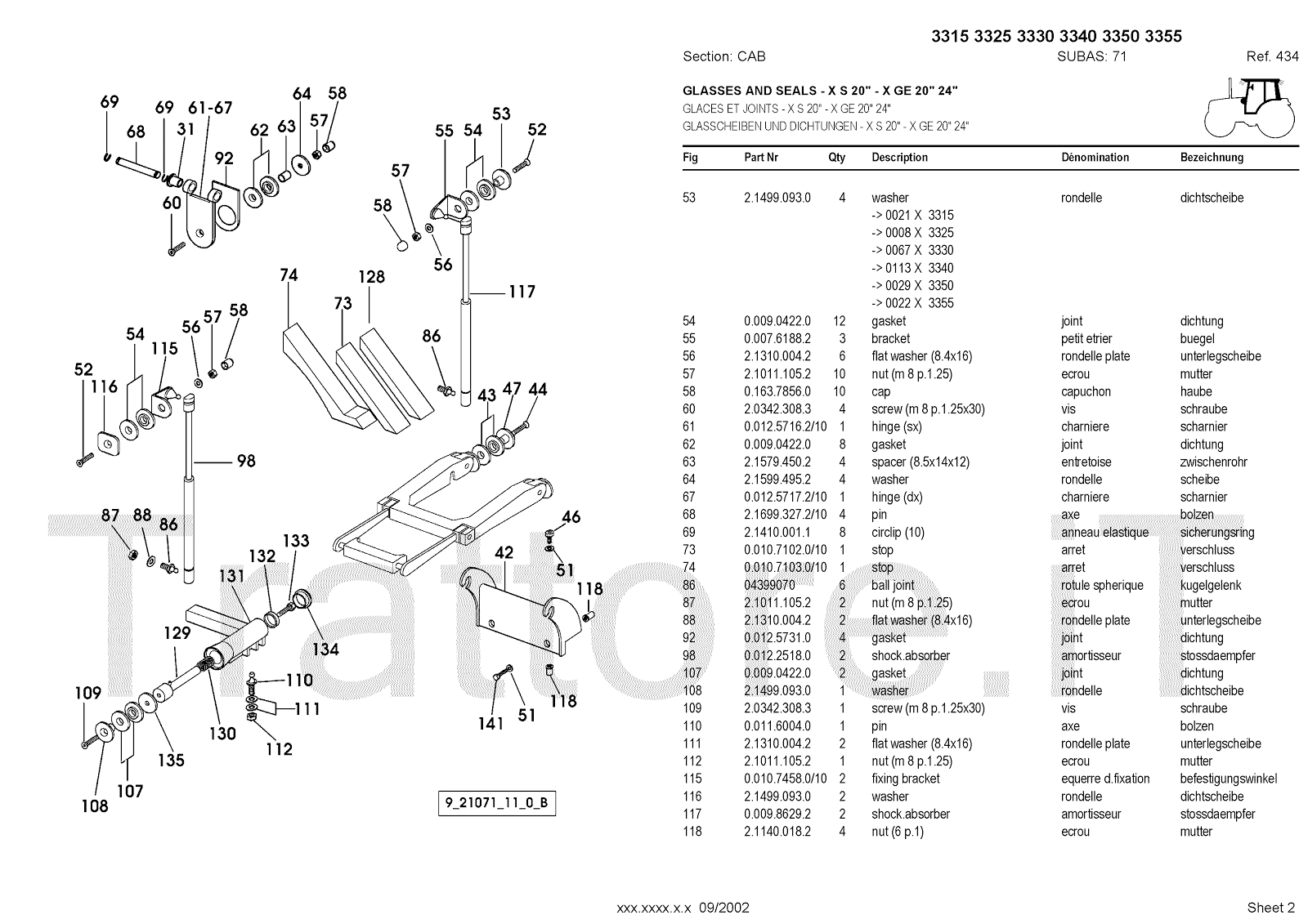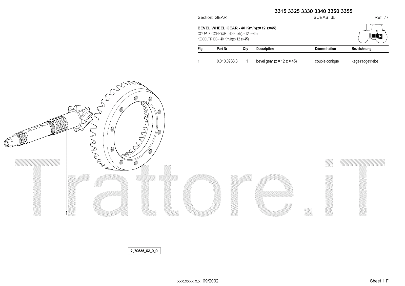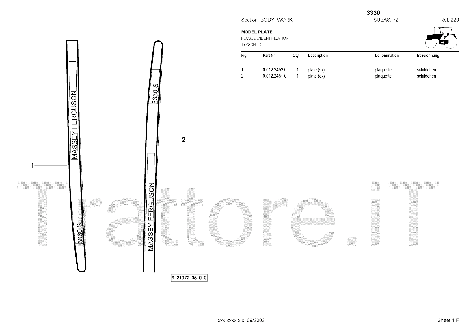Manuale (esploso meccanico) per trattore / trattrice Massey Ferguson 3325