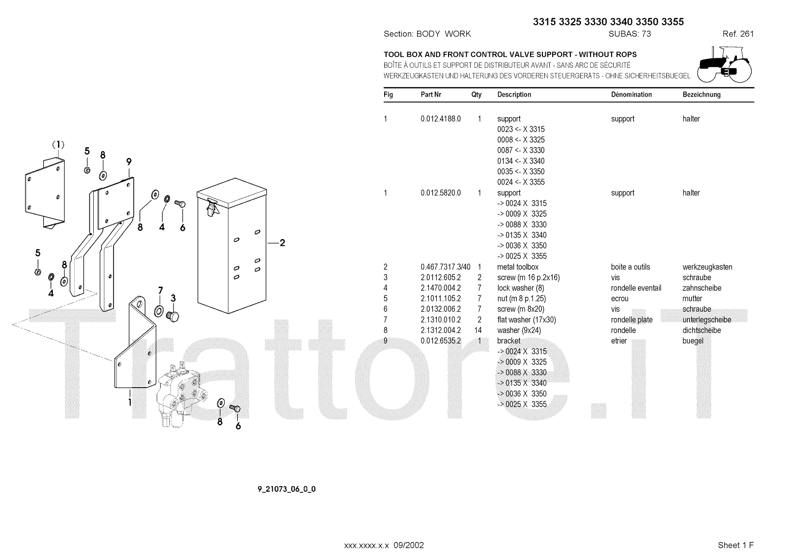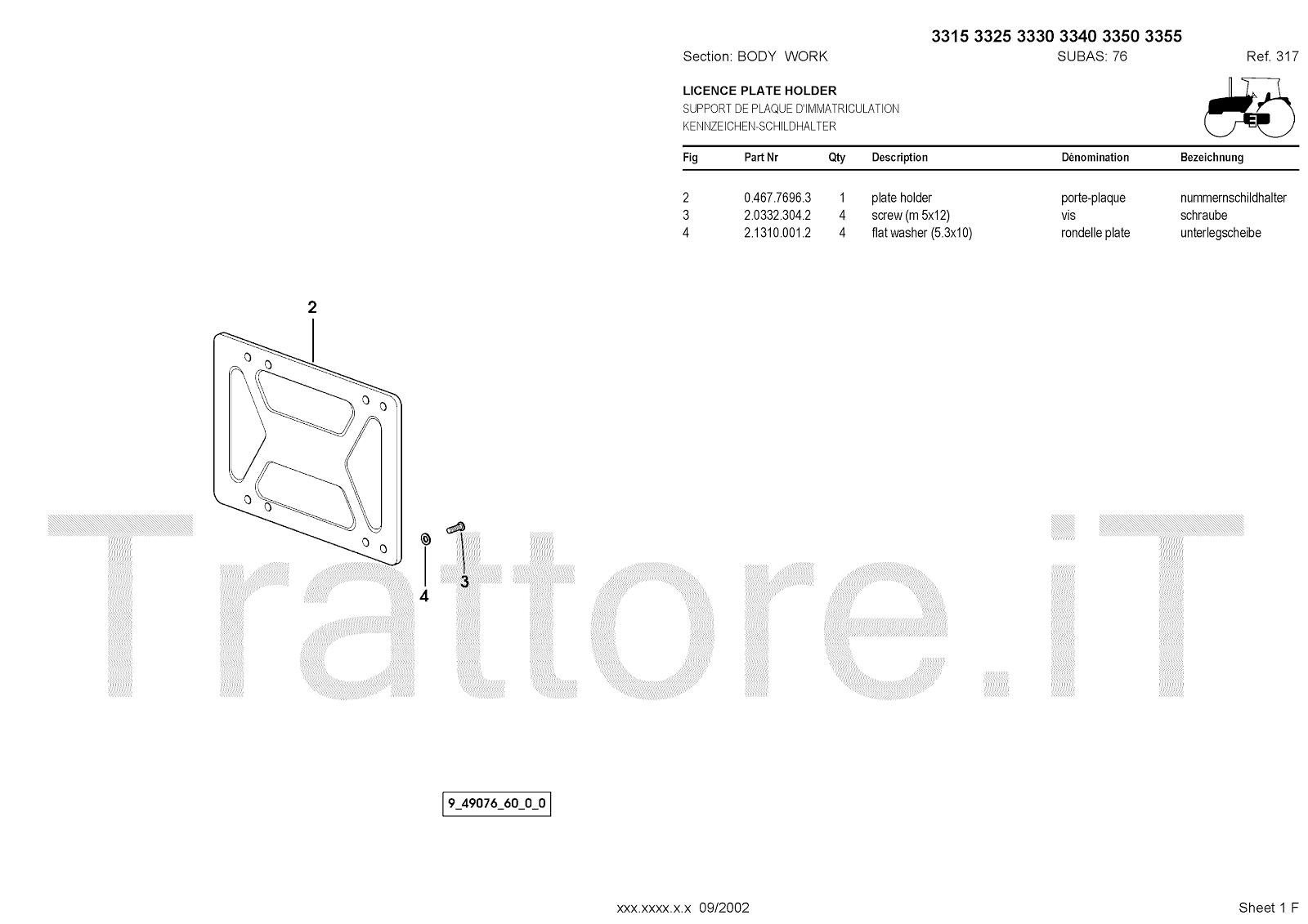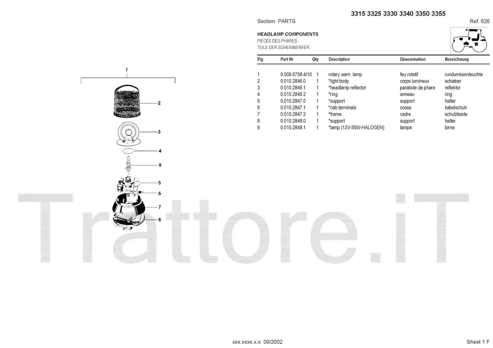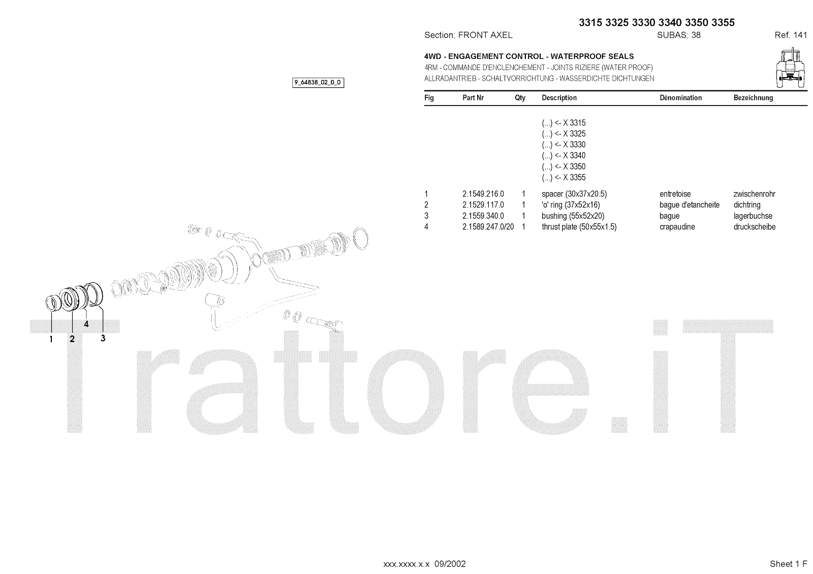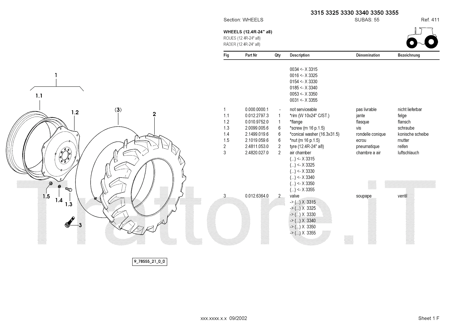 Manuale (esploso meccanico) per trattore / trattrice Massey Ferguson 3325