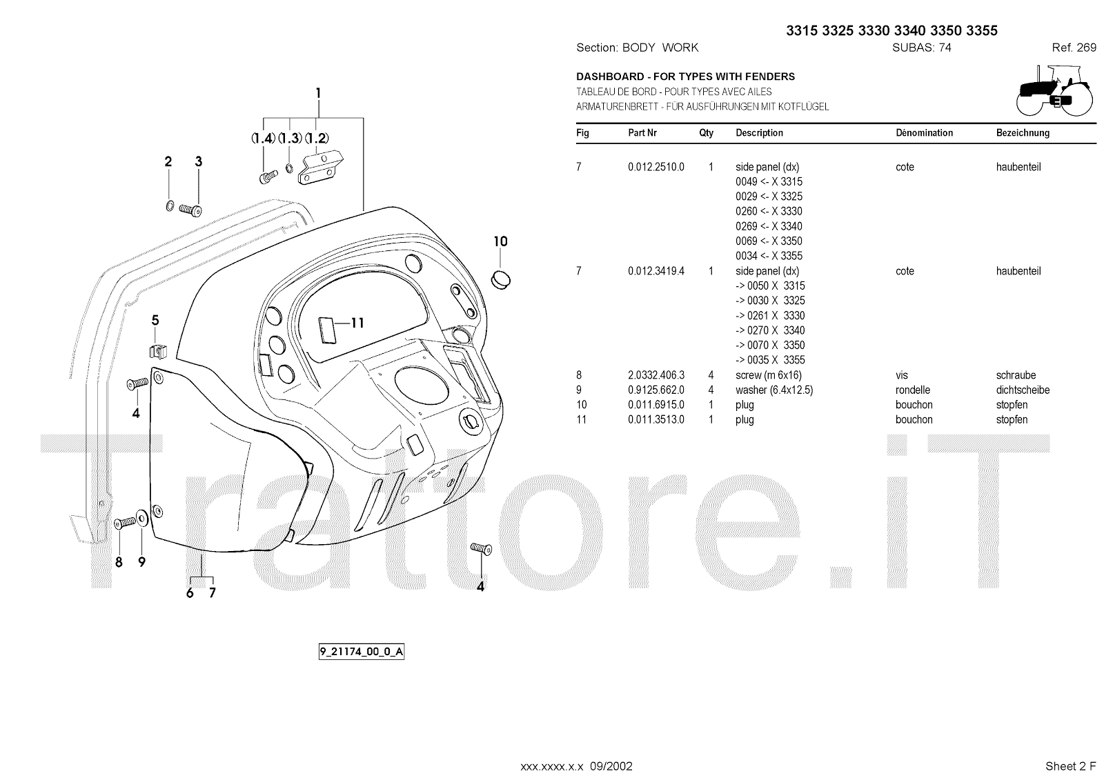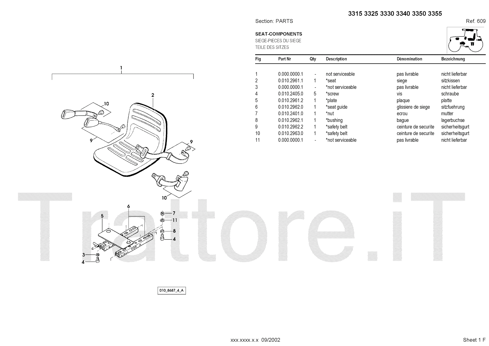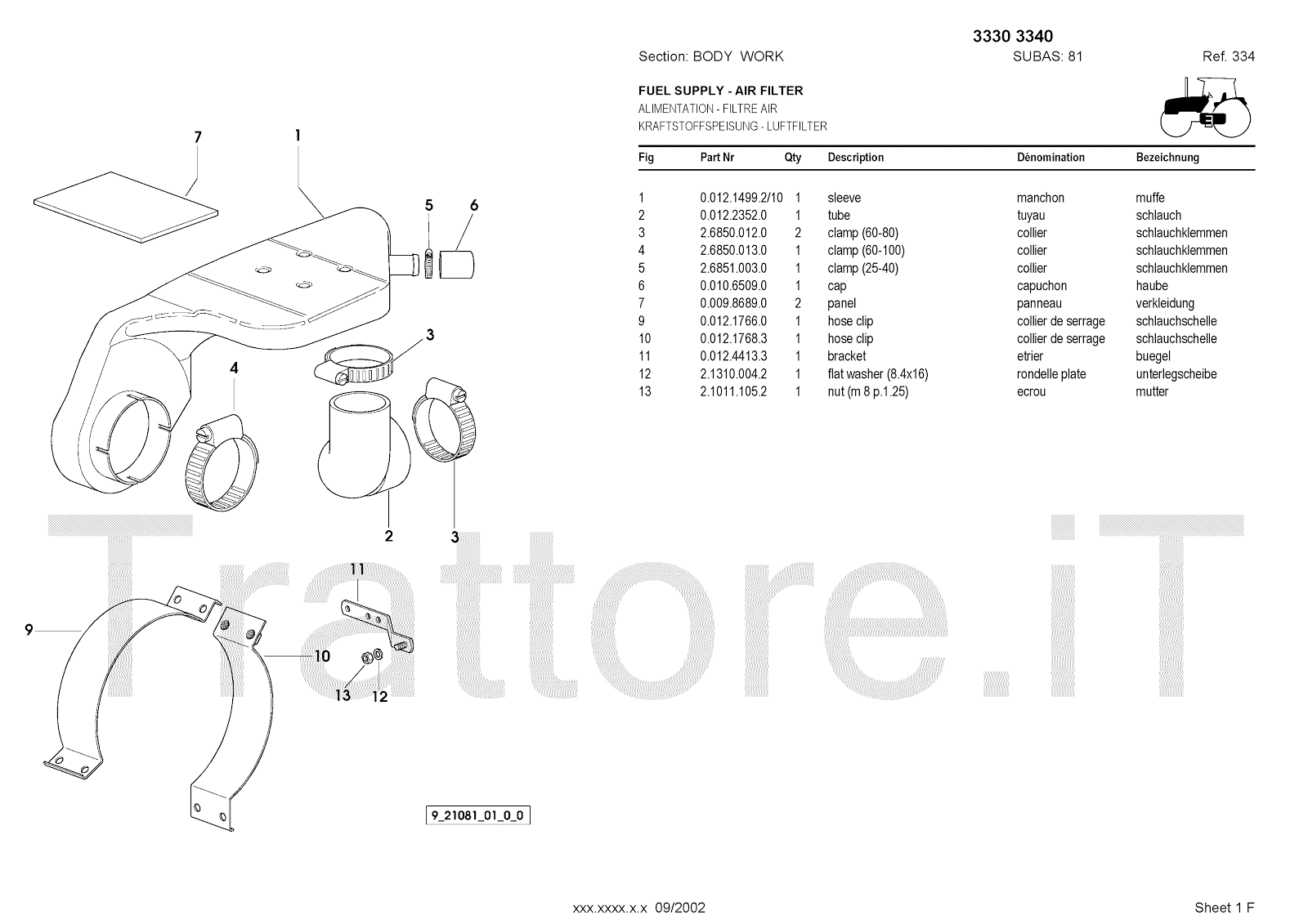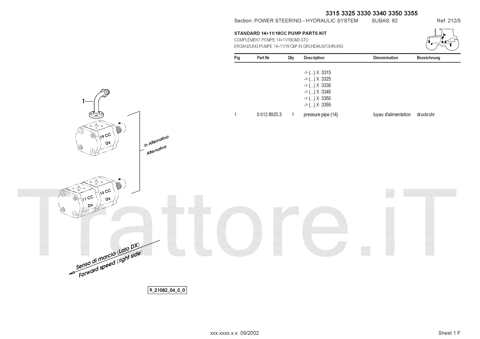 Manuale (esploso meccanico) per trattore / trattrice Massey Ferguson 3325