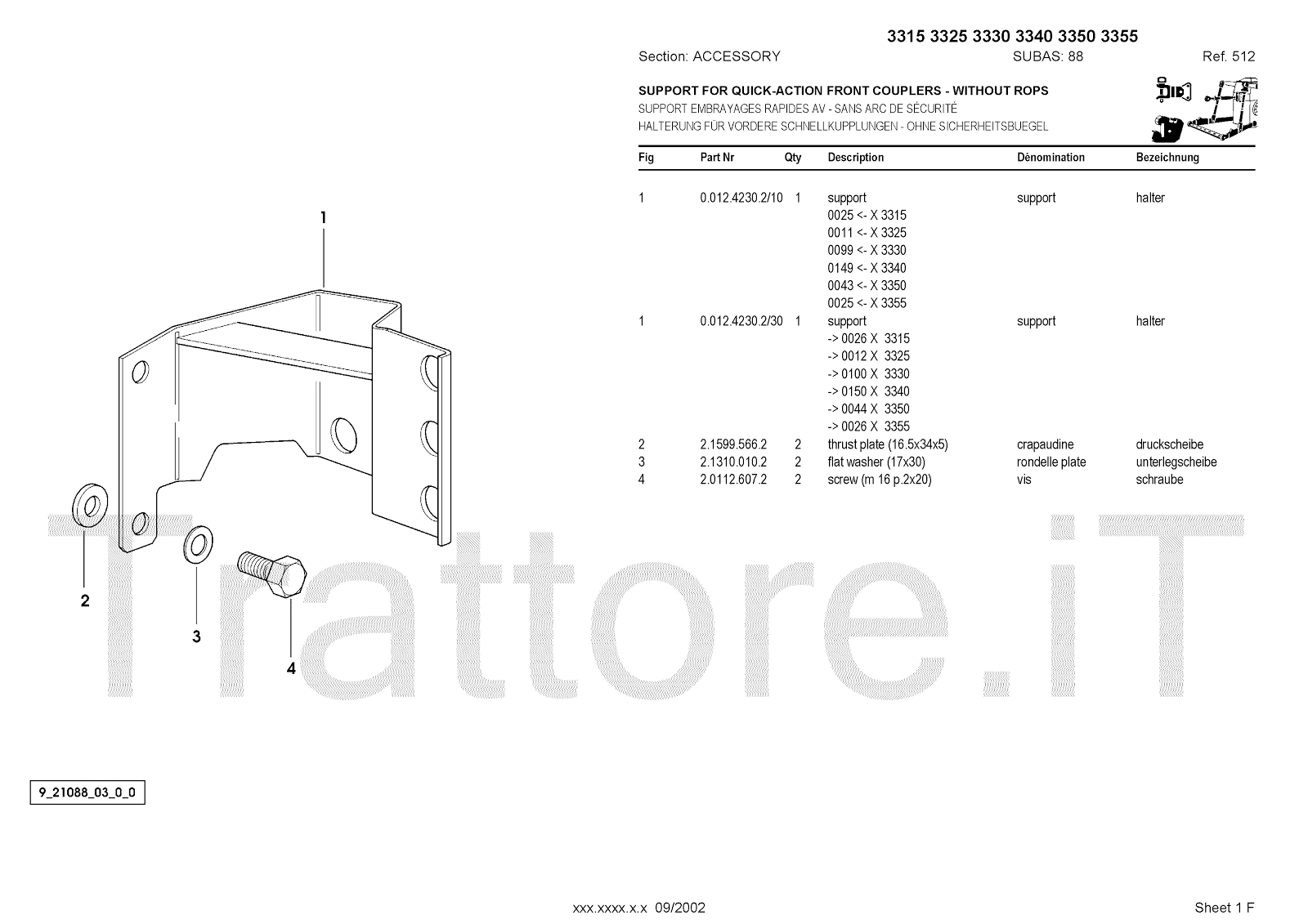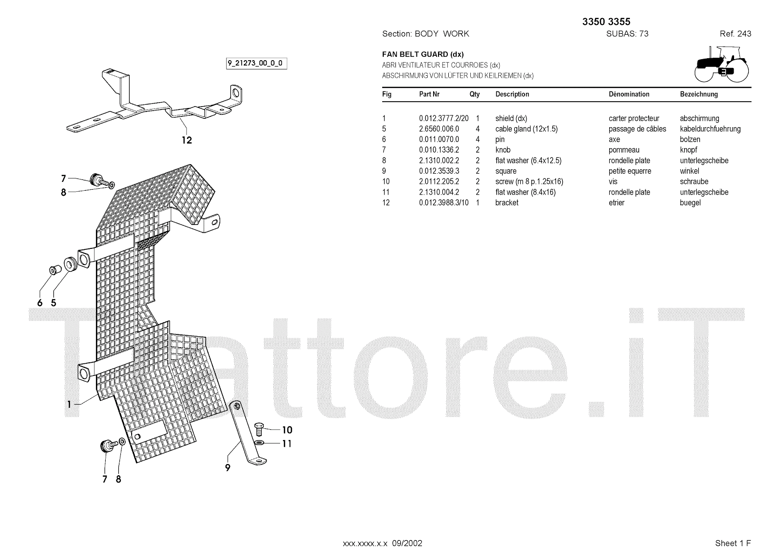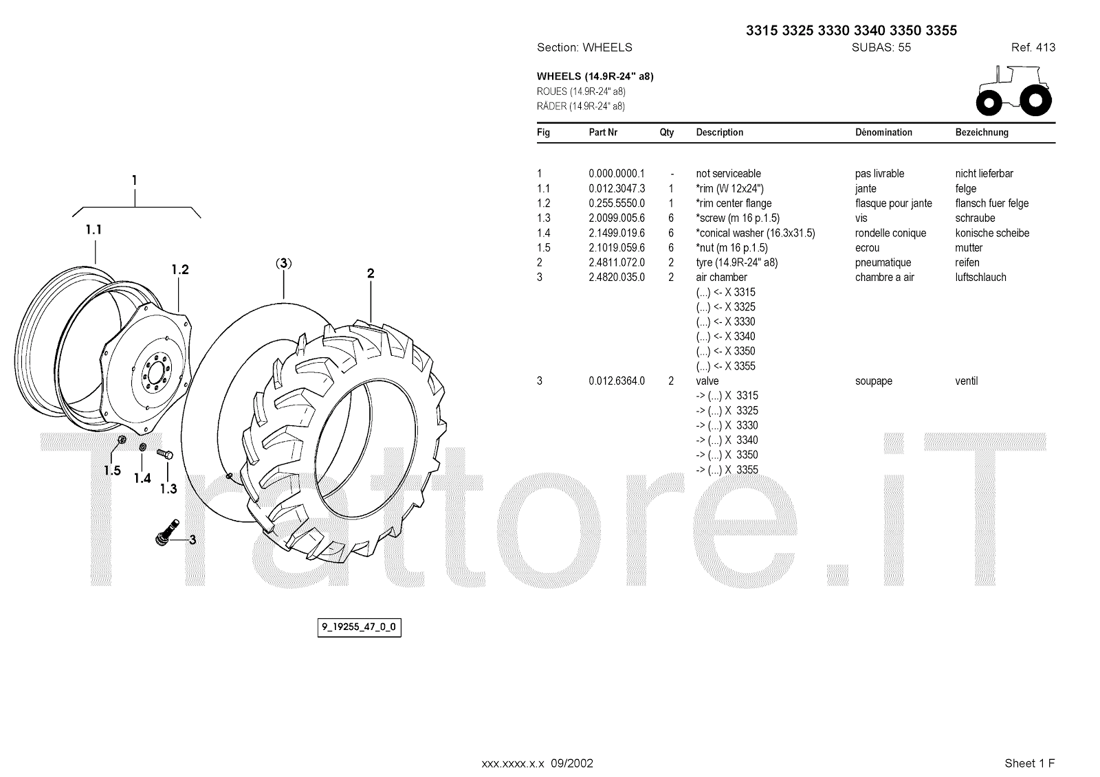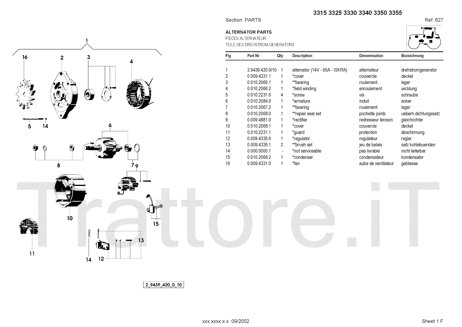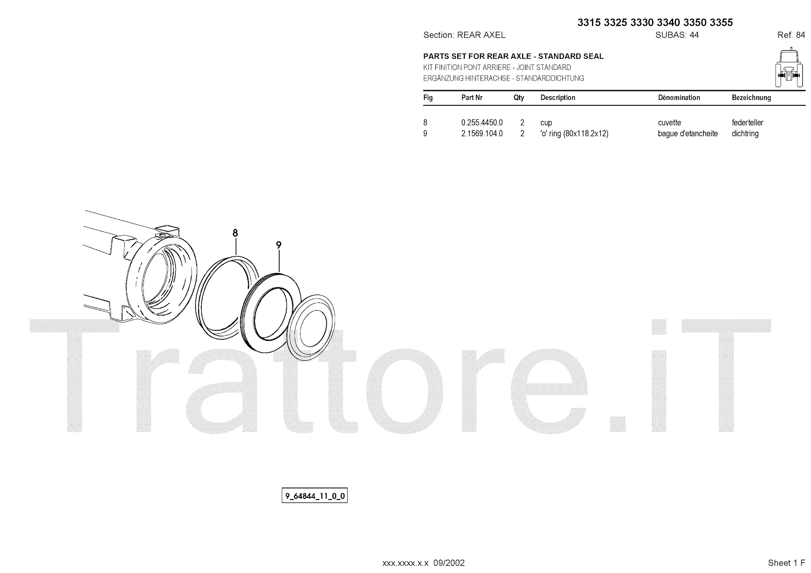 Manuale (esploso meccanico) per trattore / trattrice Massey Ferguson 3325