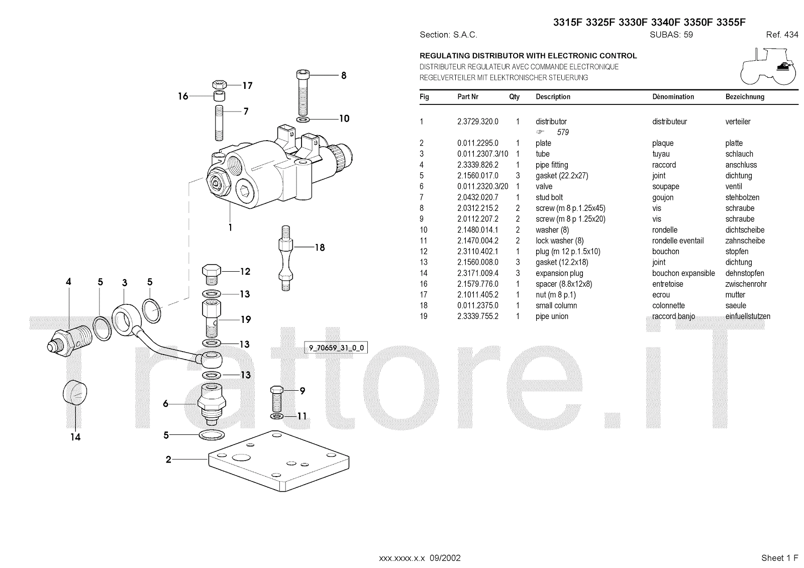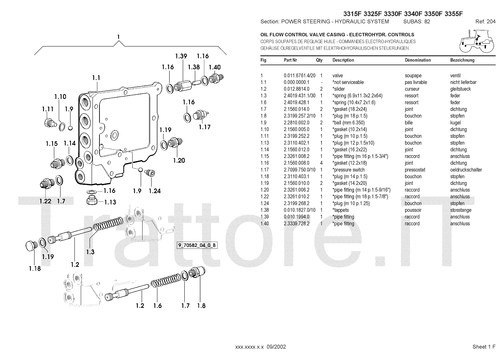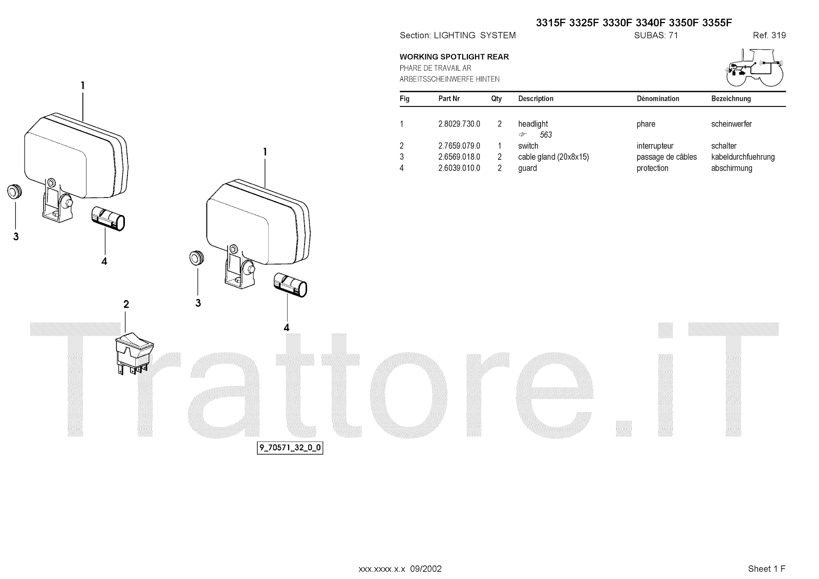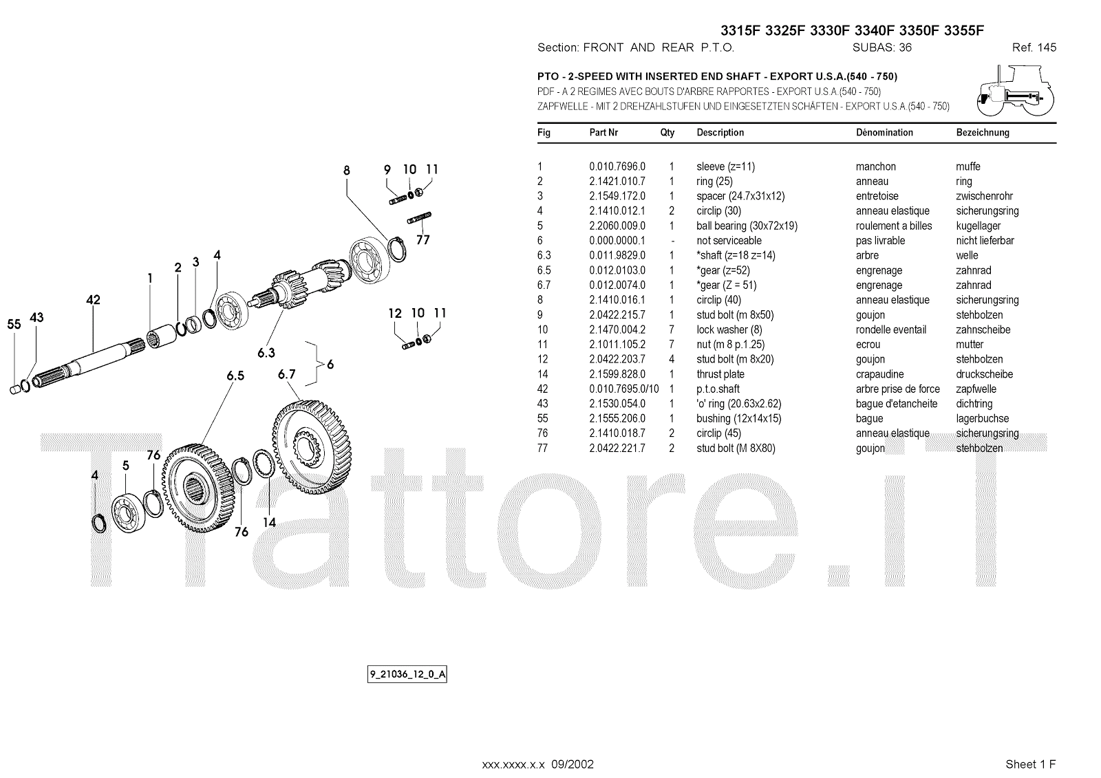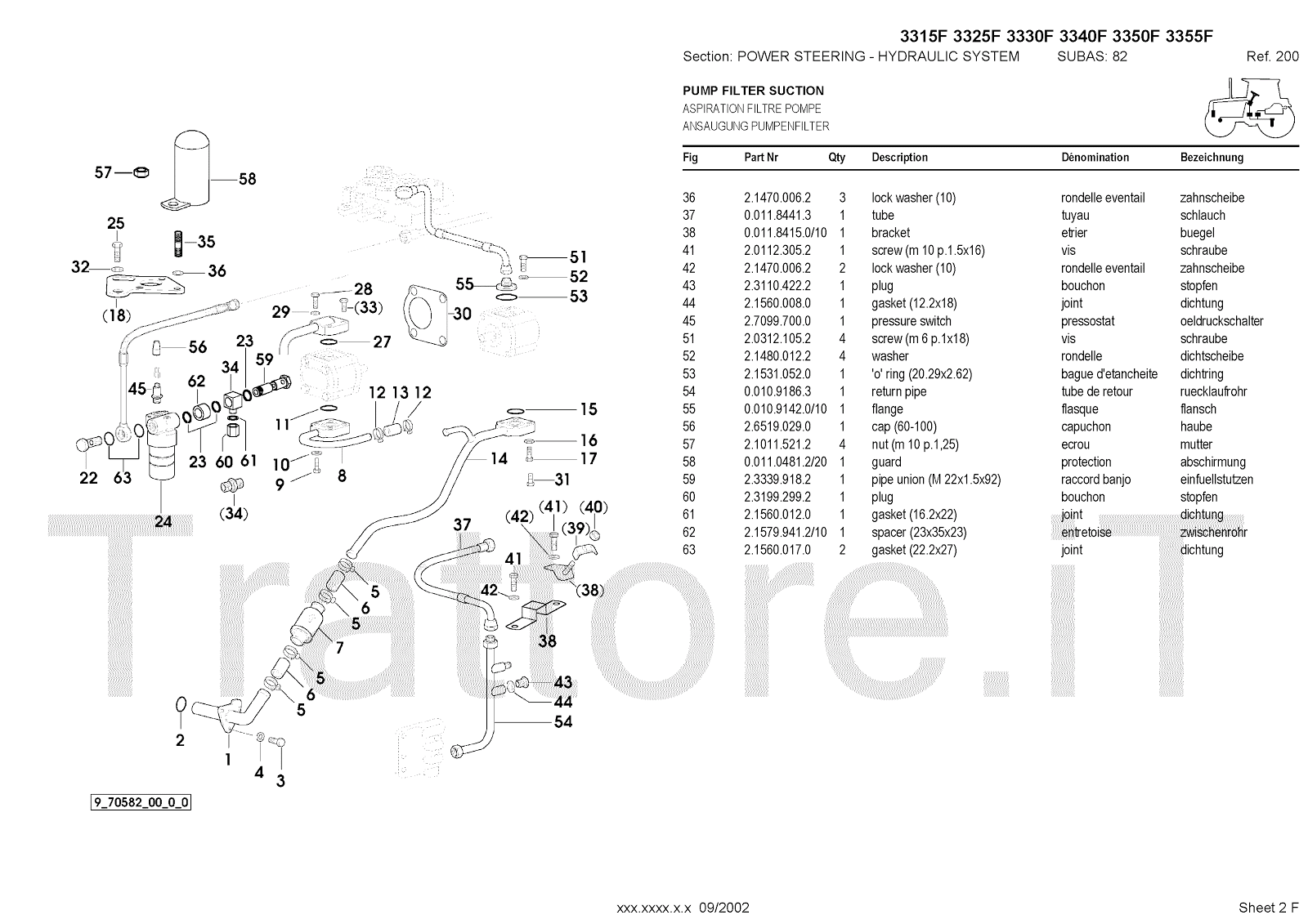 Manuale (esploso meccanico) per trattore / trattrice Massey Ferguson 3355F