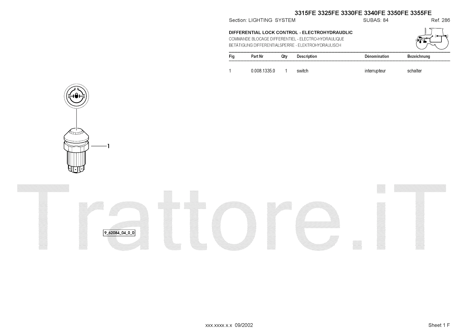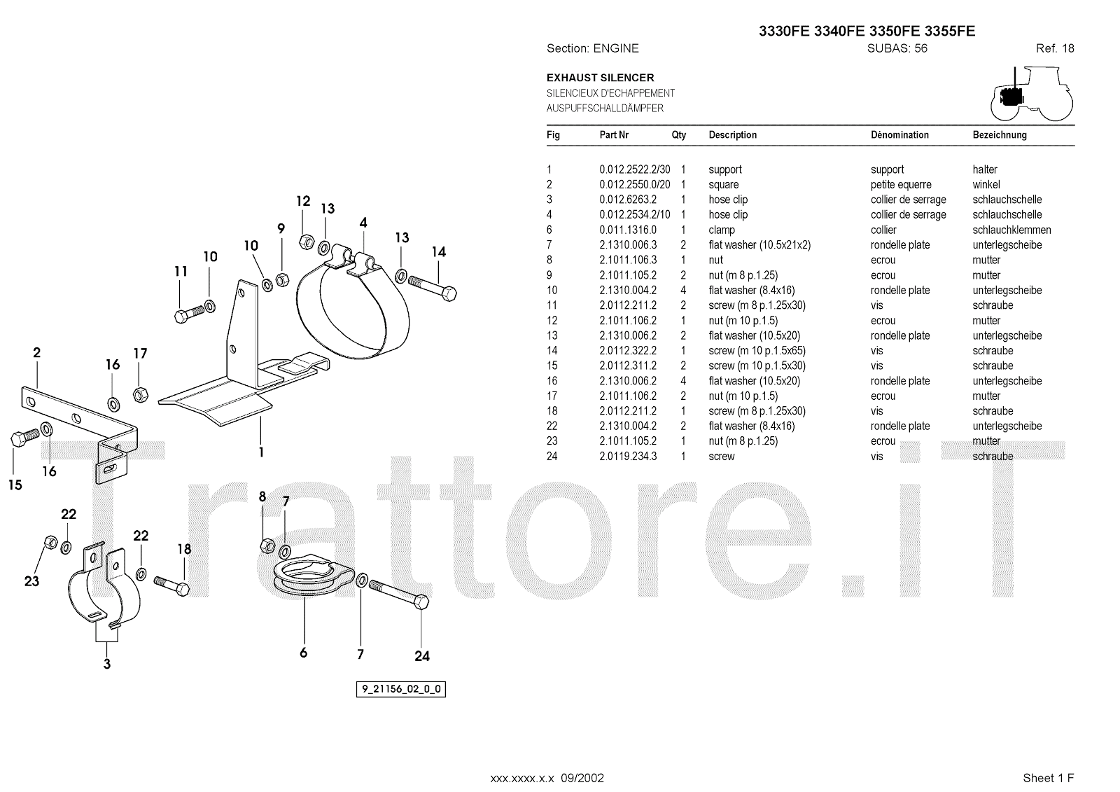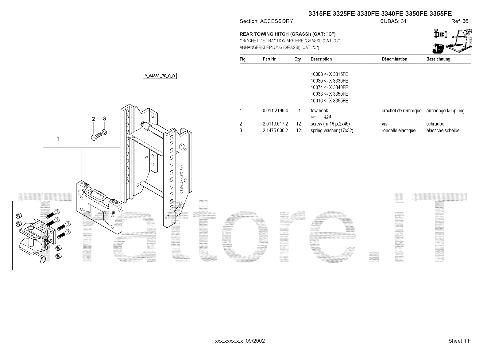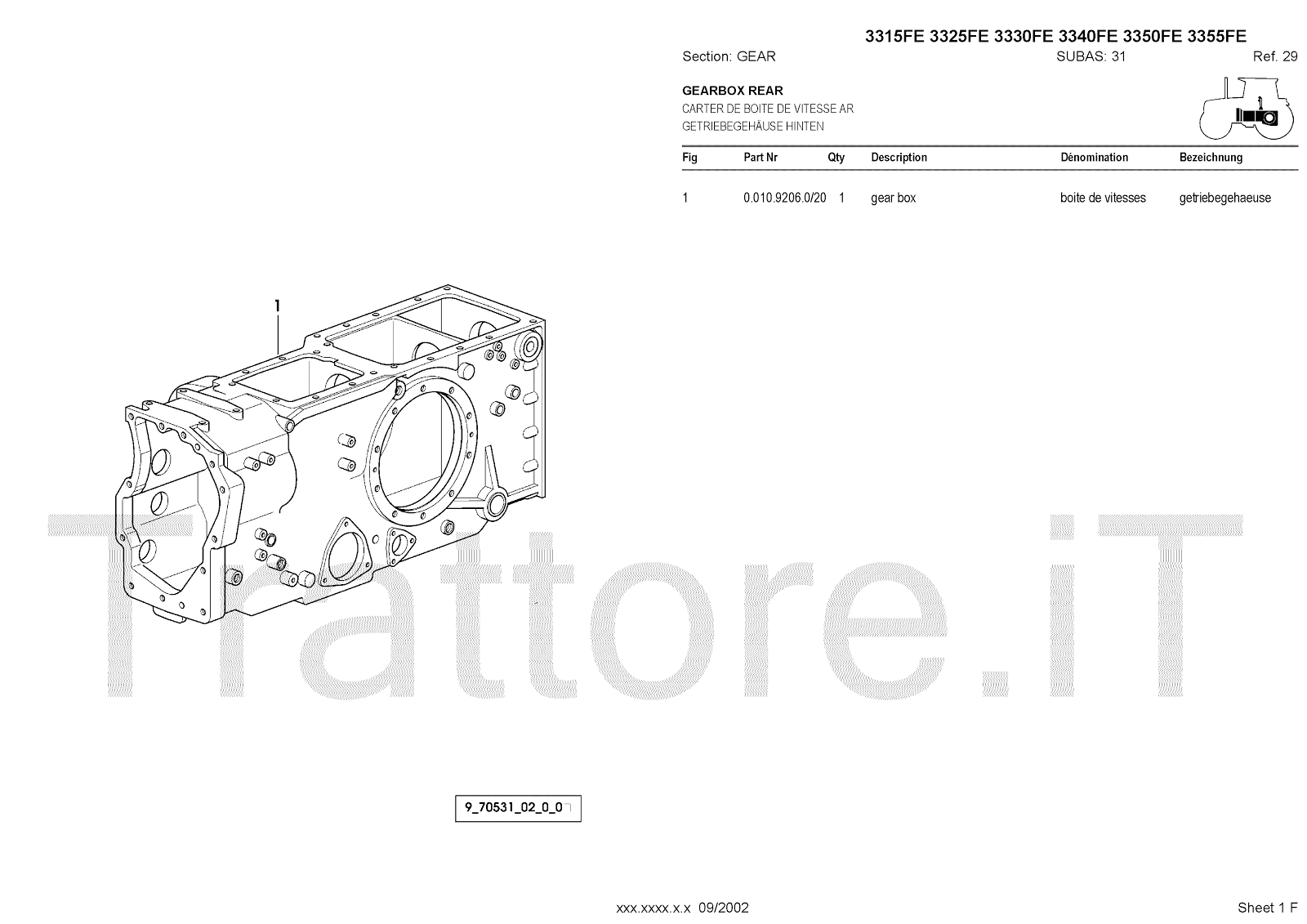 Manuale (esploso meccanico) per trattore / trattrice Massey Ferguson 3340FE