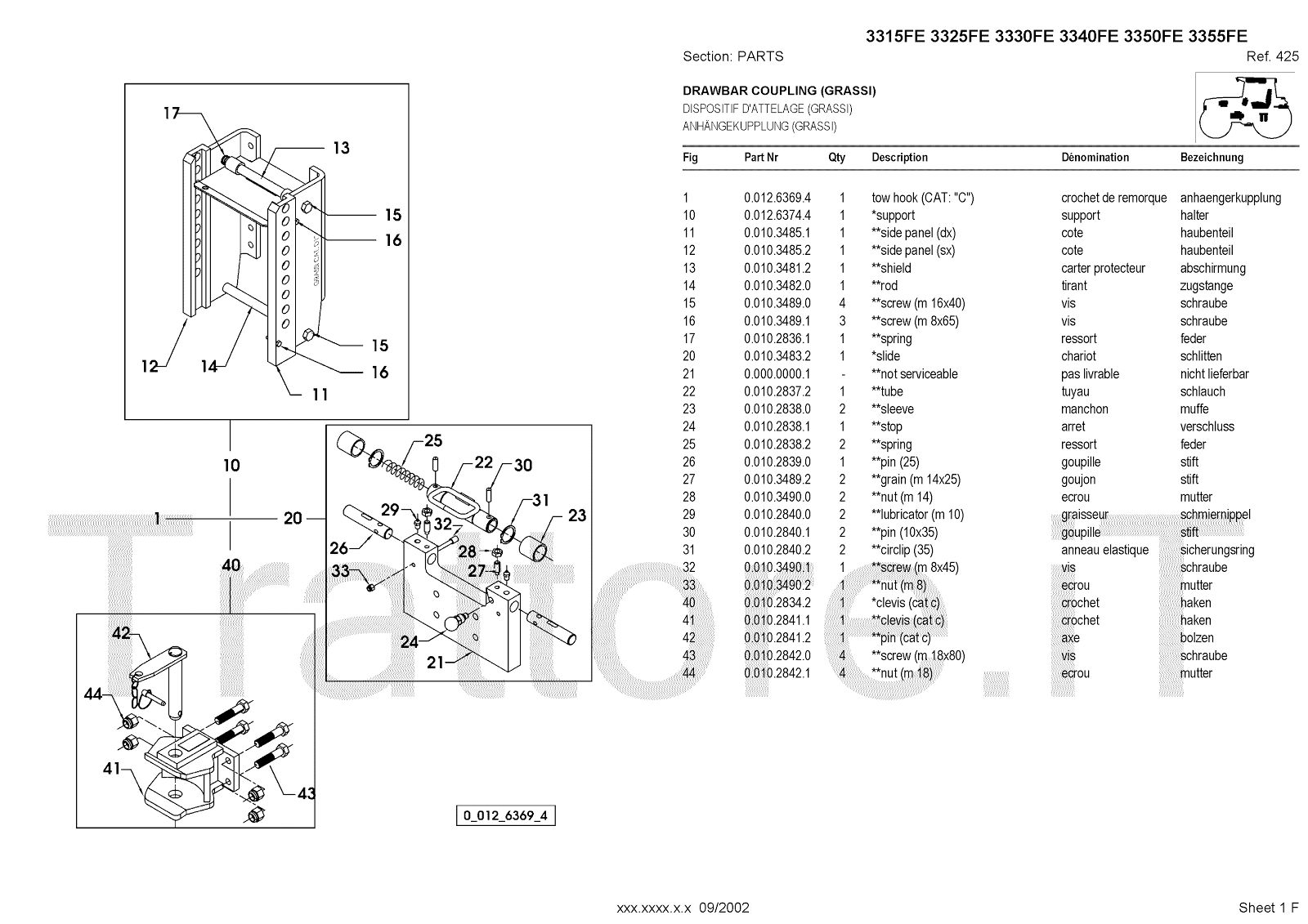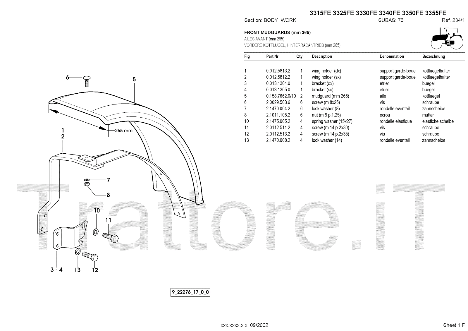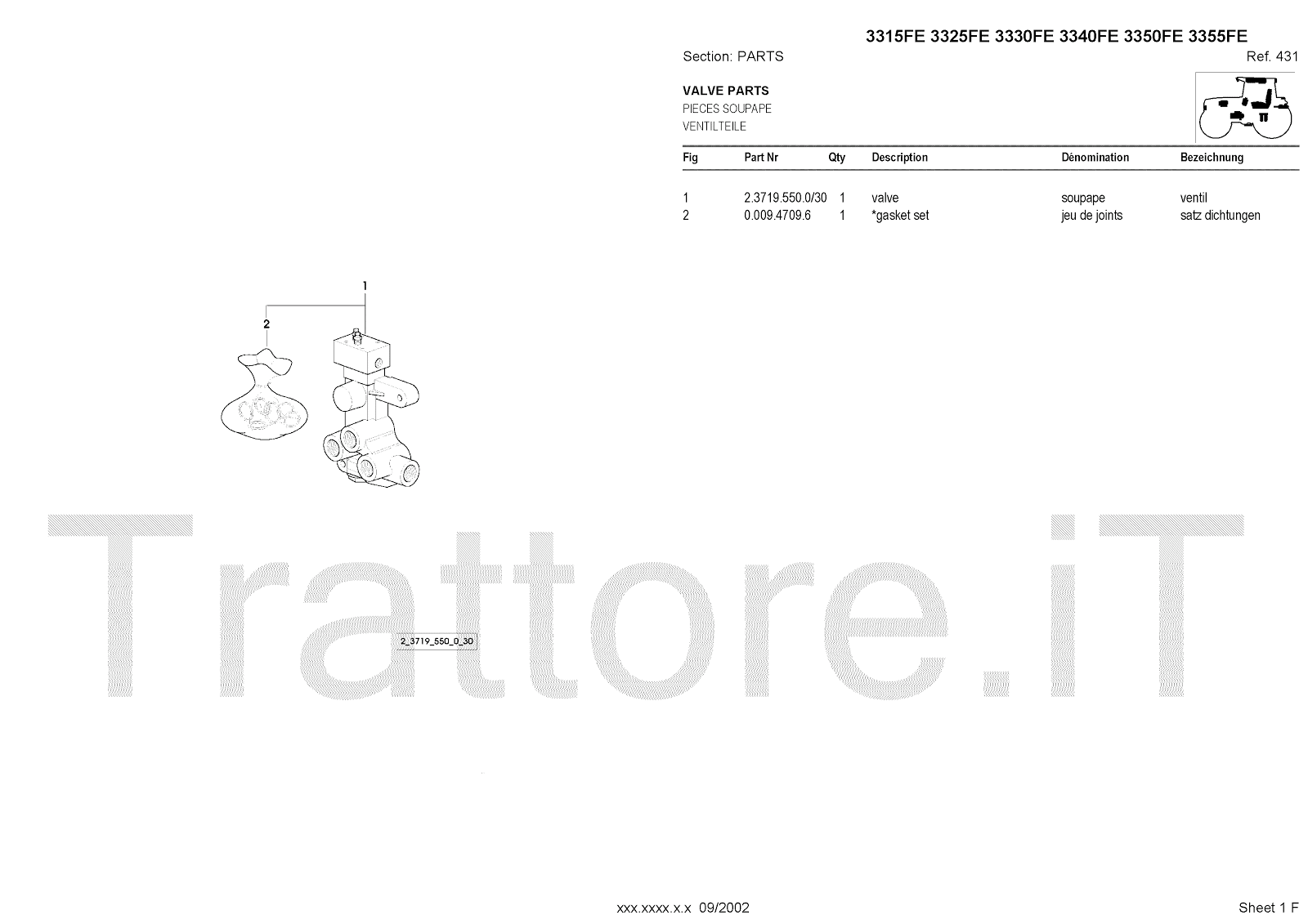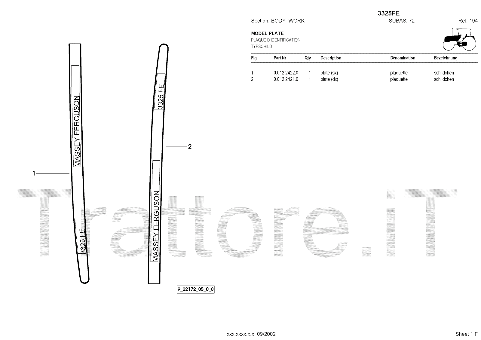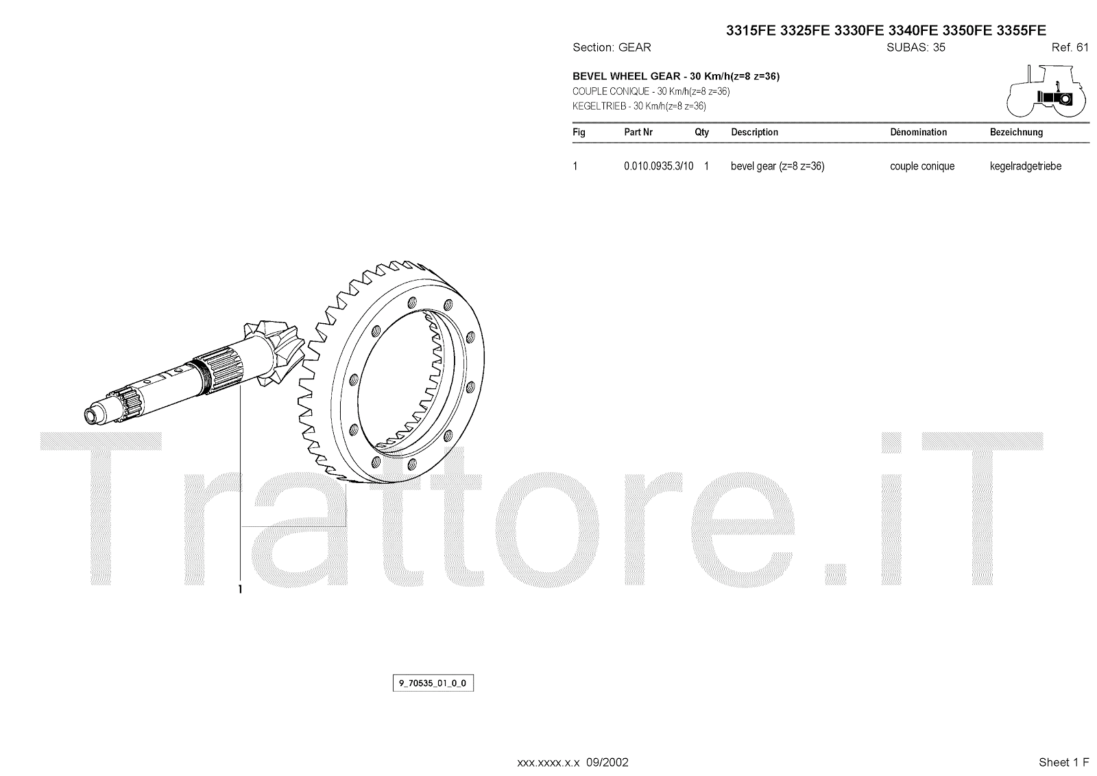 Manuale (esploso meccanico) per trattore / trattrice Massey Ferguson 3340FE