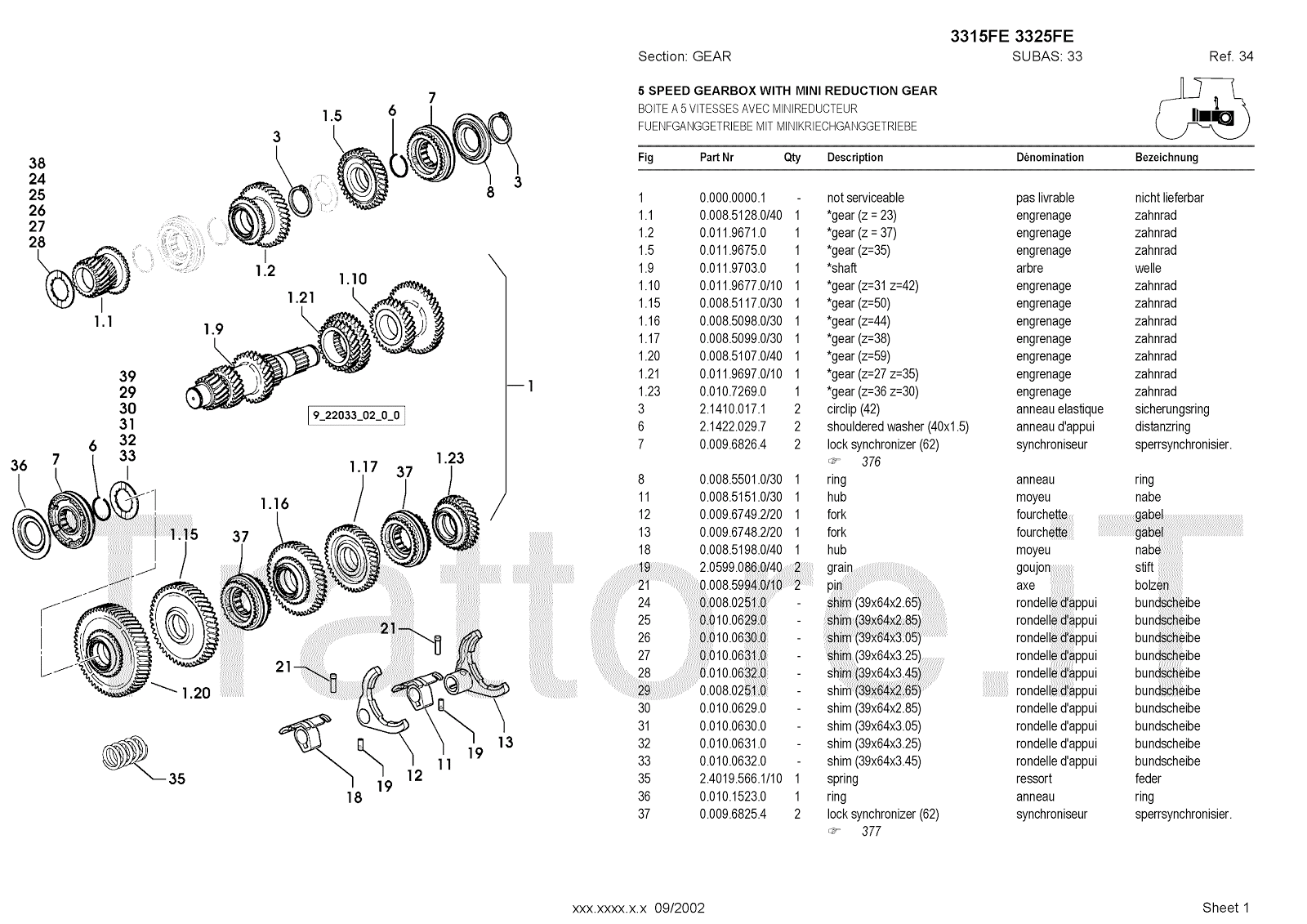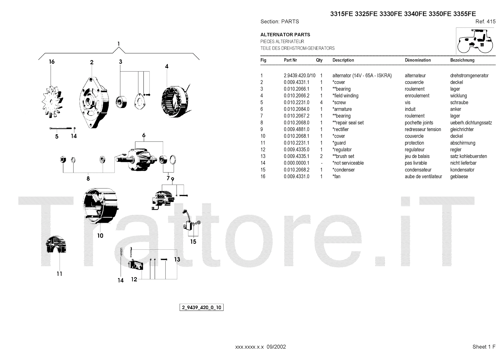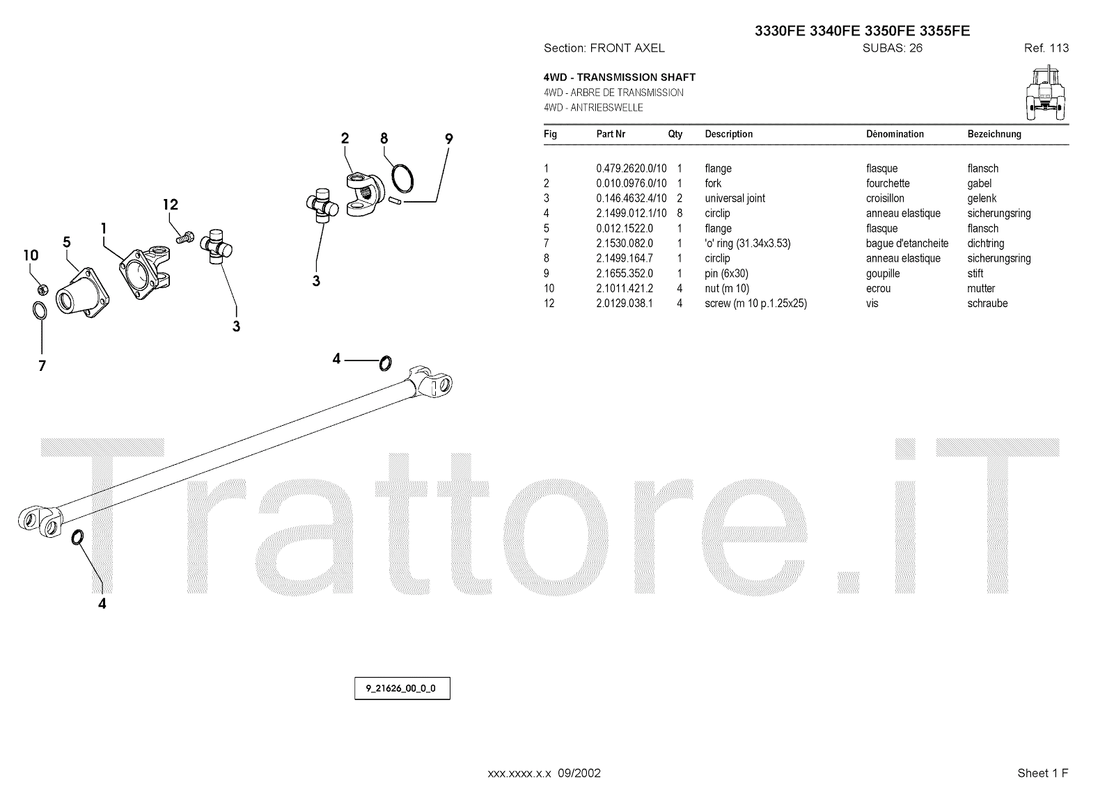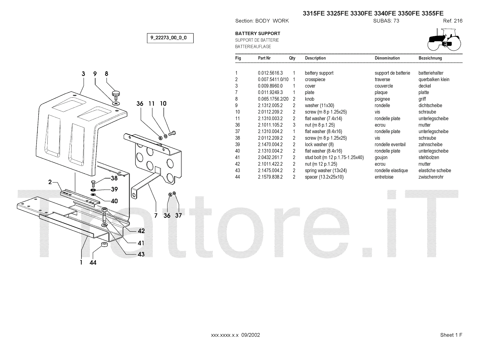 Manuale (esploso meccanico) per trattore / trattrice Massey Ferguson 3340FE