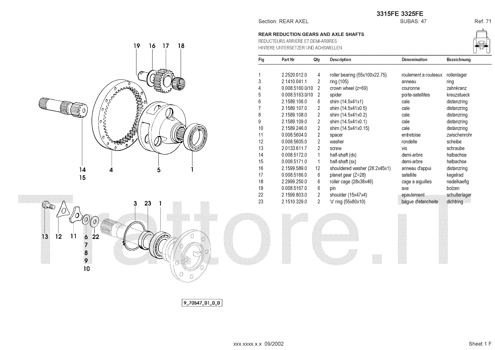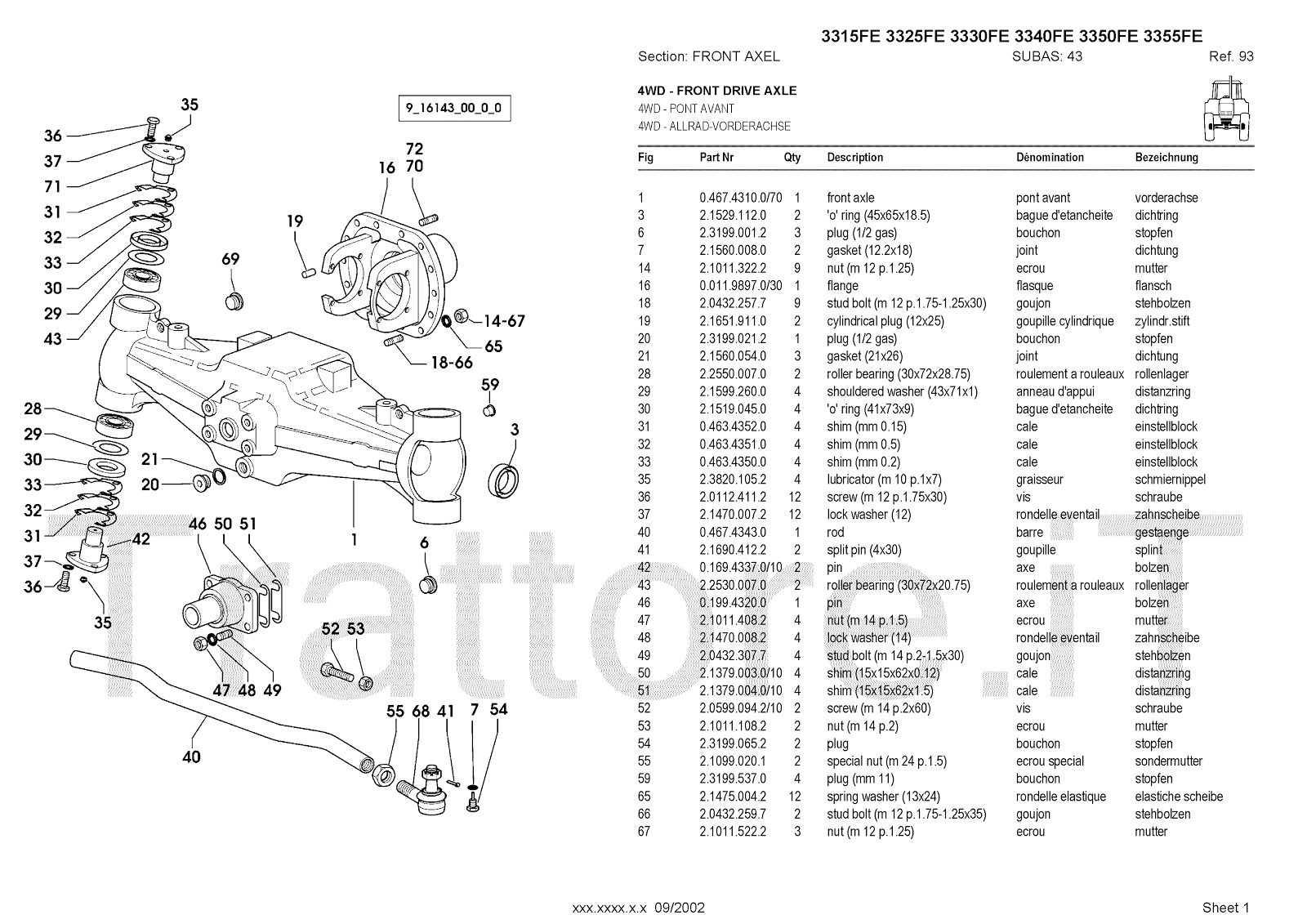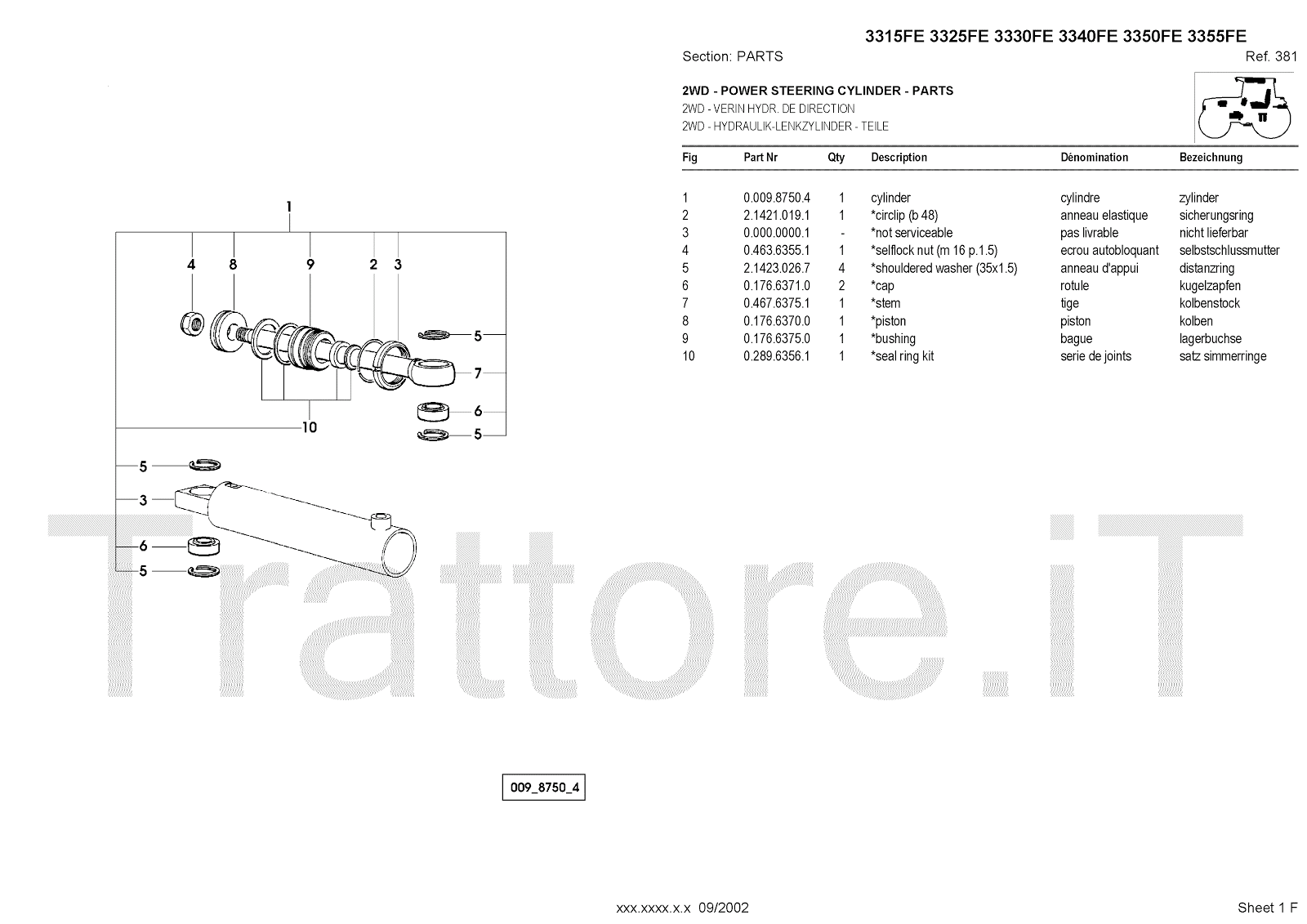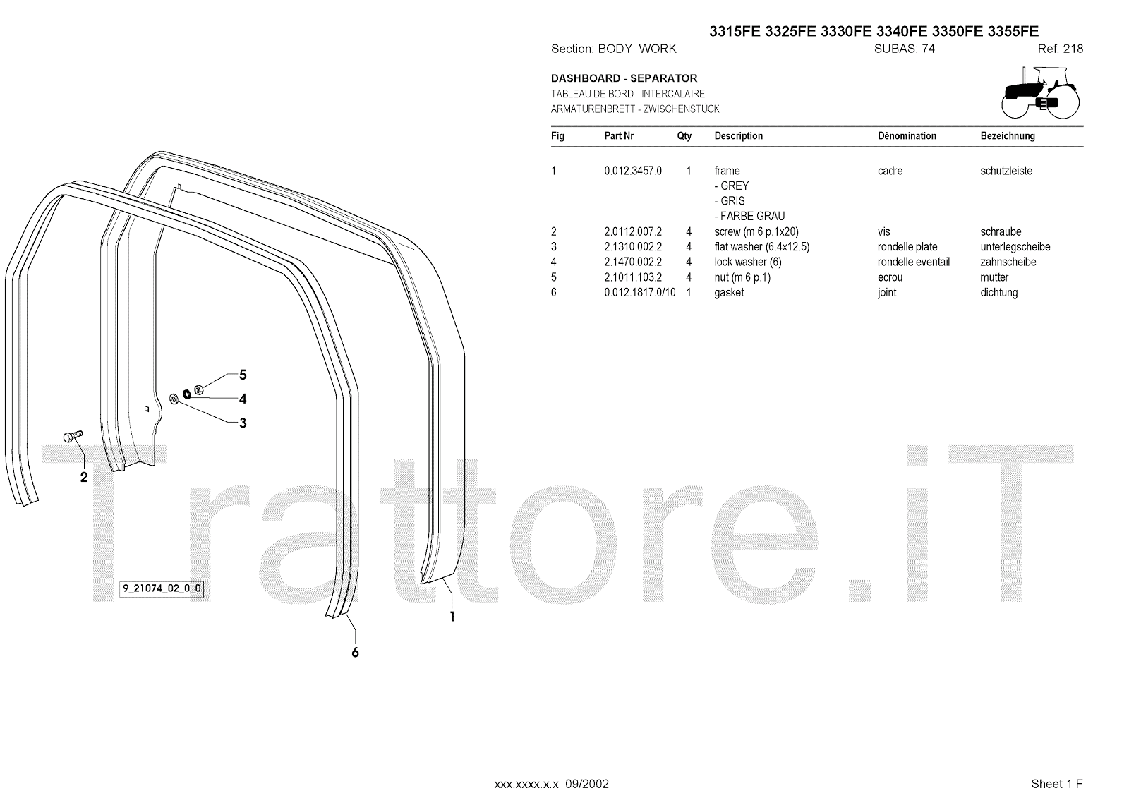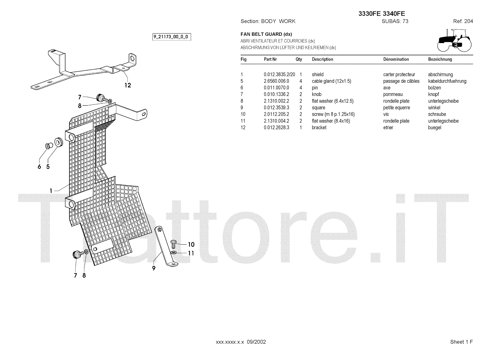 Manuale (esploso meccanico) per trattore / trattrice Massey Ferguson 3340FE
