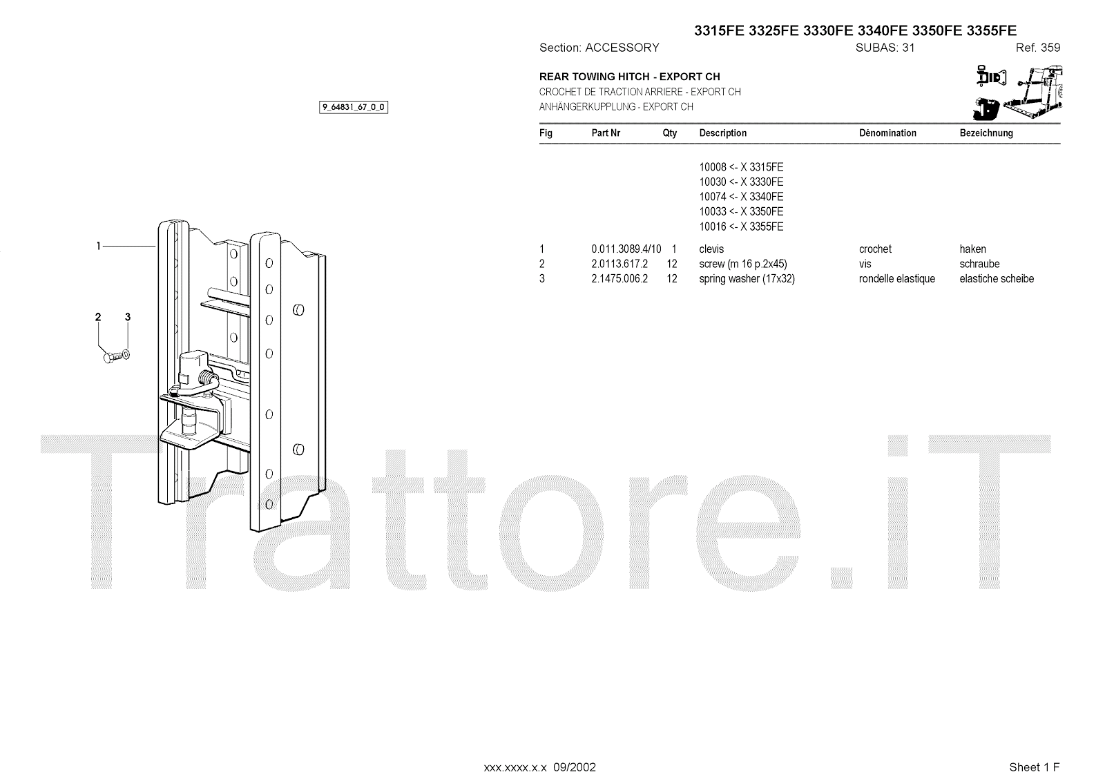 Manuale (esploso meccanico) per trattore / trattrice Massey Ferguson 3350FE