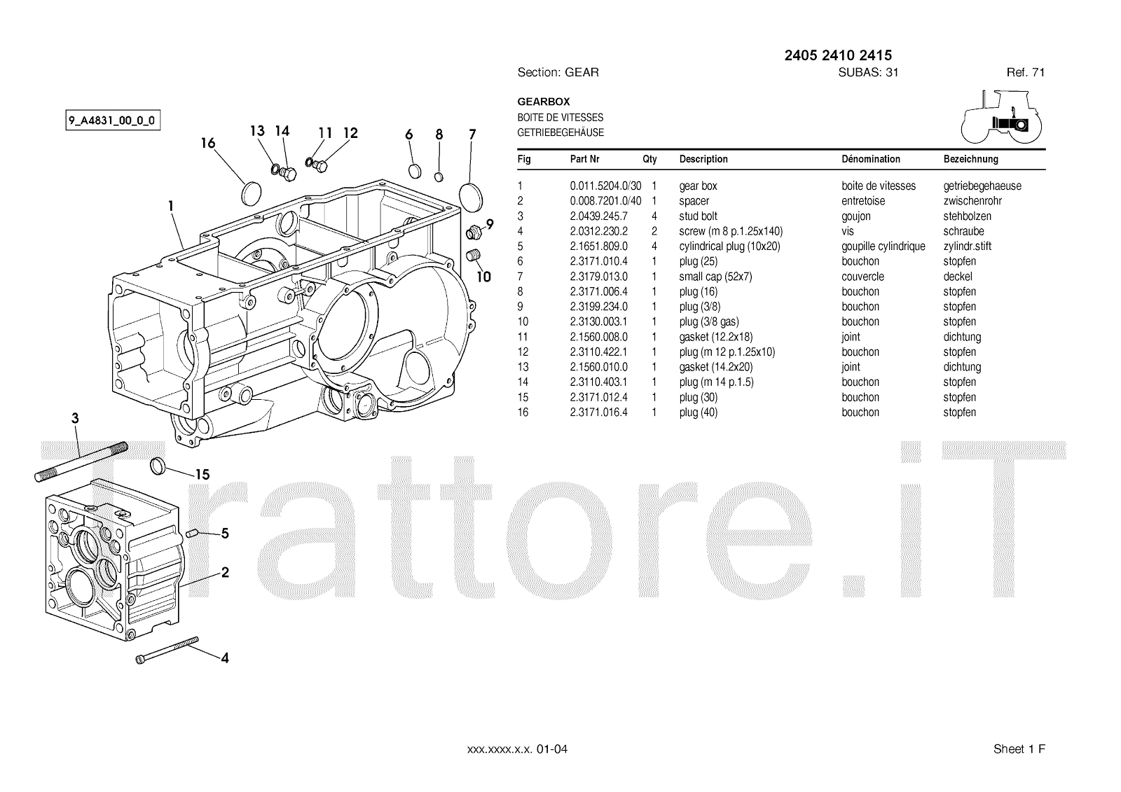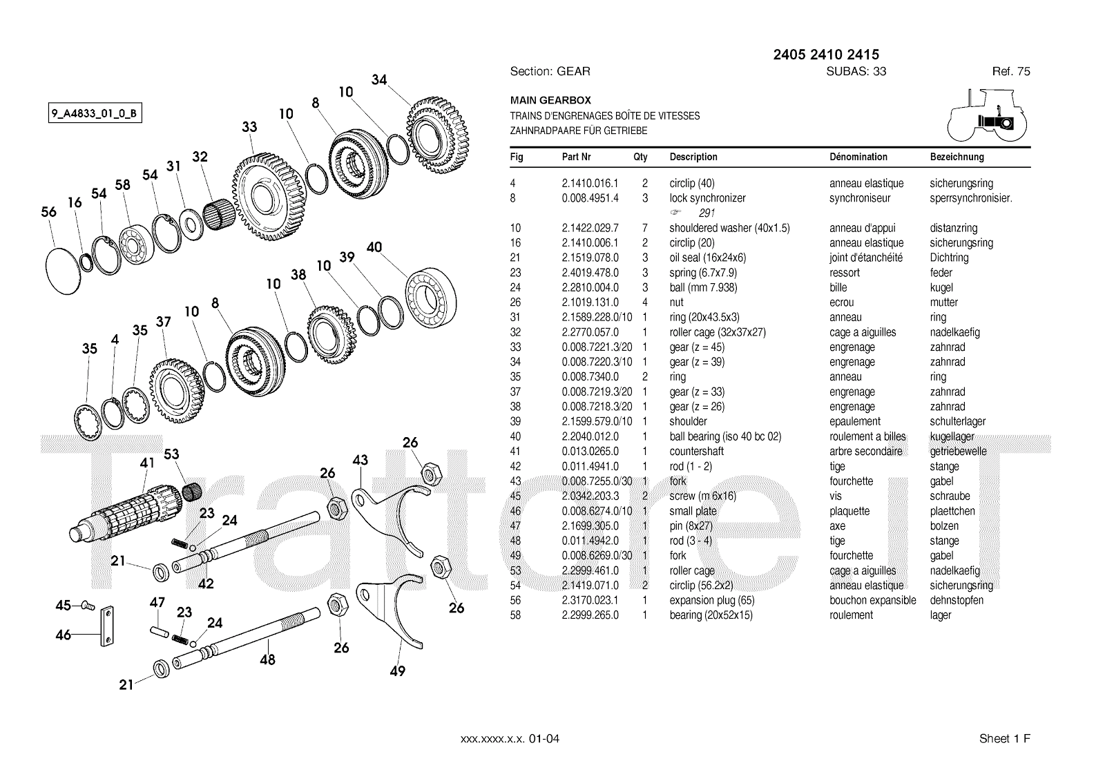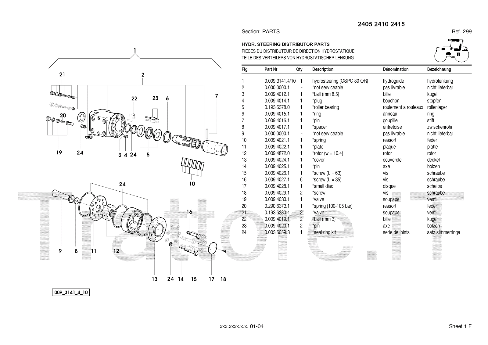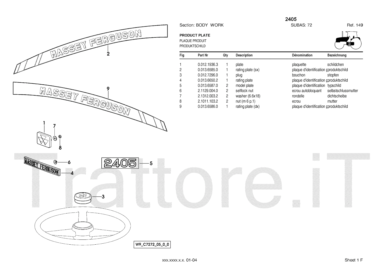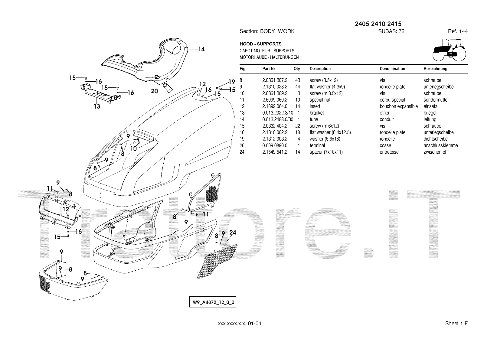 Manuale (esploso meccanico) per trattore / trattrice Massey Ferguson 2405