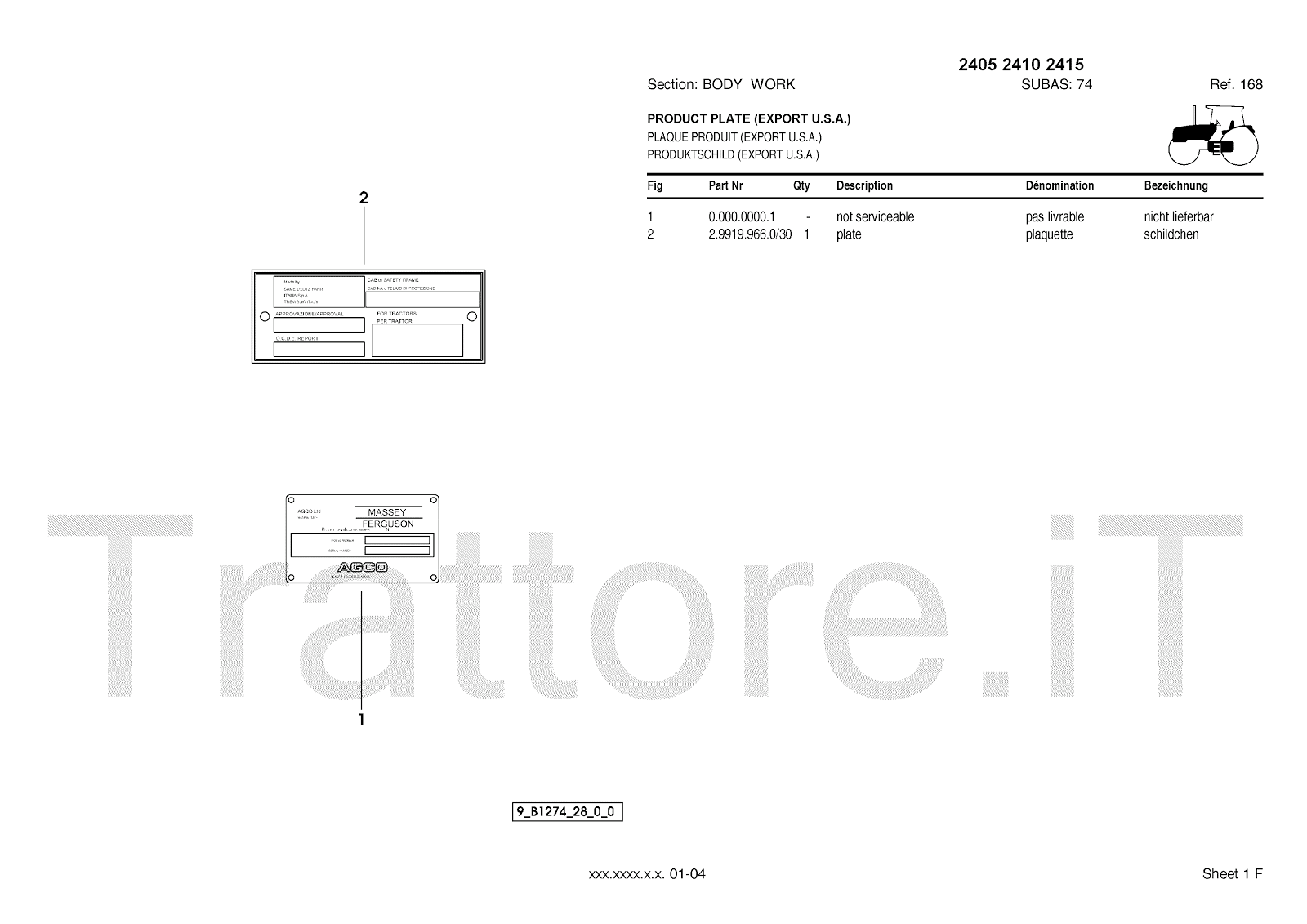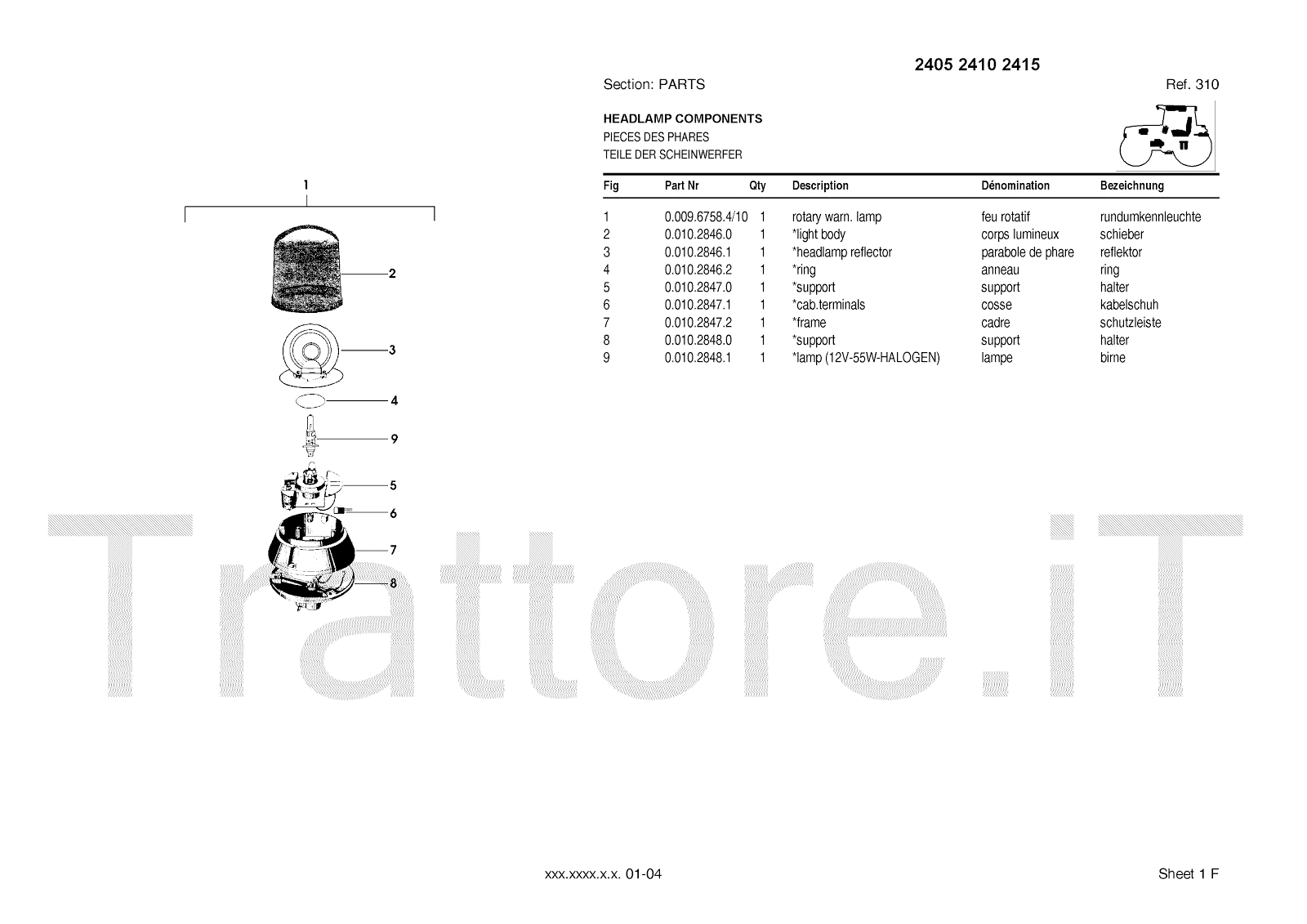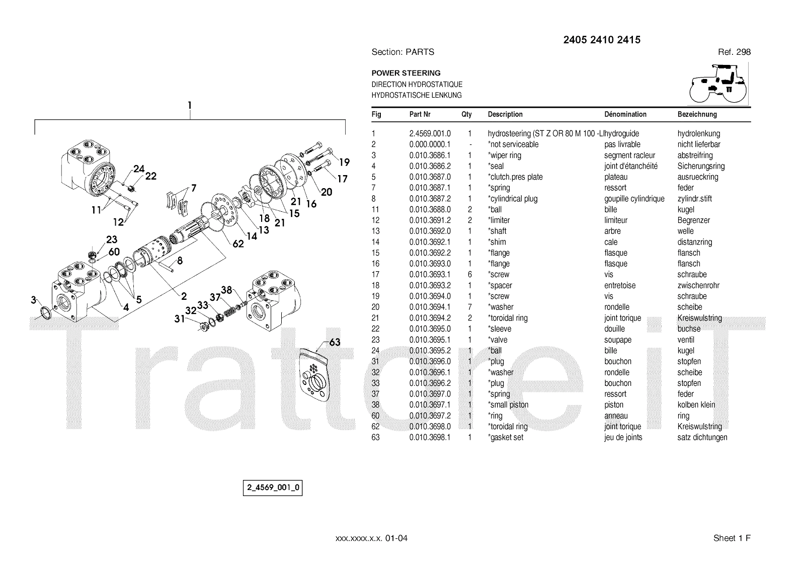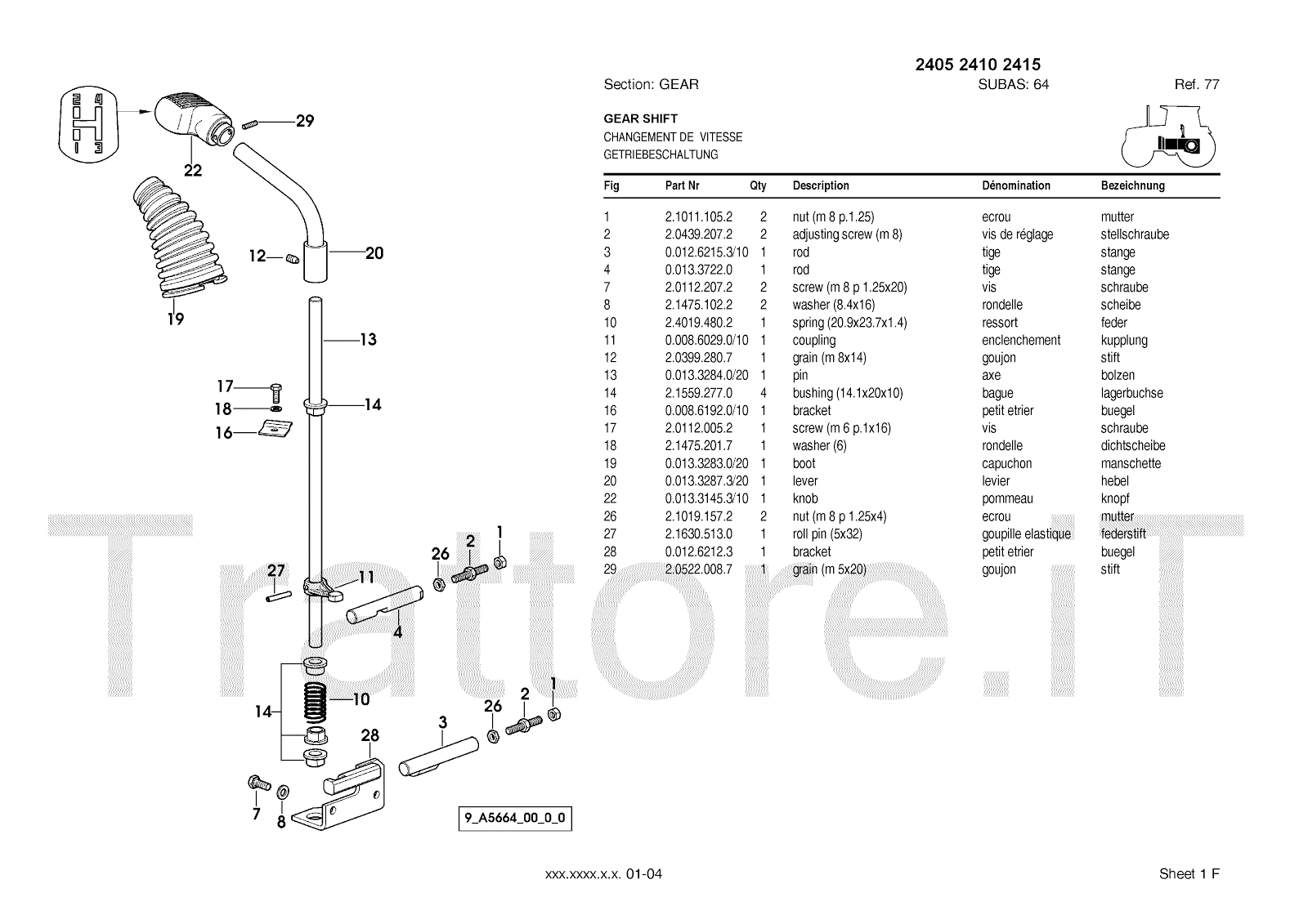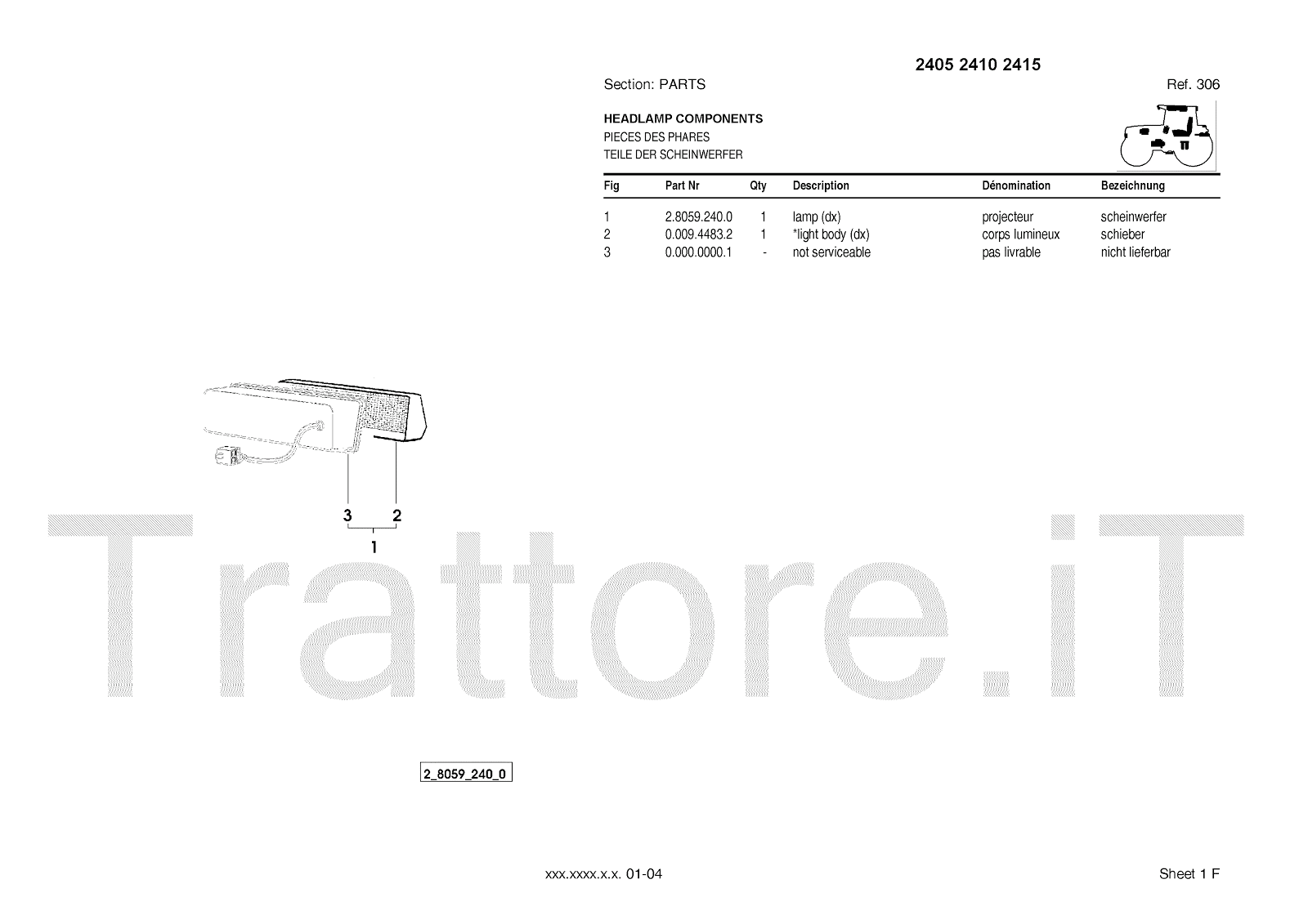 Manuale (esploso meccanico) per trattore / trattrice Massey Ferguson 2405