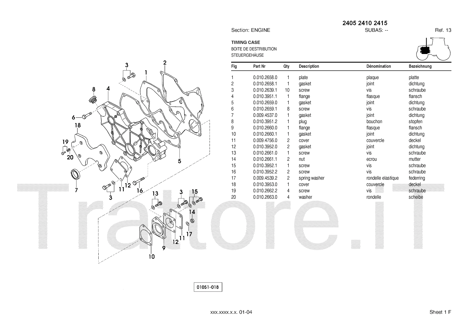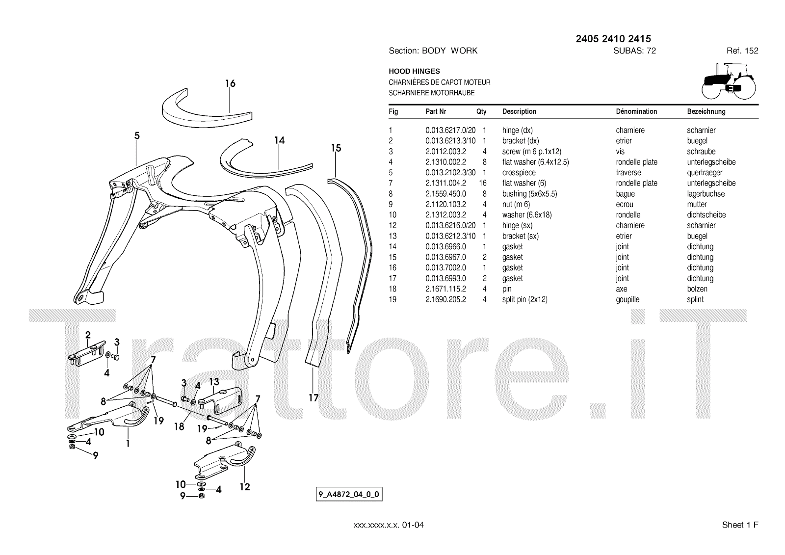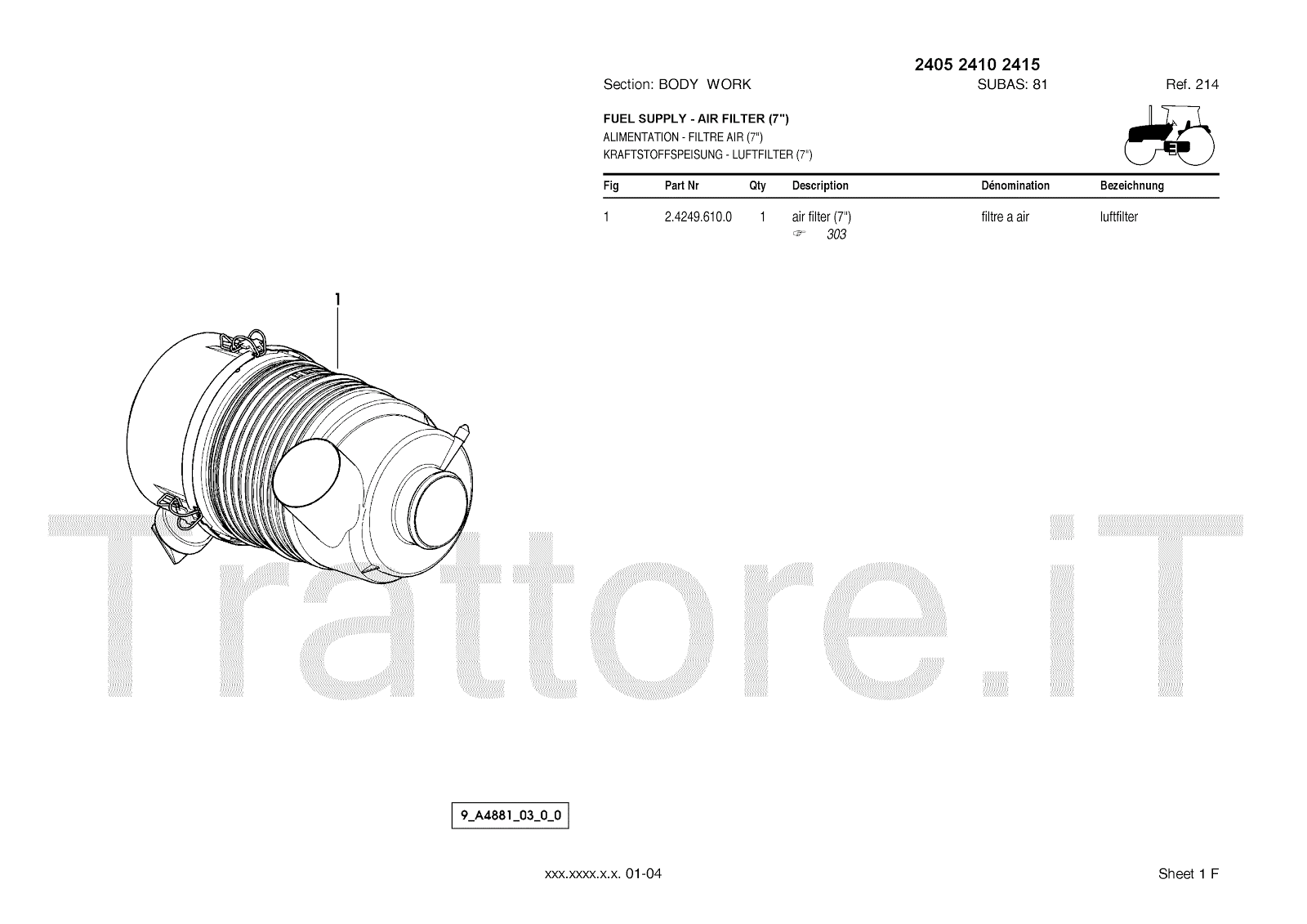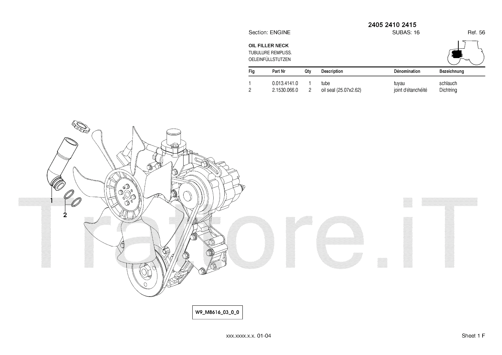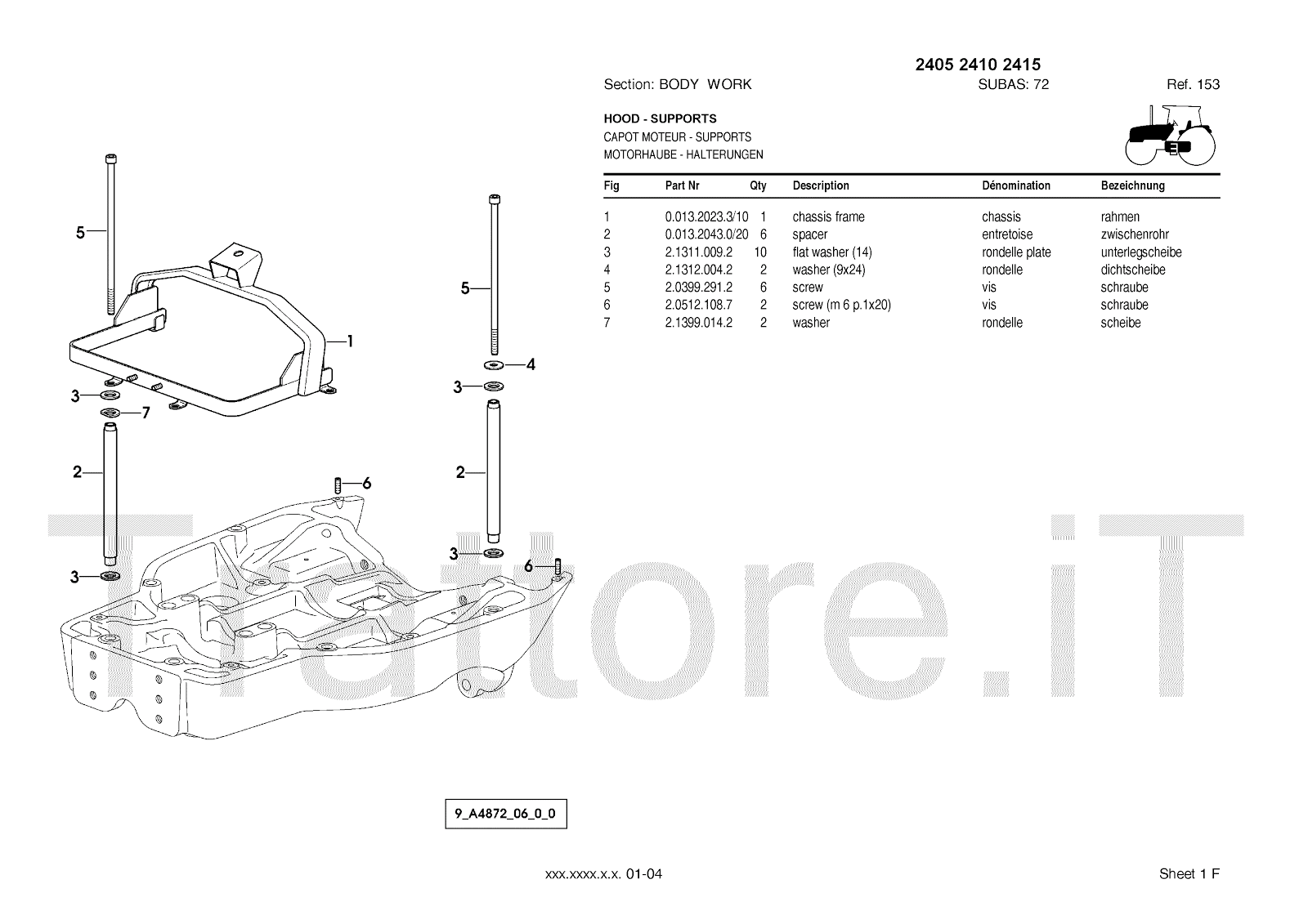 Manuale (esploso meccanico) per trattore / trattrice Massey Ferguson 2405