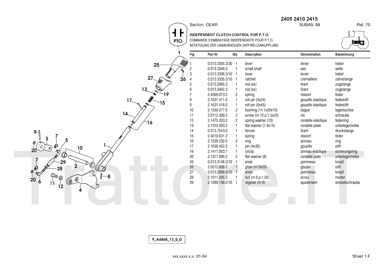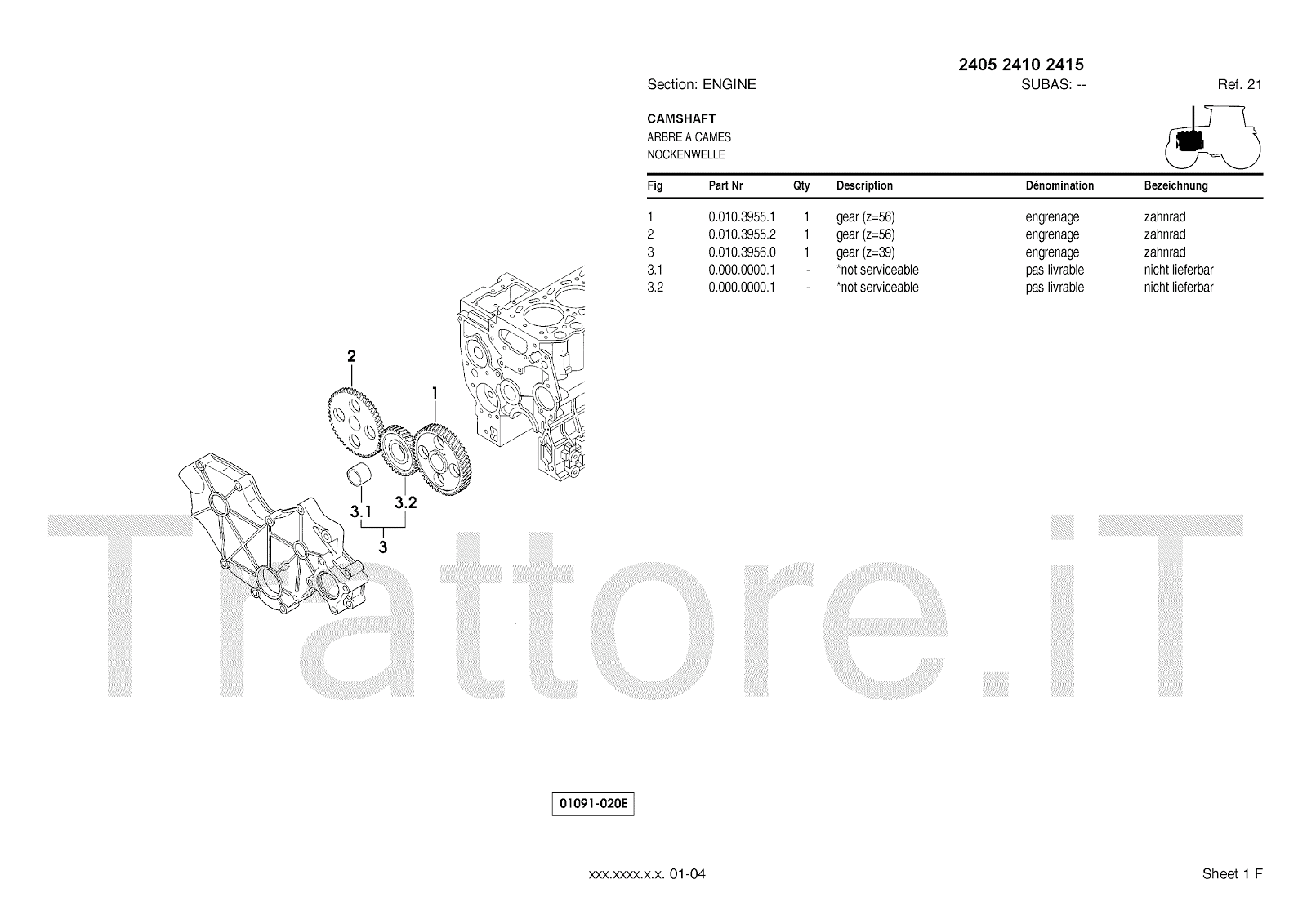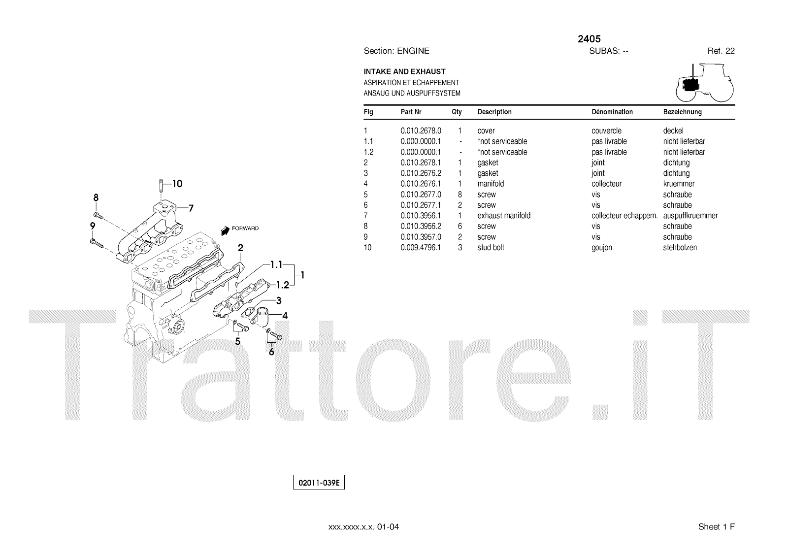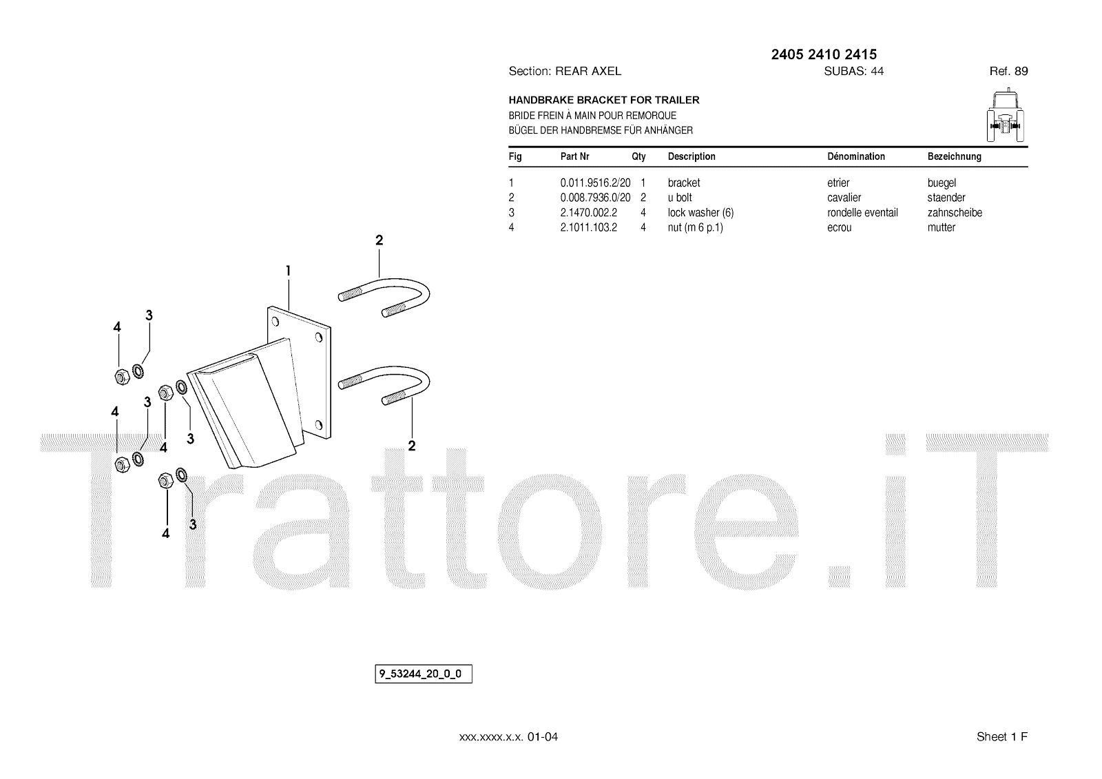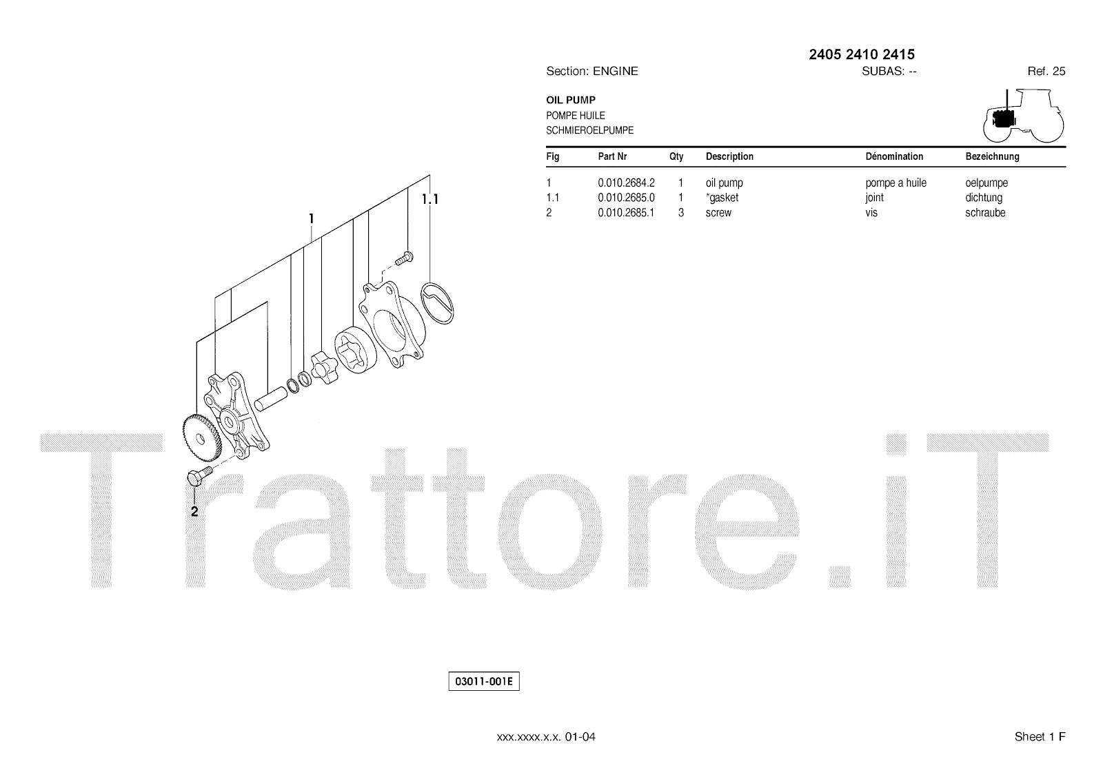 Manuale (esploso meccanico) per trattore / trattrice Massey Ferguson 2405