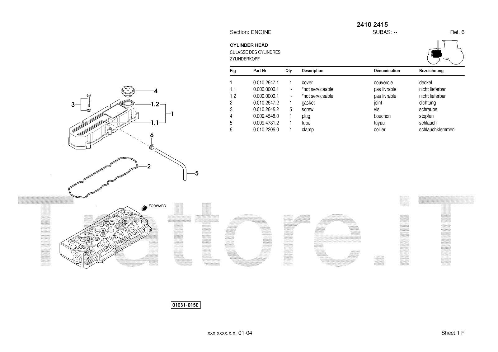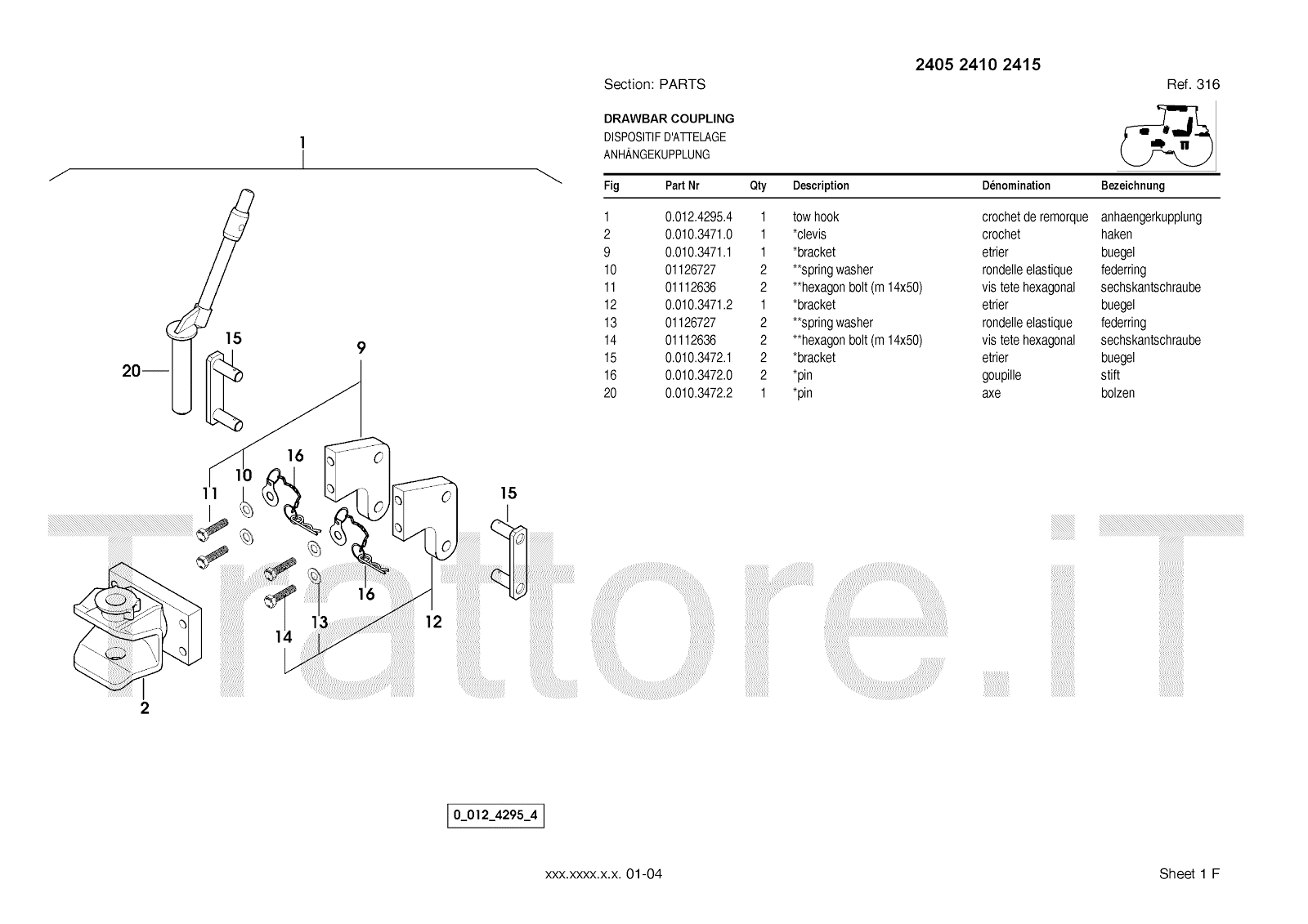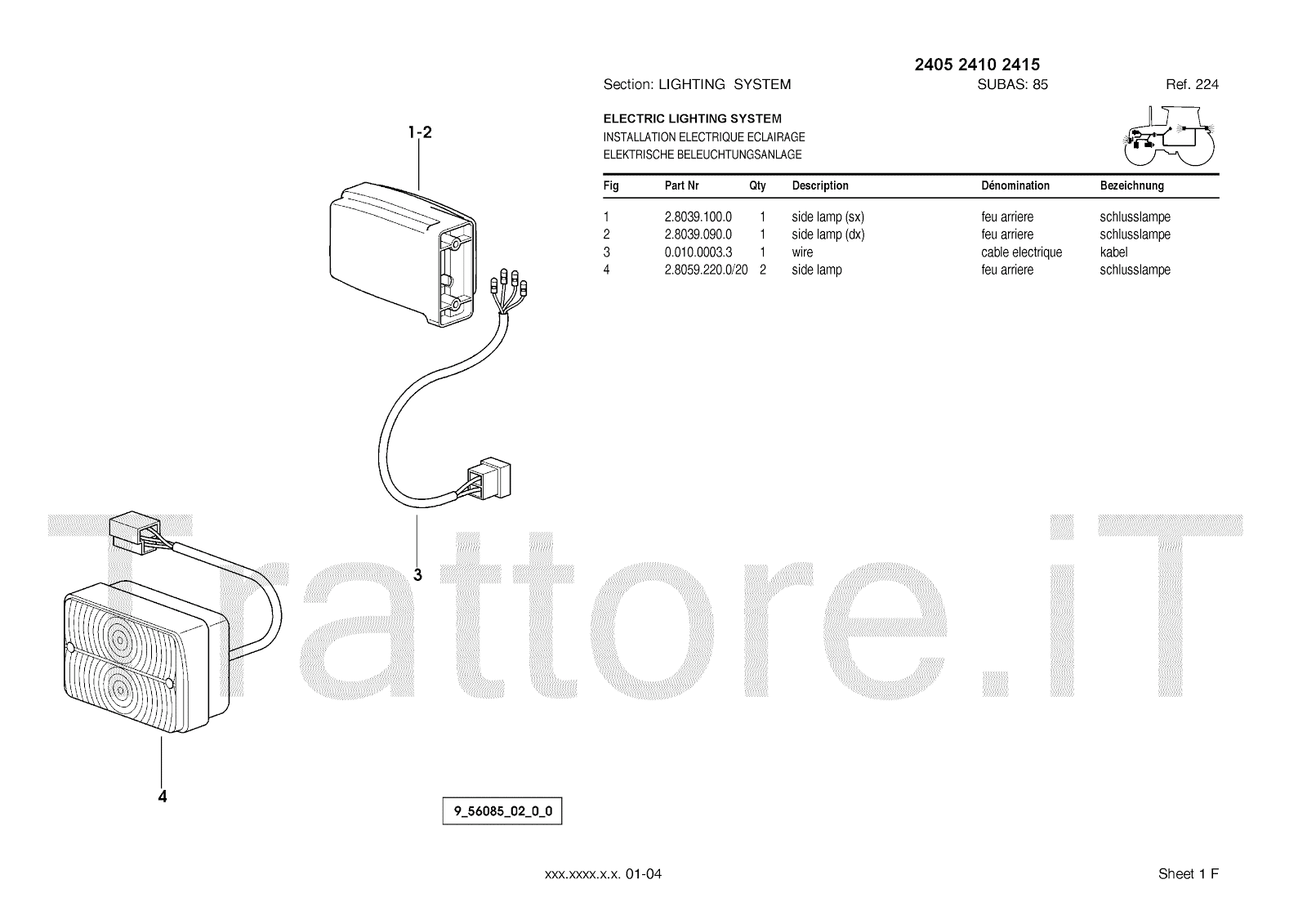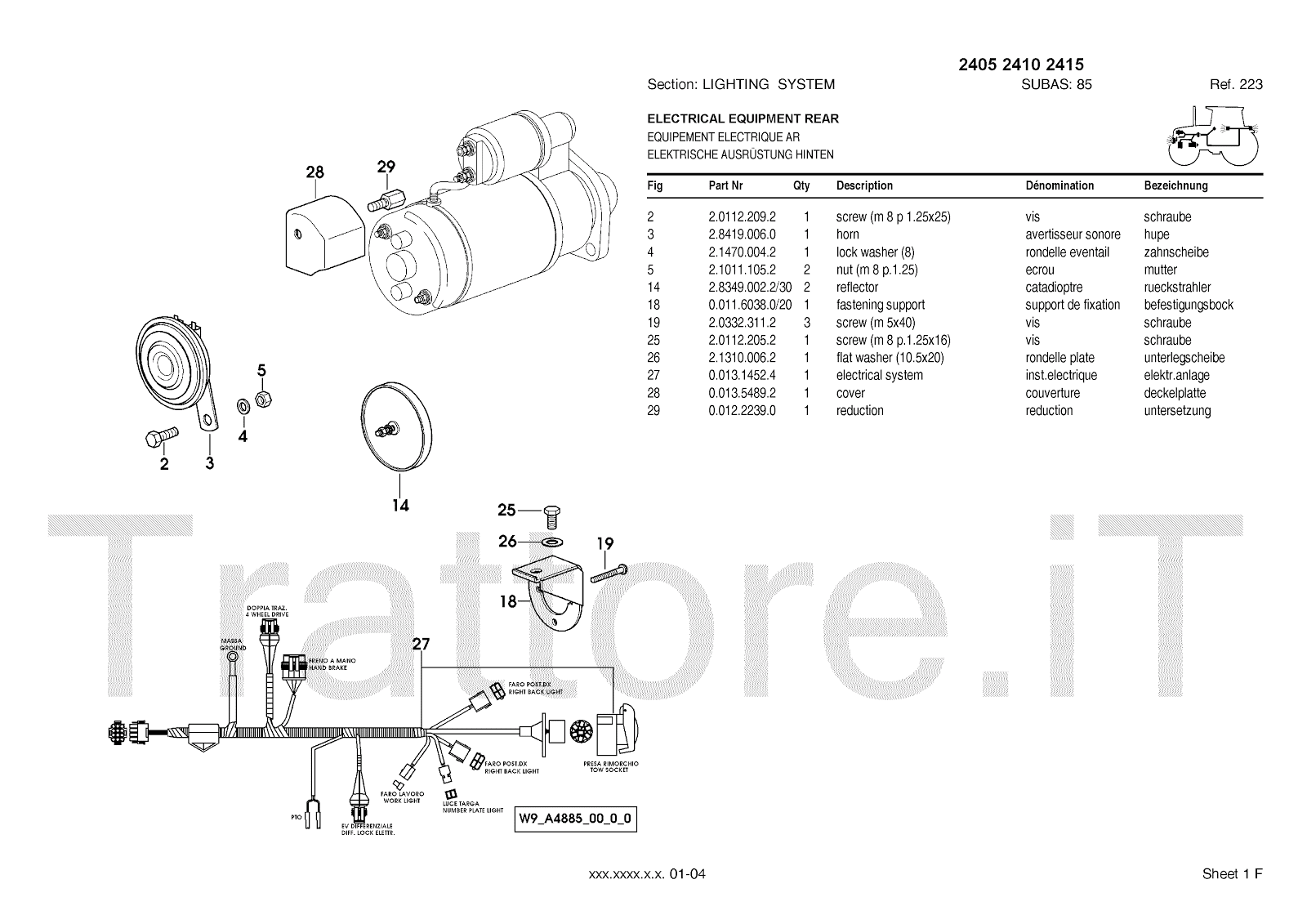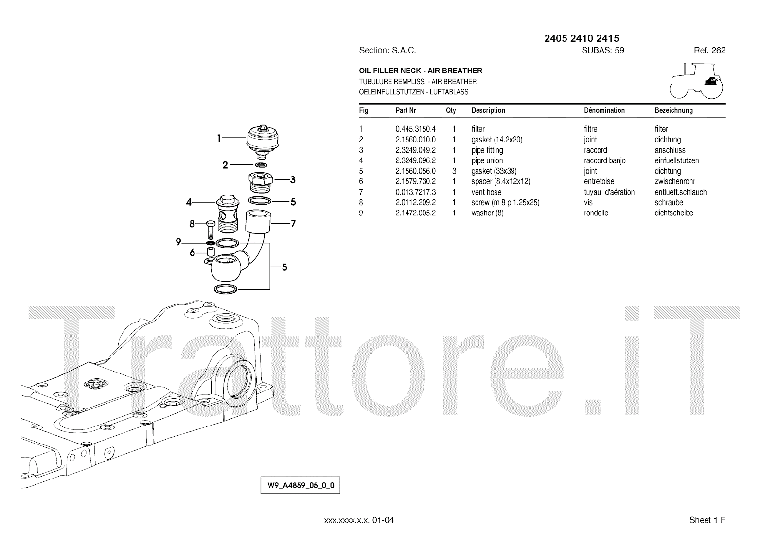 Manuale (esploso meccanico) per trattore / trattrice Massey Ferguson 2405