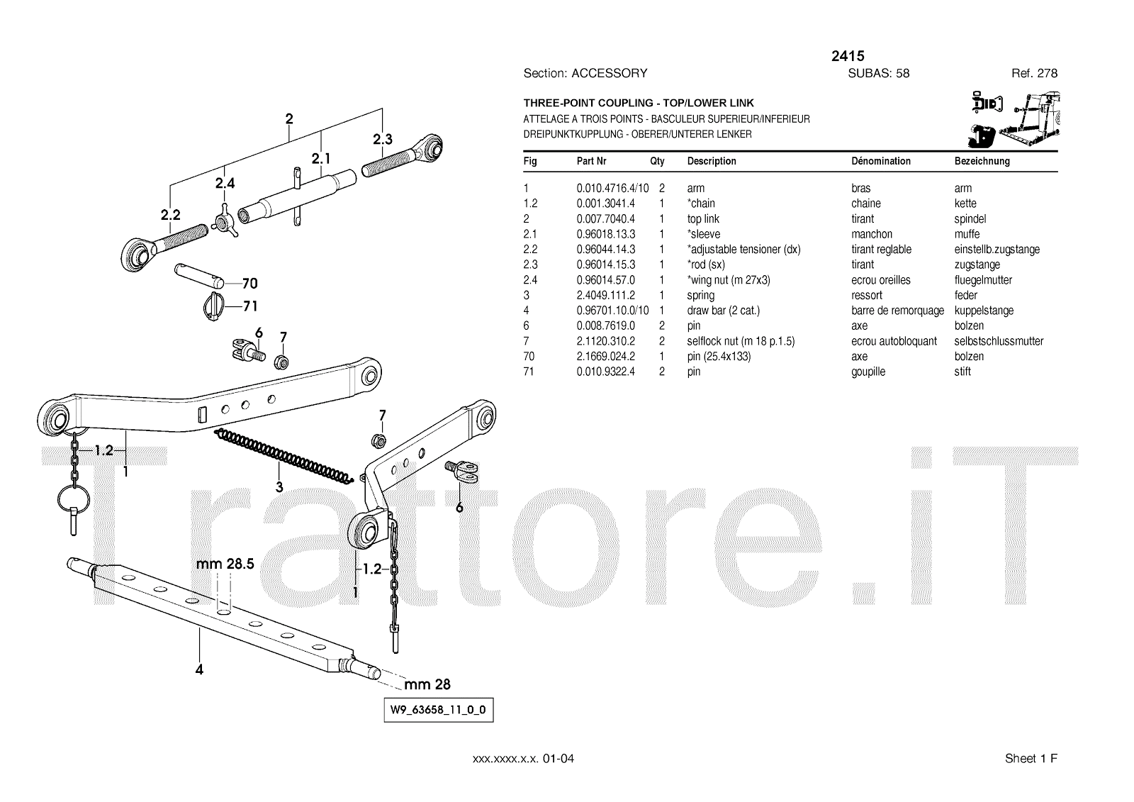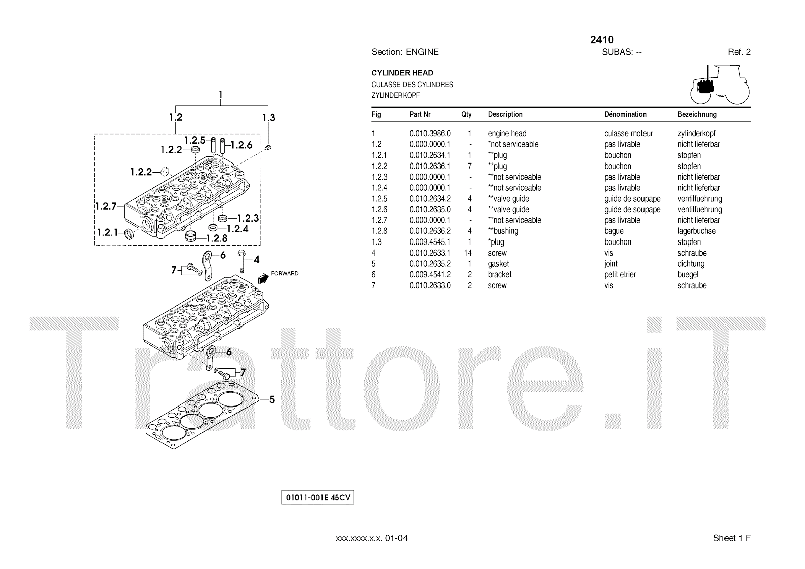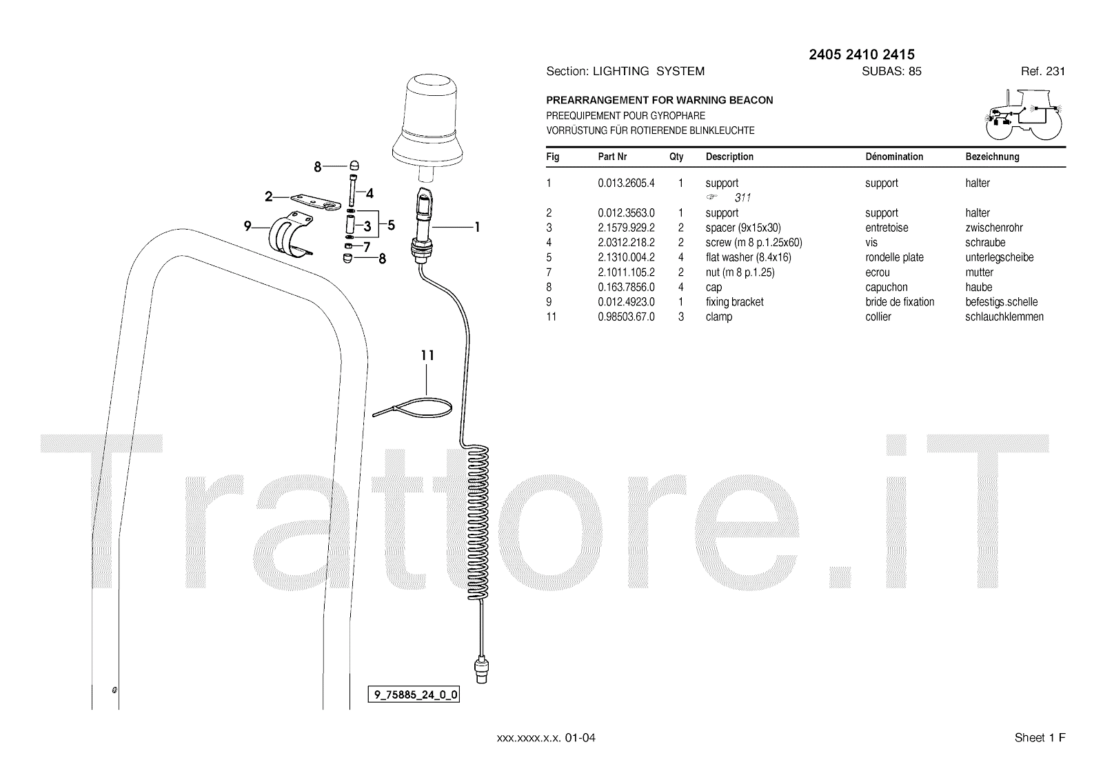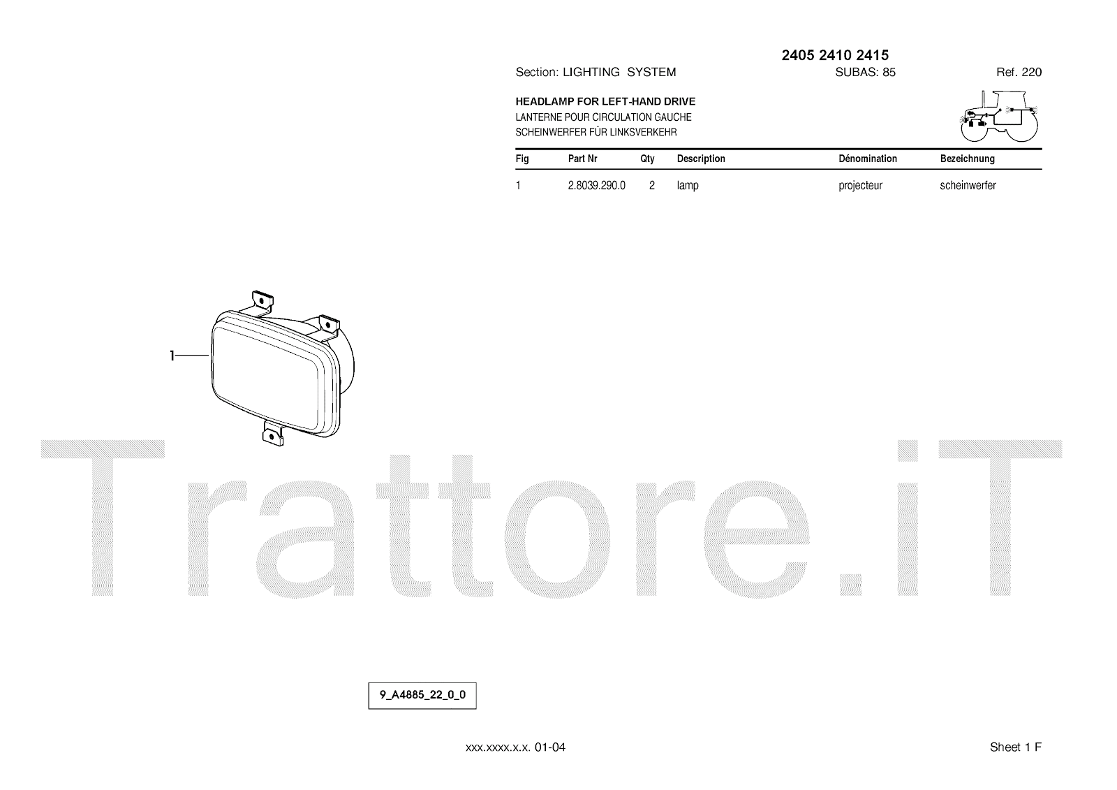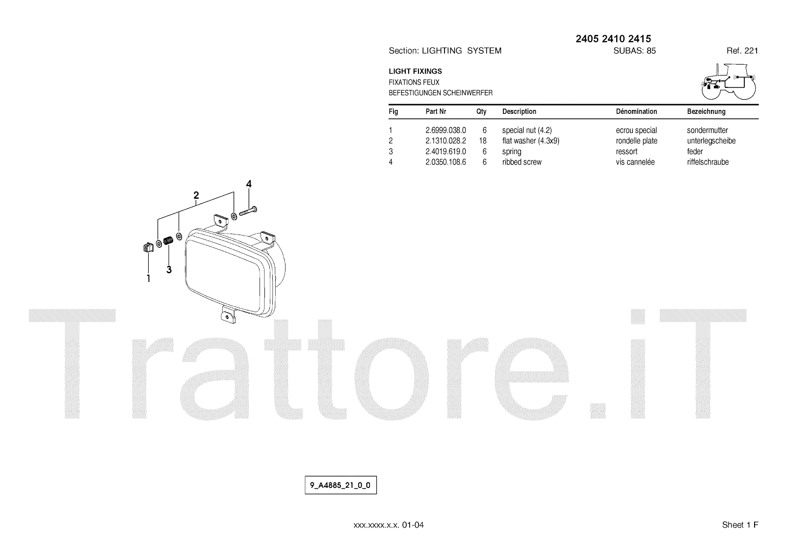 Manuale (esploso meccanico) per trattore / trattrice Massey Ferguson 2405